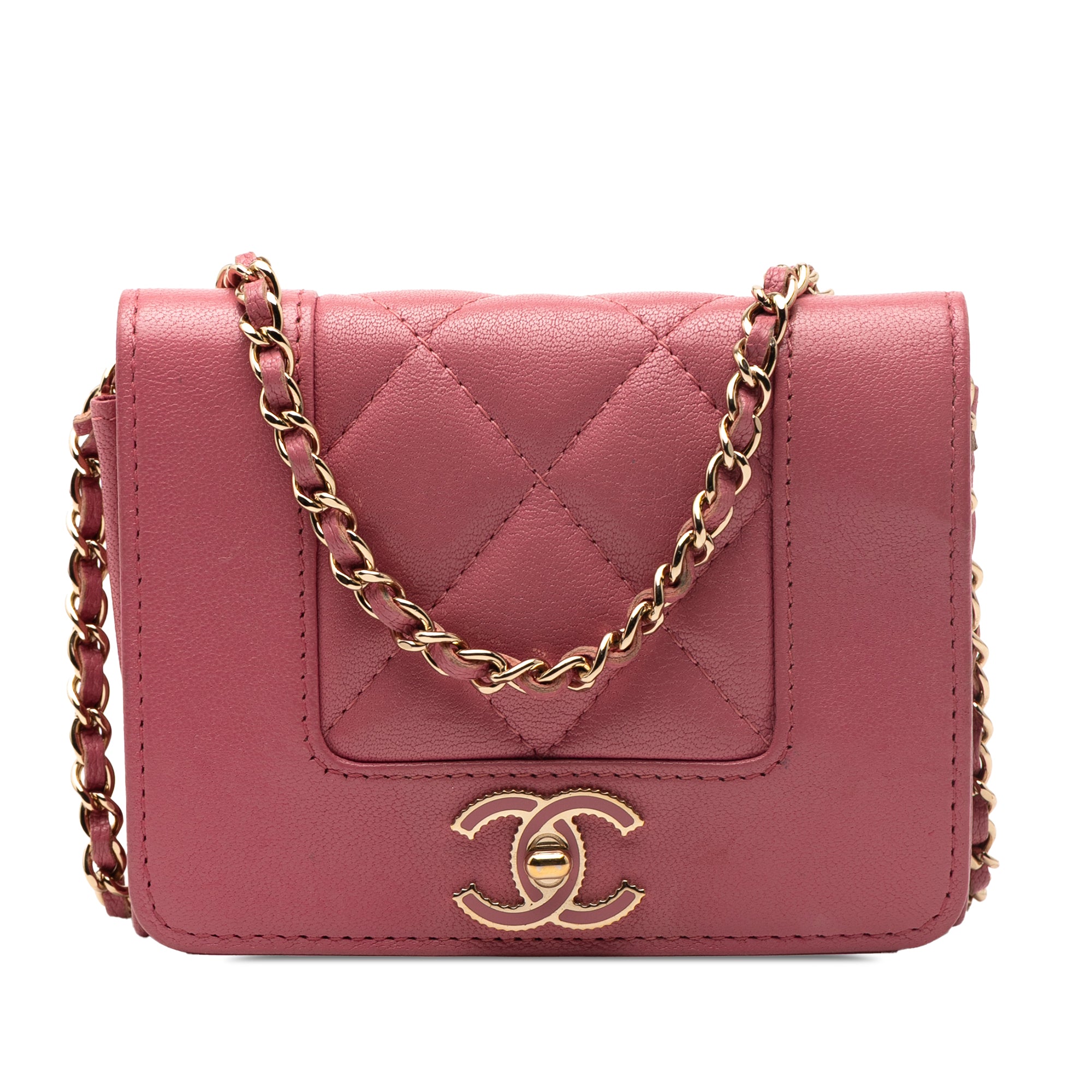 Chanel Quilted Sheepskin Mademoiselle Card Holder on Chain