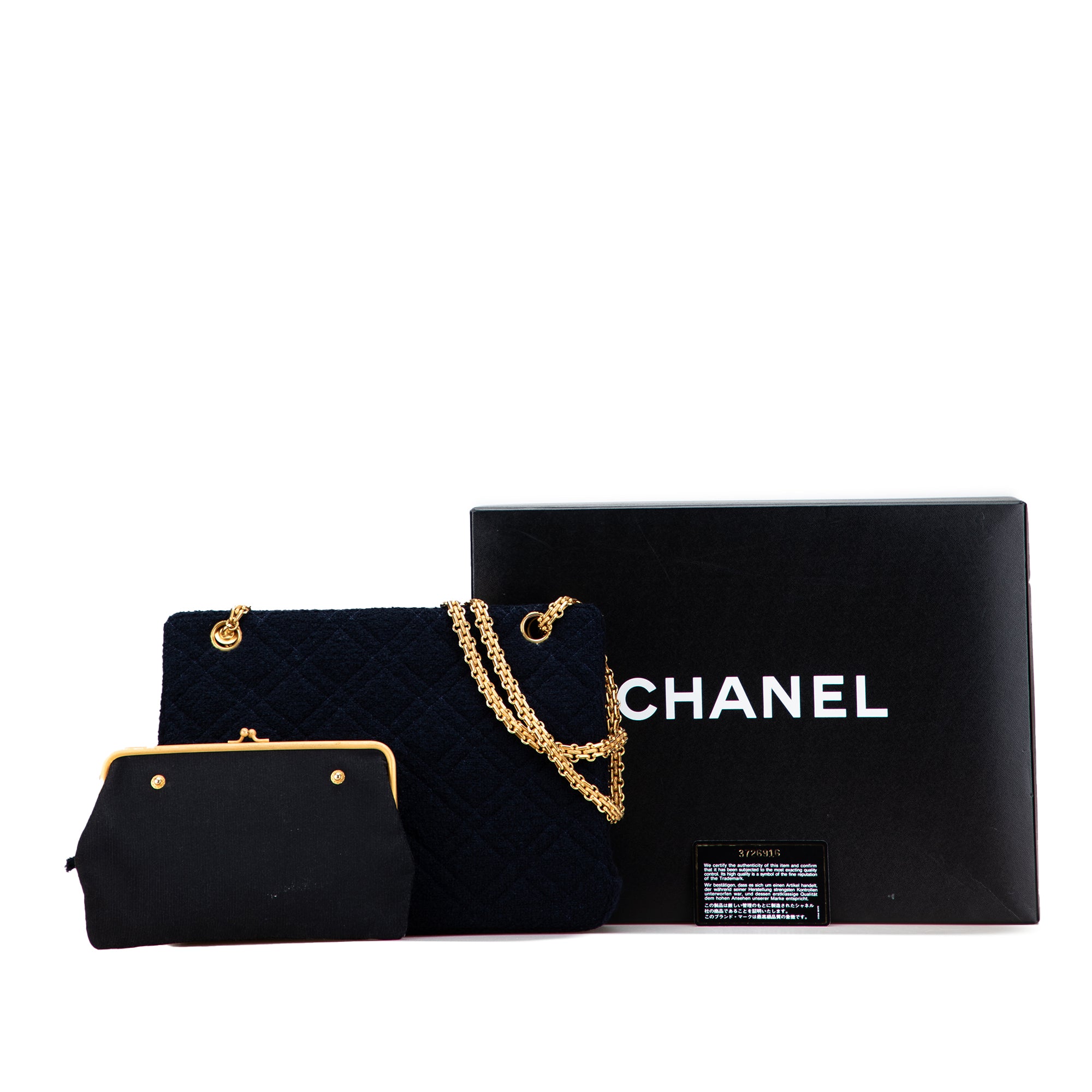The Jersey shoulder bag features a quilted cotton body, chain straps, a top zip closure, and interior slip pockets. Inclusion: box, authenticity card. Retail Price: 1500.00