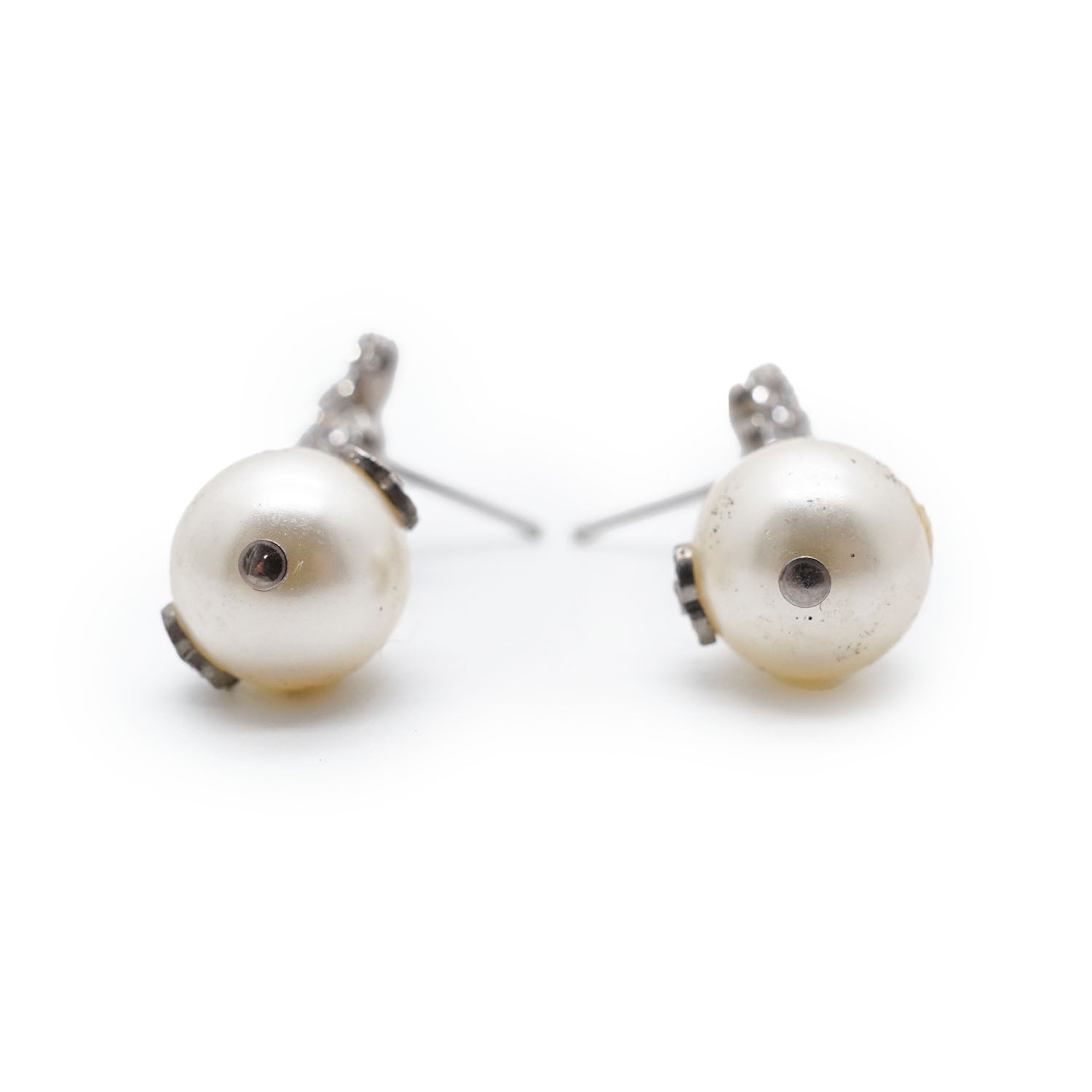 Chanel Rhinestone Four Leaf Clover Artificial Pearl Earrings
