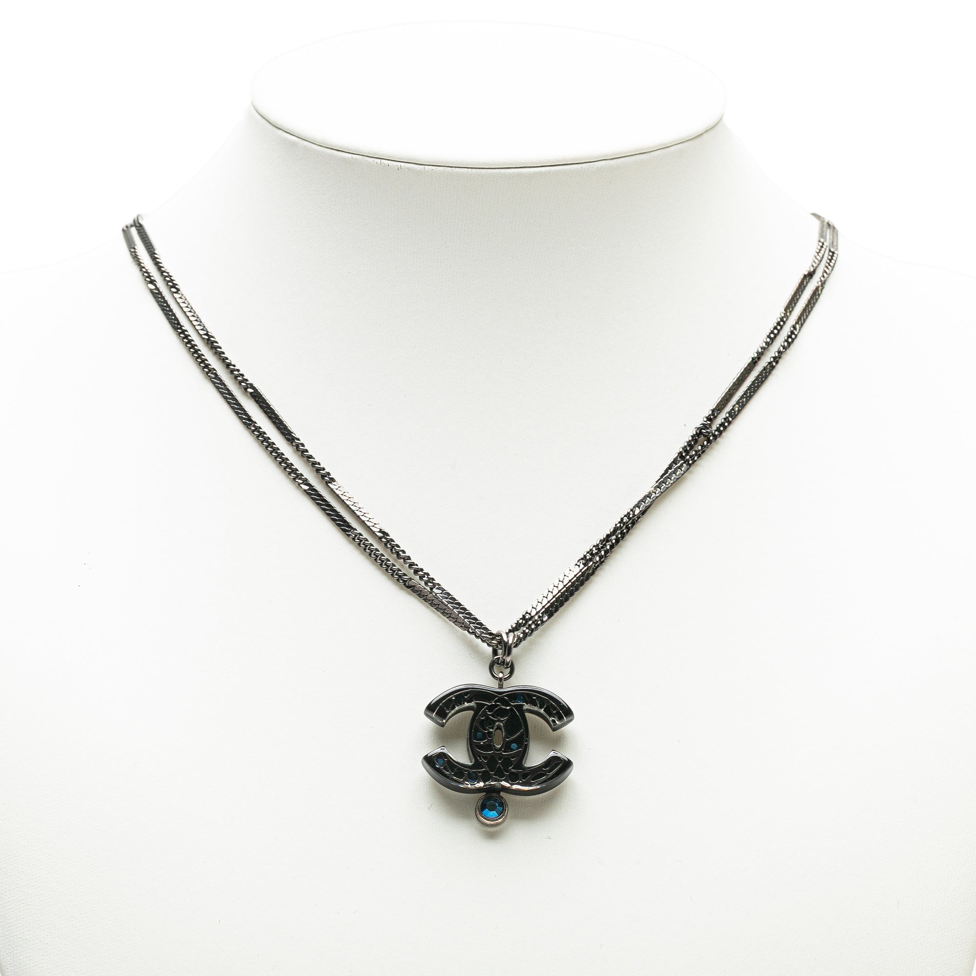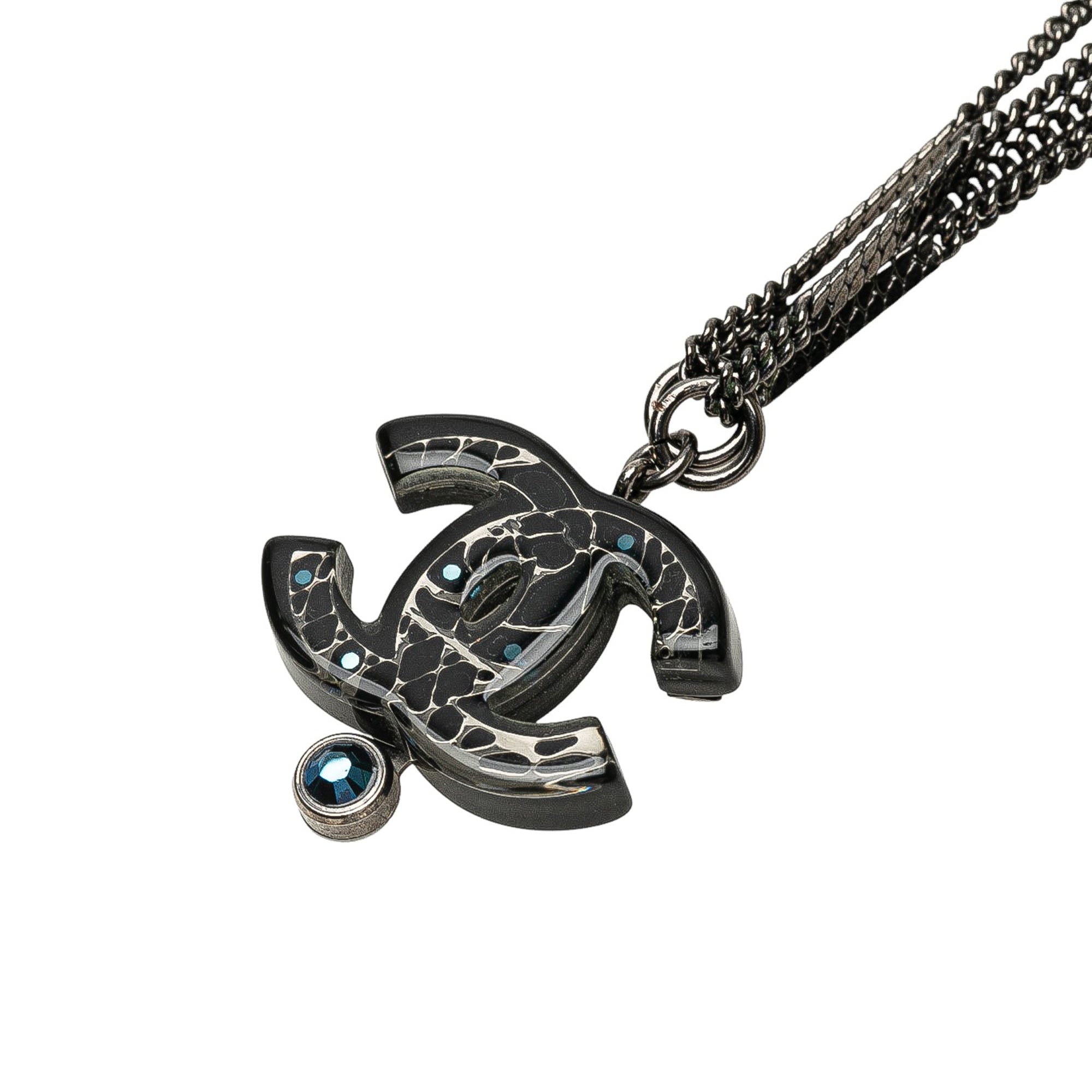 Chanel Ruthenium Resin Faux Pearl and Crystal Double Chain Necklace