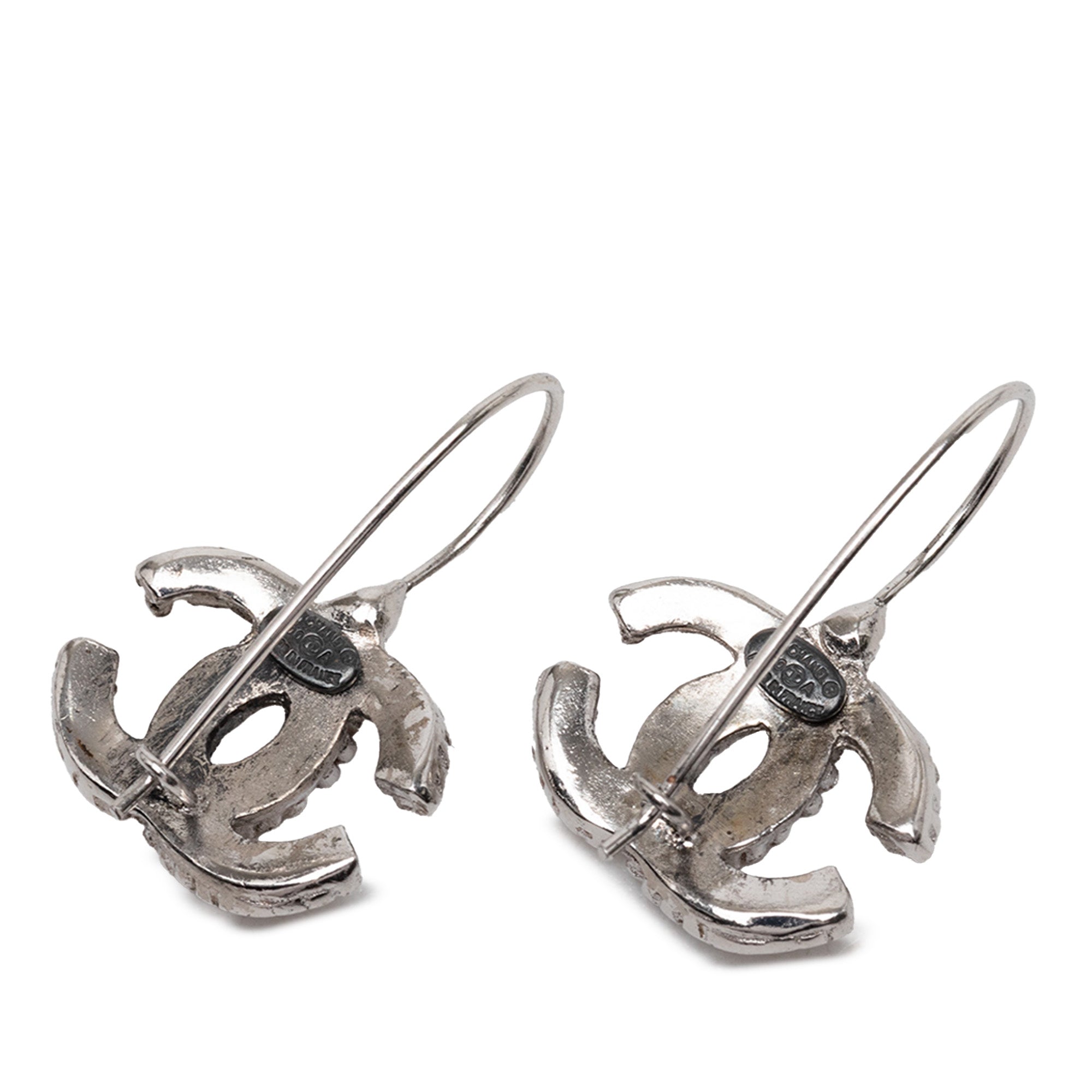Chanel Silver Plated CC Hook Earrings