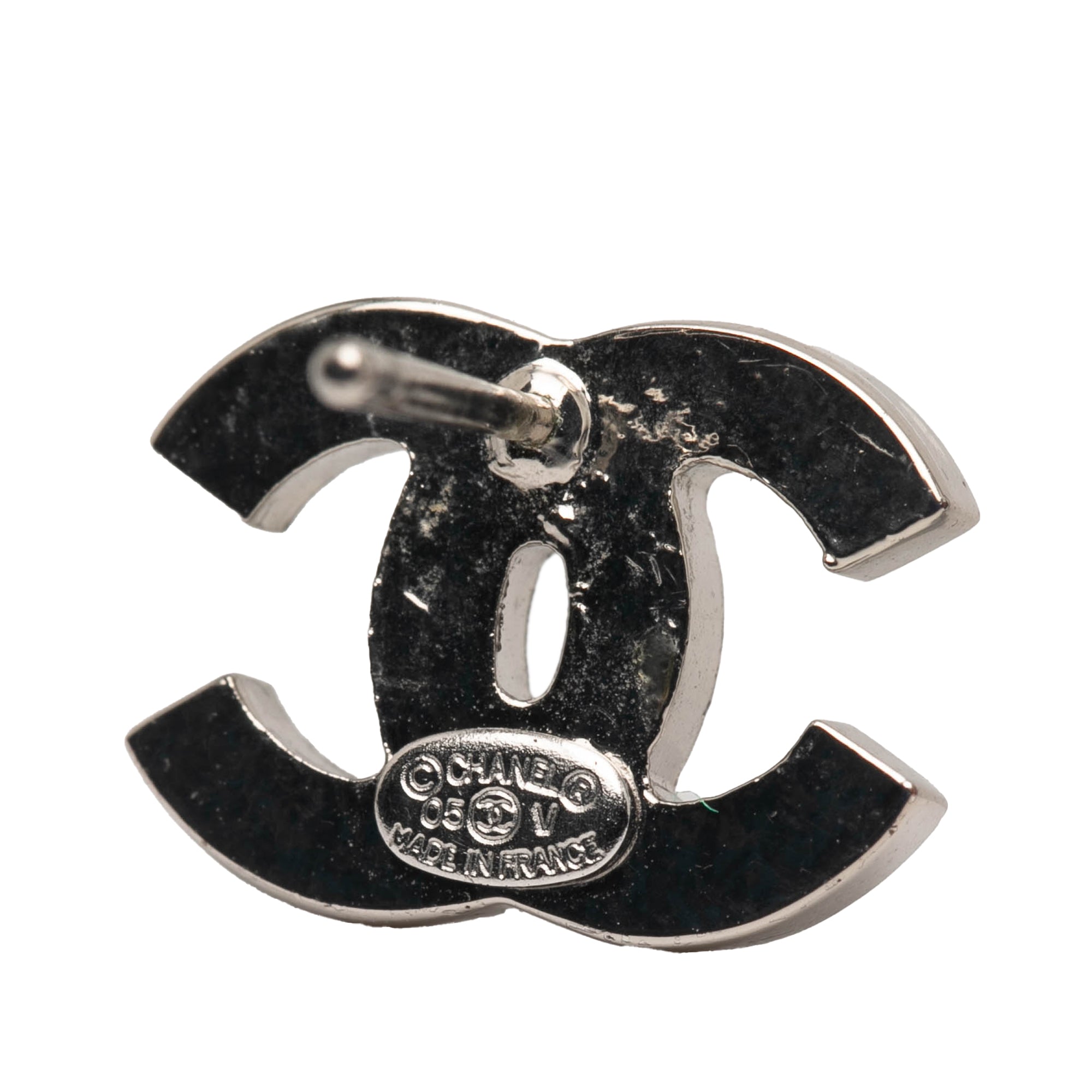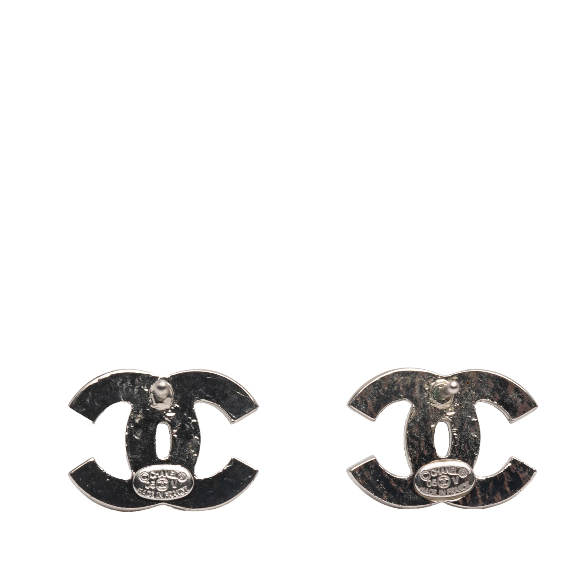 Chanel Silver Plated CC Rhinestone Push Back Earrings