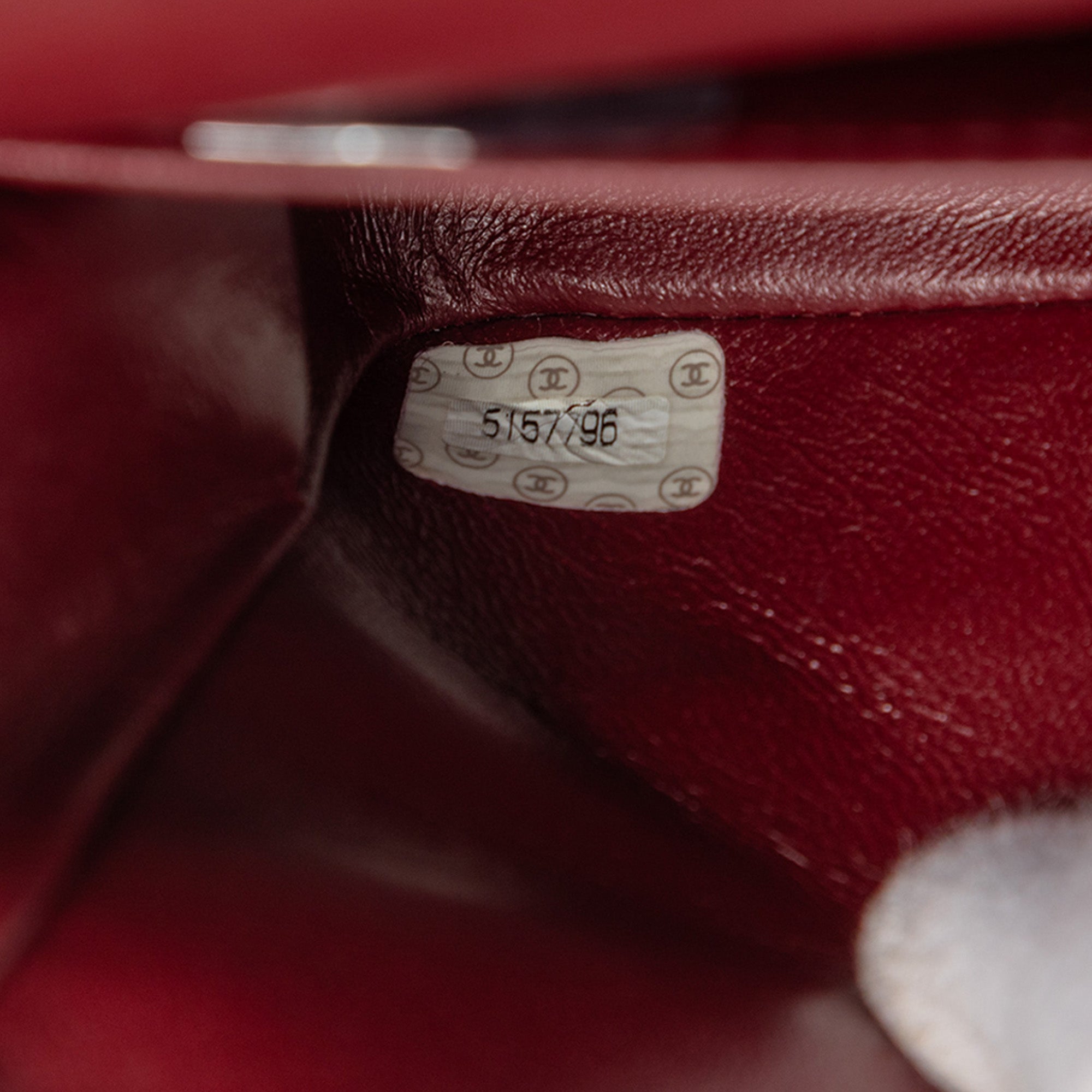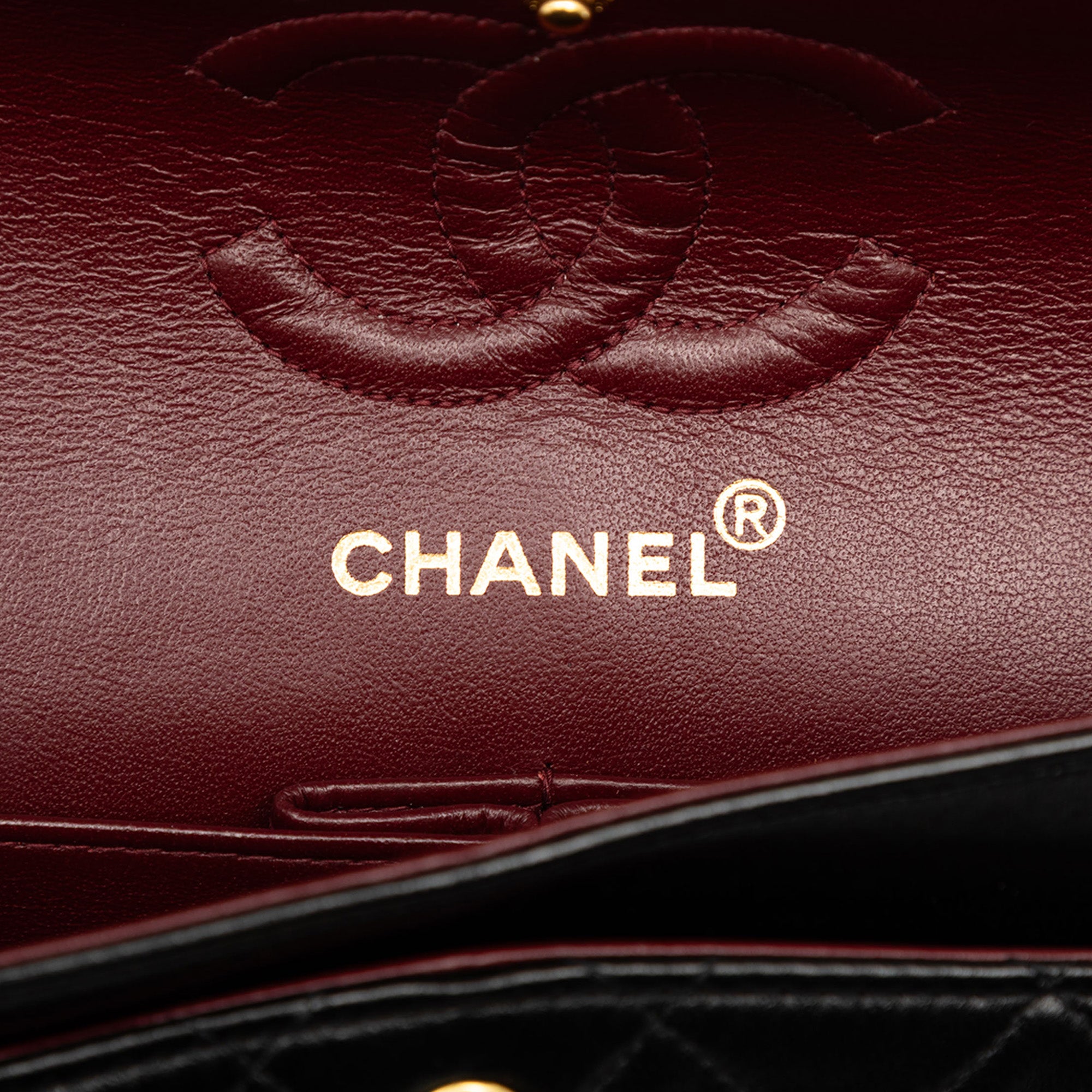 This shoulder bag features a quilted lambskin body, leather woven chain shoulder straps, double front flaps with interlocking Cs and a twist lock closure, an exterior back slip pocket, and interior zip and slip pockets. Inclusion: authenticity card. Retail Price: 10400.00