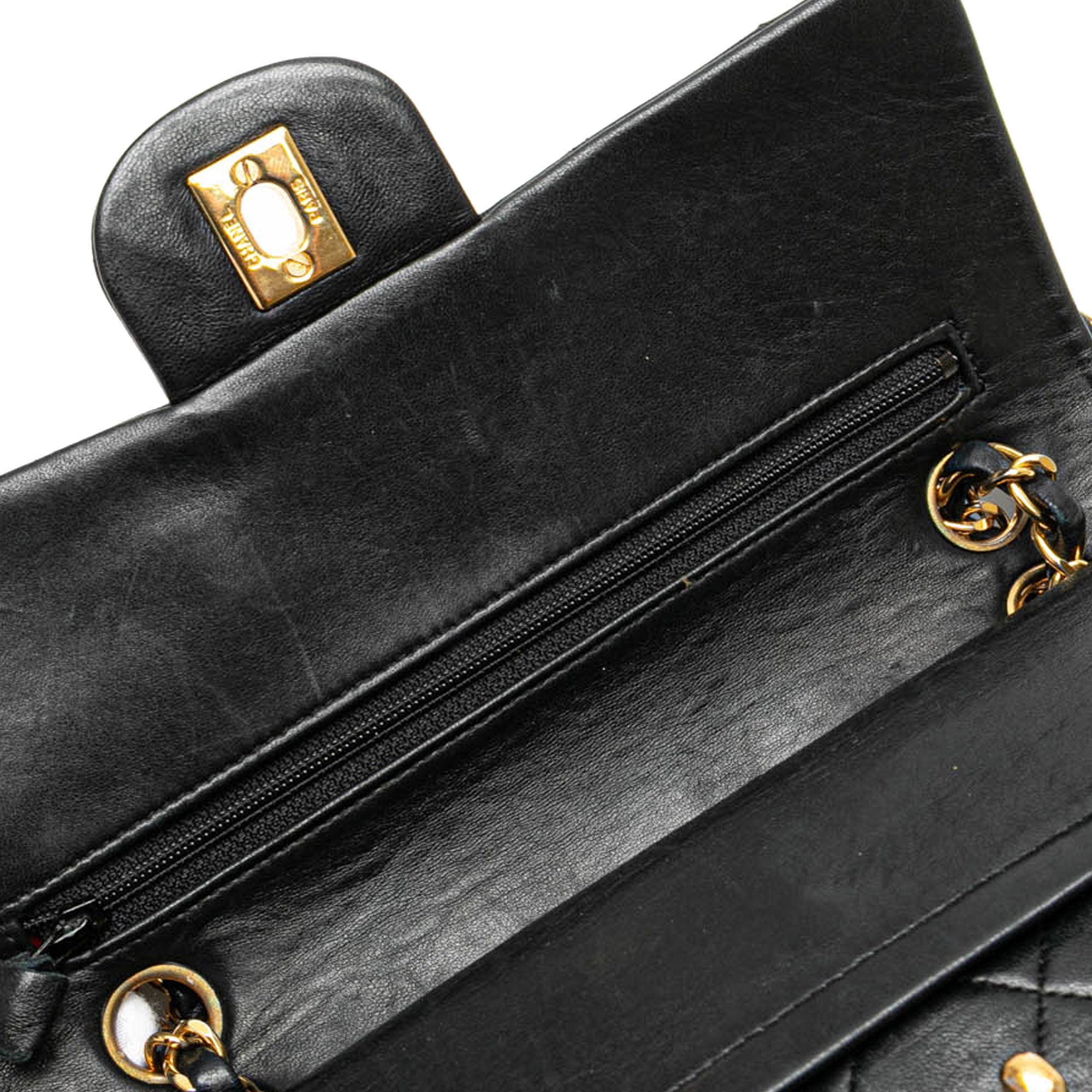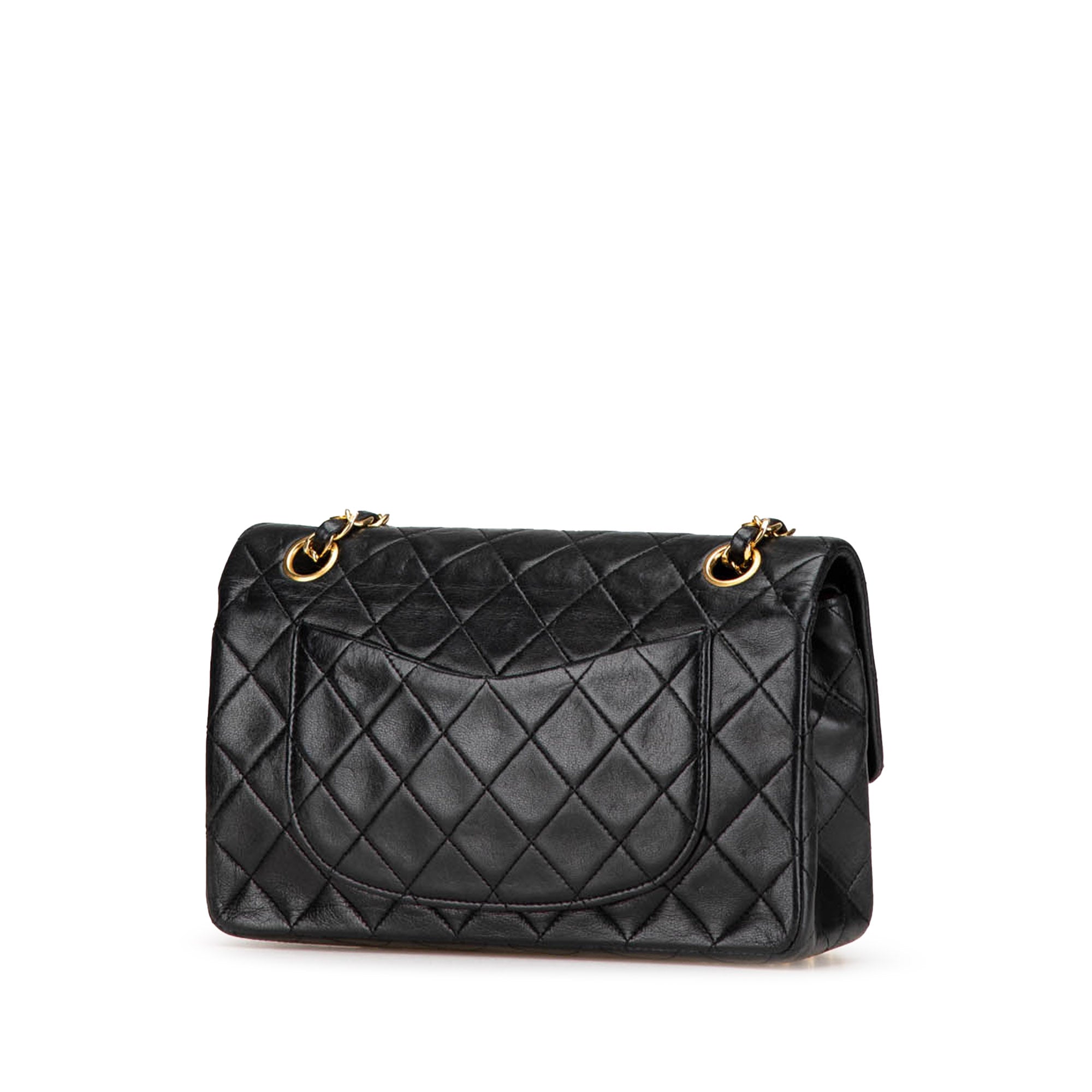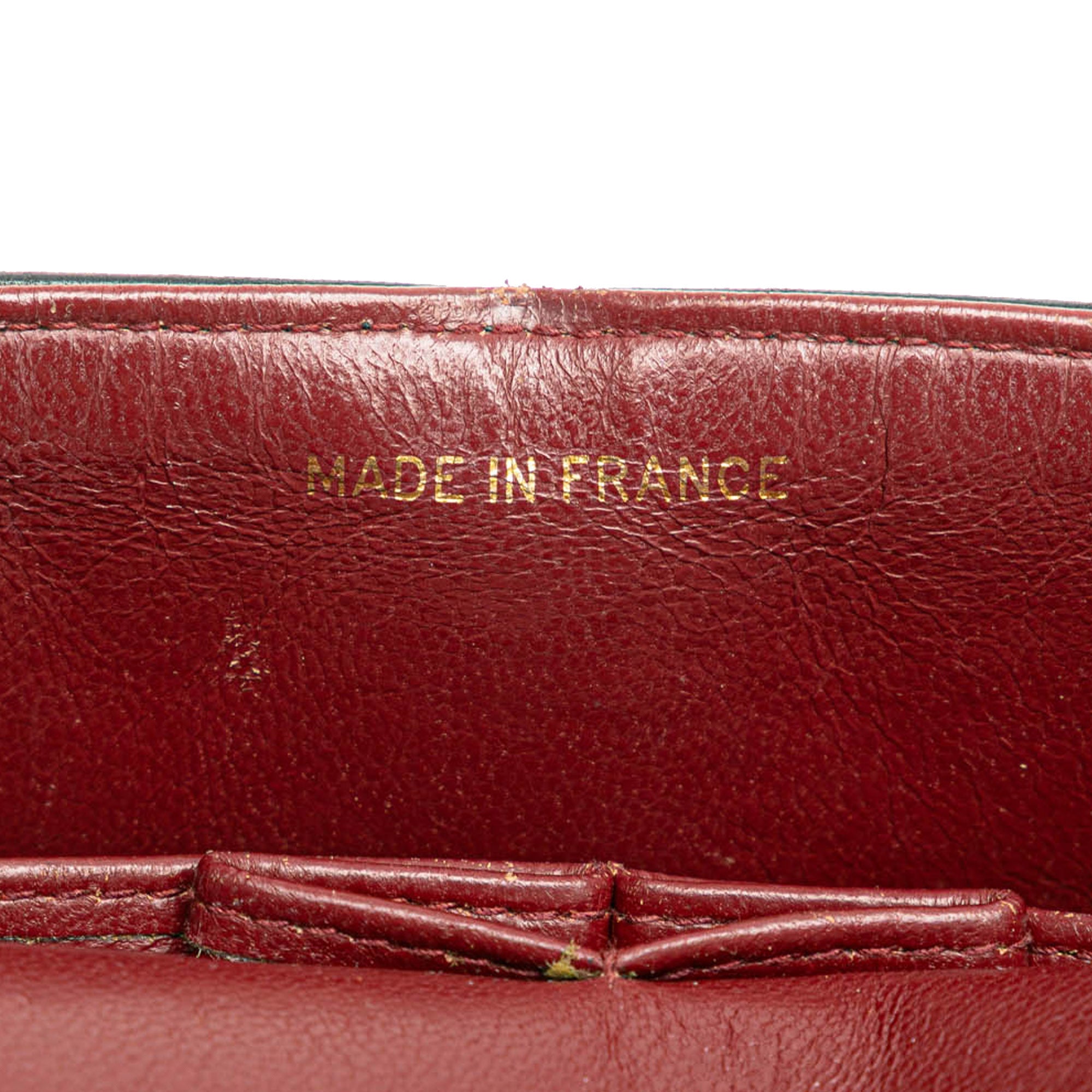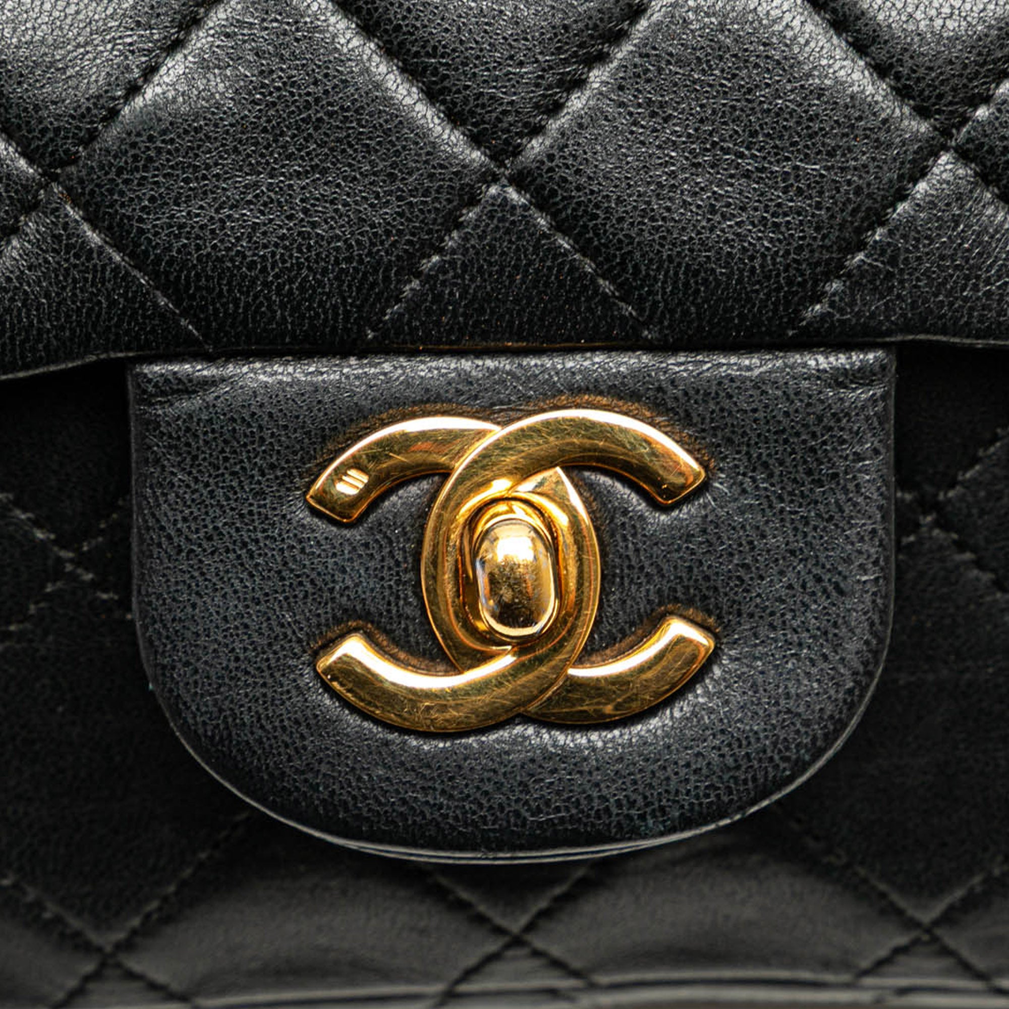 This shoulder bag features a quilted lambskin body, leather woven chain link shoulder straps, double front flaps with interlocking Cs and a twist lock closure, an exterior back slip pocket, and interior slip pockets. Retail Price: 10400.00