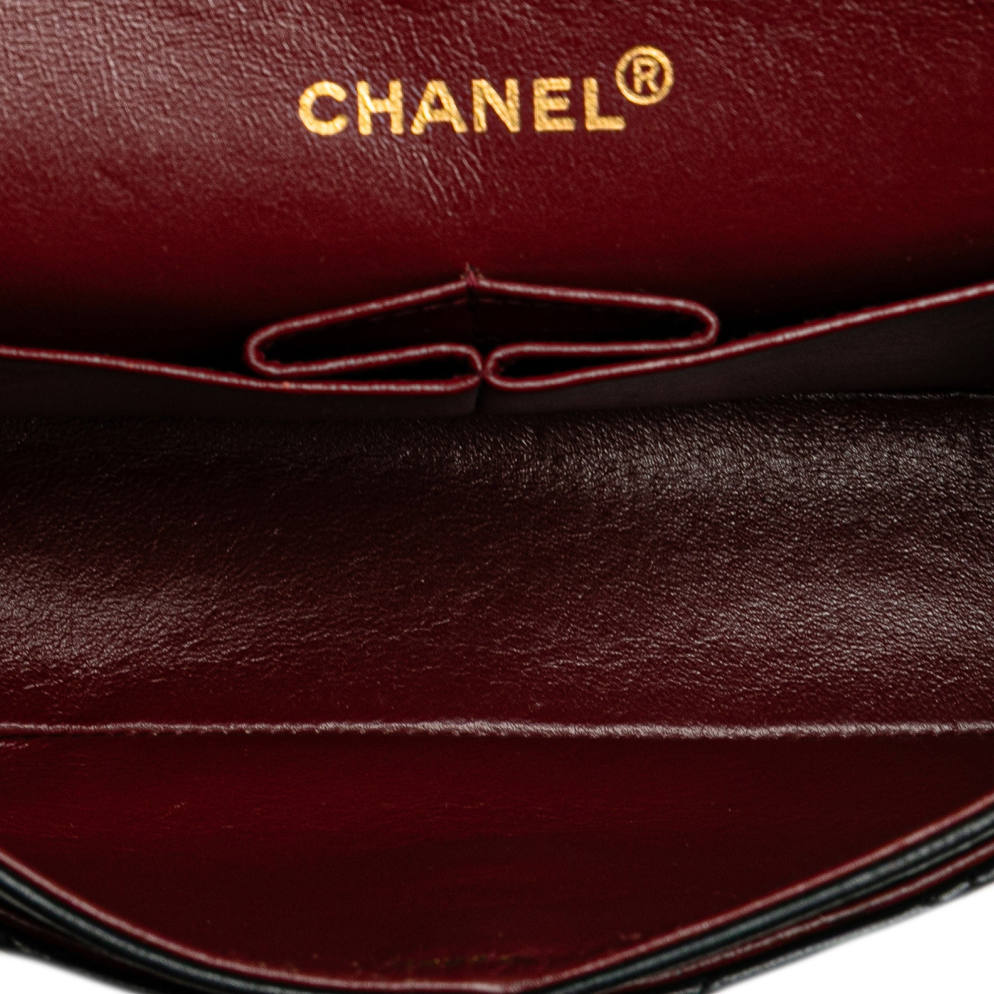 This shoulder bag features a quilted lambskin body, leather woven chain shoulder straps, double front flaps with interlocking Cs and a twist lock closure, an exterior back slip pocket, and interior zip and slip pockets. Inclusion: authenticity card. Retail Price: 10200.00
