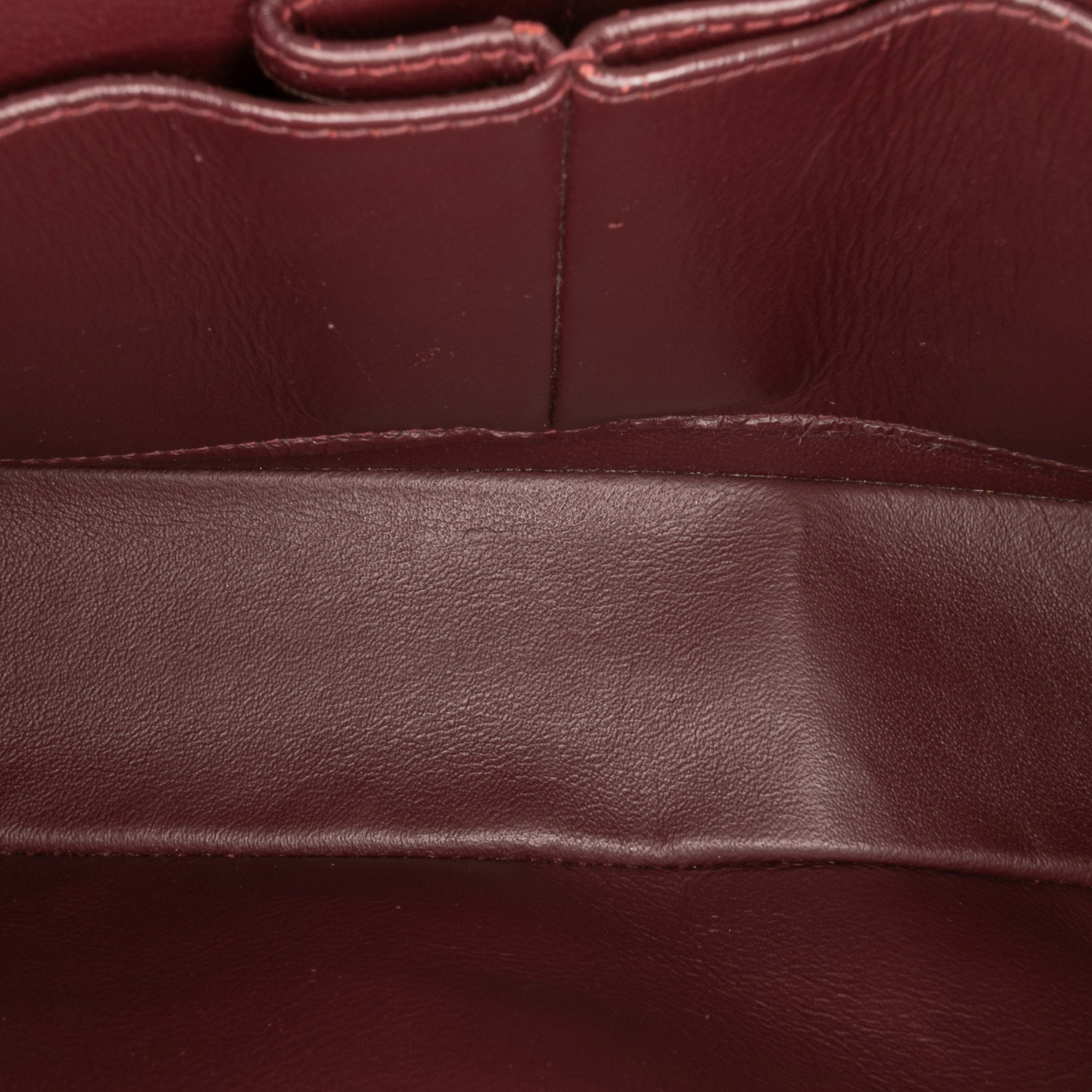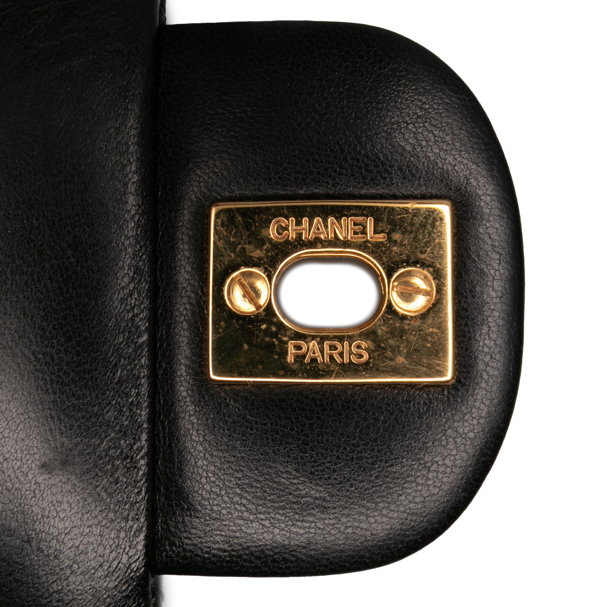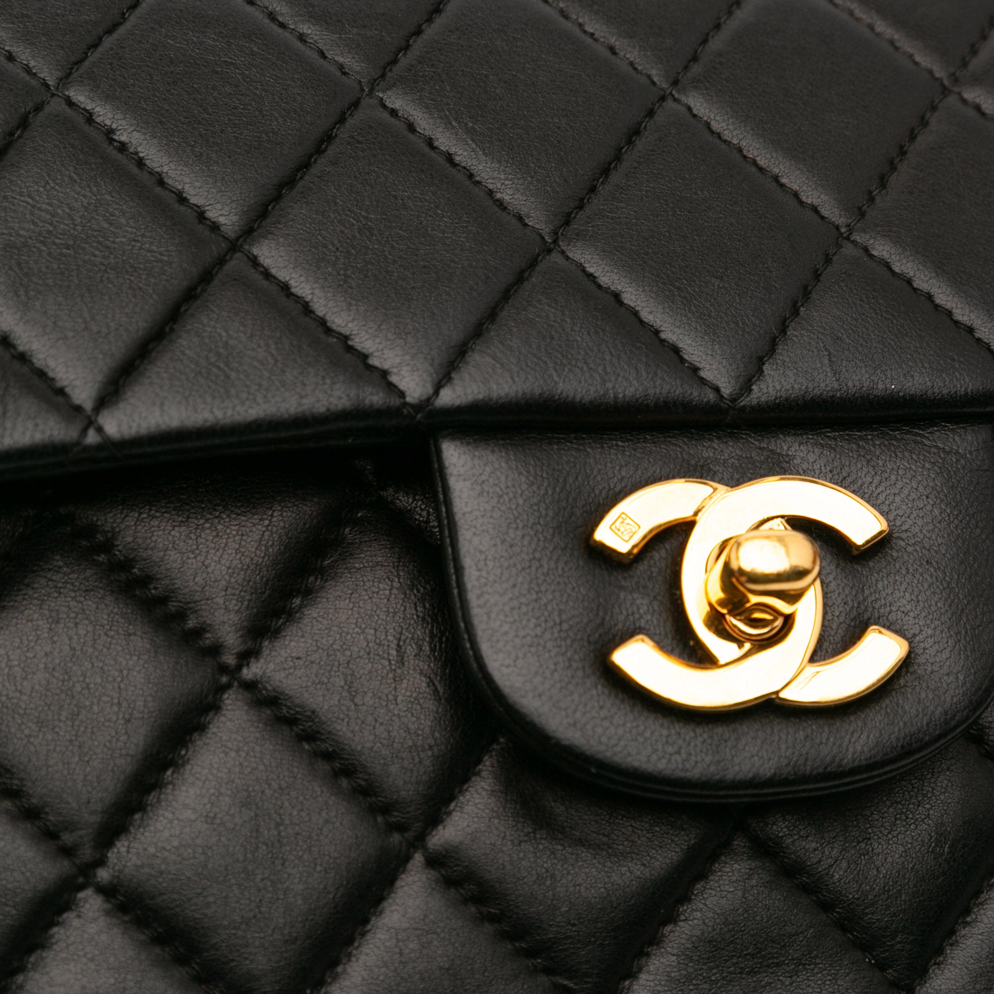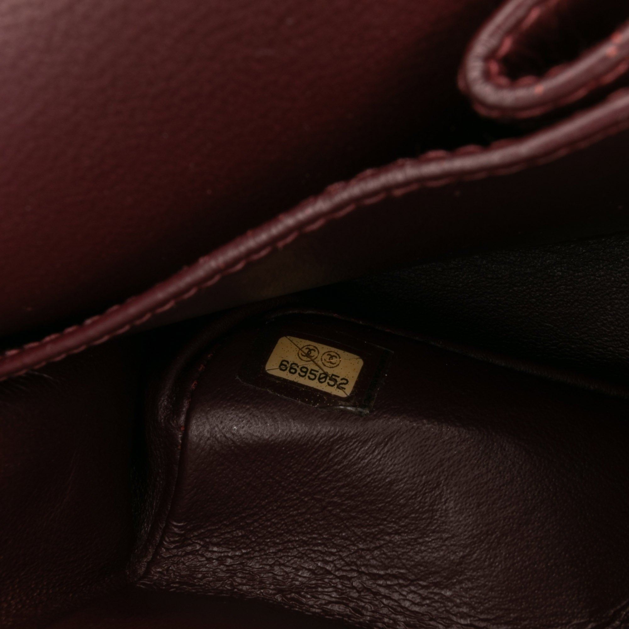 This shoulder bag features a quilted lambskin body, an exterior back slip pocket, leather woven chain straps, double front flaps with interlocking Cs and a twist lock closure, and interior zip and slip pockets. Inclusion: authenticity card. Retail Price: 10400.00