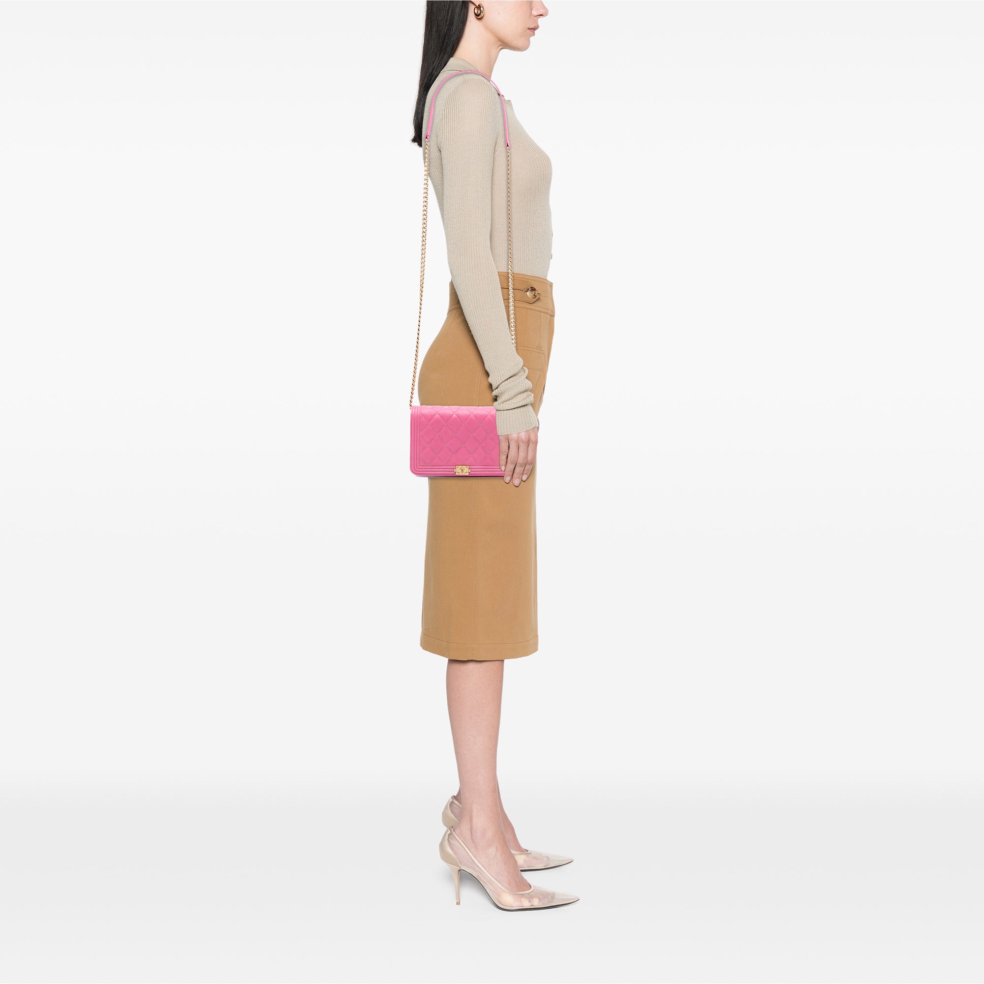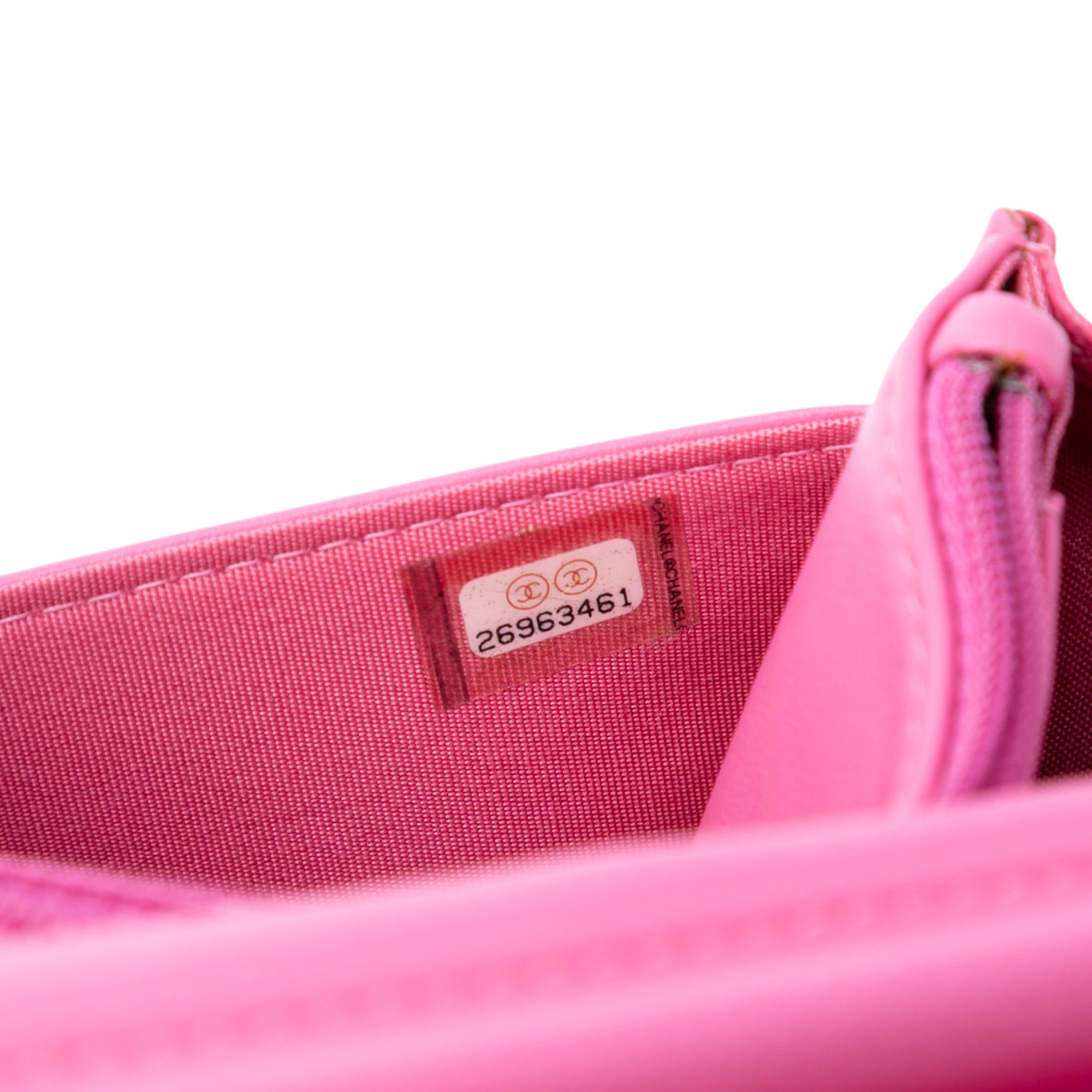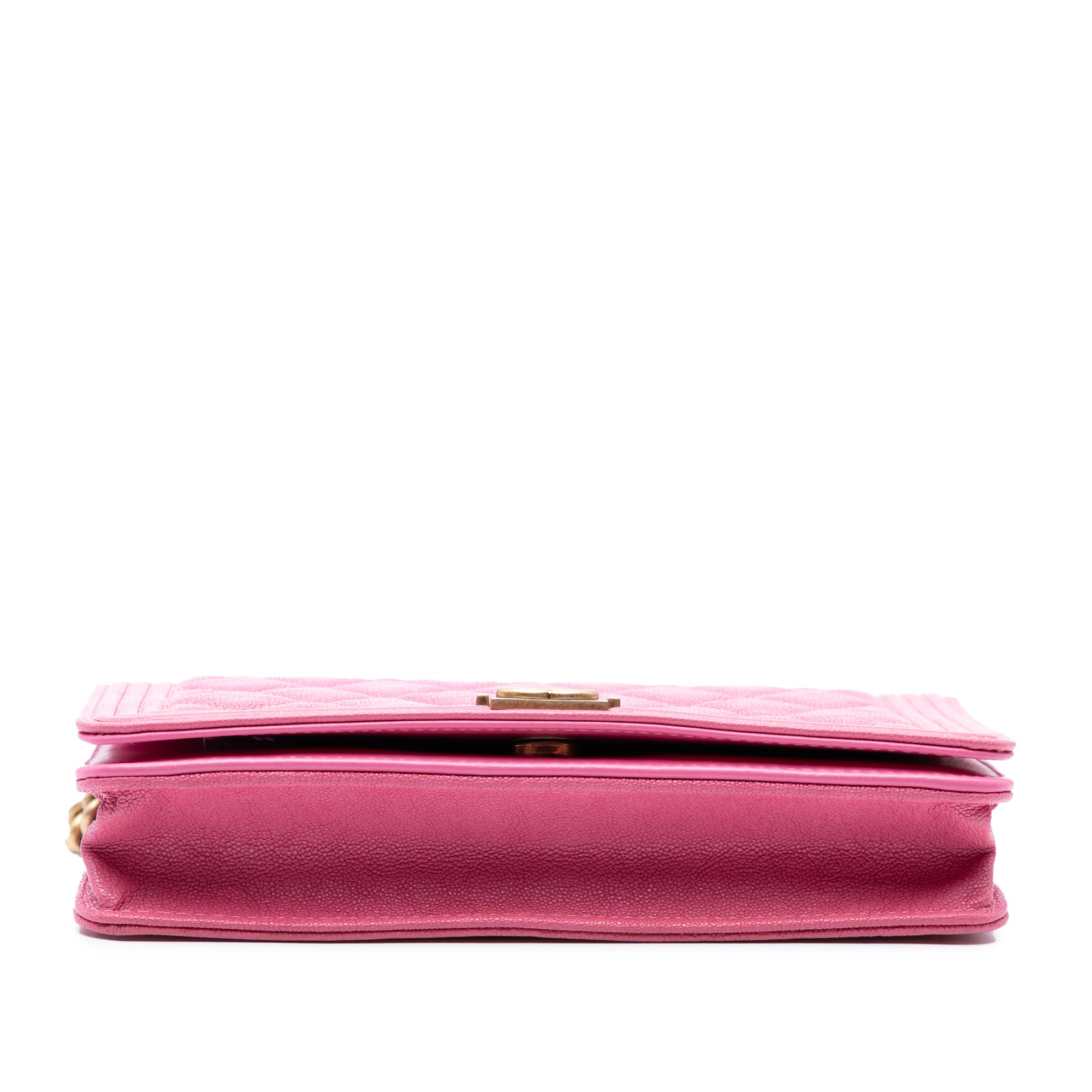 The Boy flap features a quilted caviar leather body, a curb chain strap with leather guard, a front flap with a push-lock closure, and an interior slip pocket. Inclusion: authenticity card. Retail Price: 6400.00
