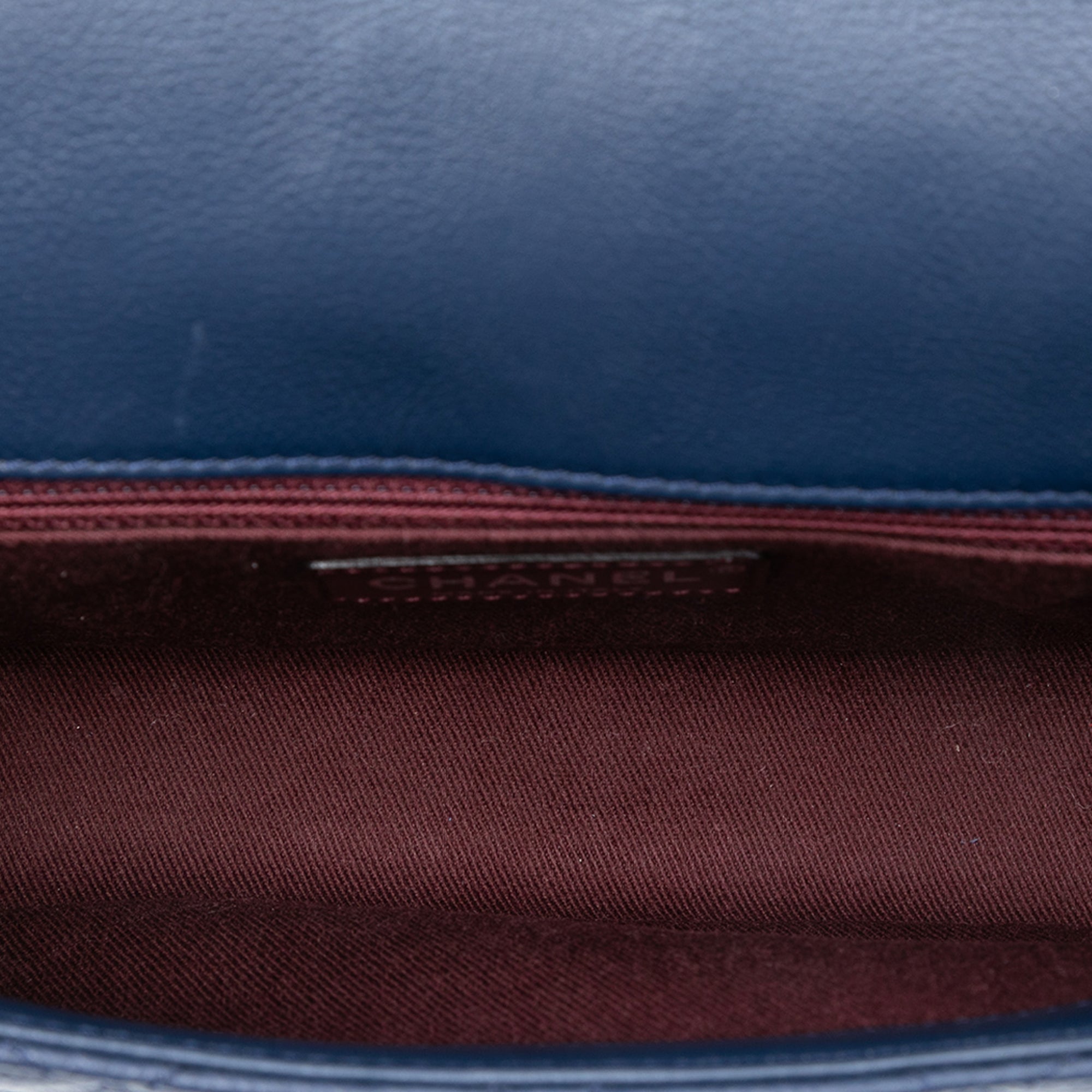 This satchel features a quilted calfskin and caviar leather body, a chain link handle, a detachable flat leather strap, a front flap with push lock closure, an exterior back slip pocket, and an interior zip pocket. Retail Price: 3300.00
