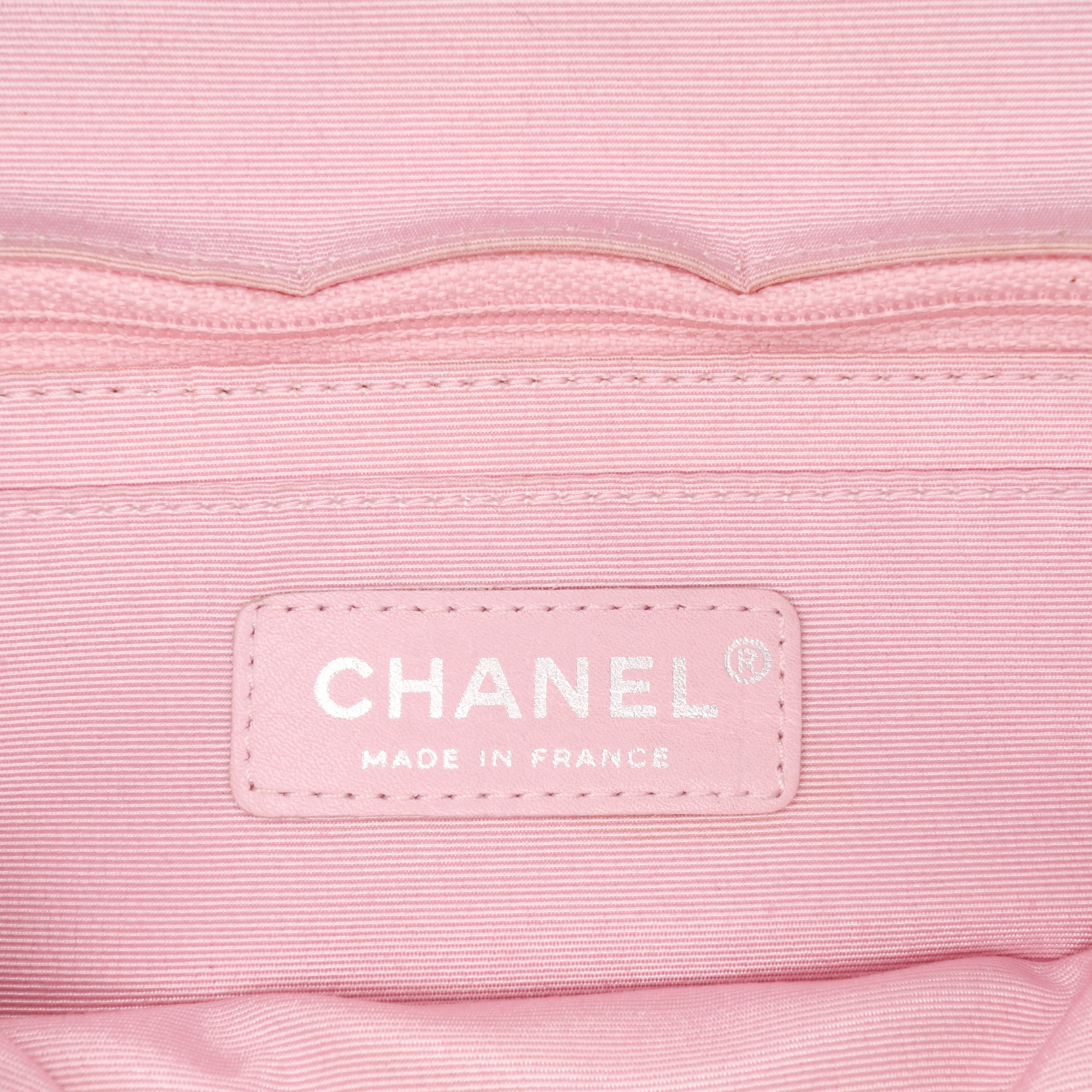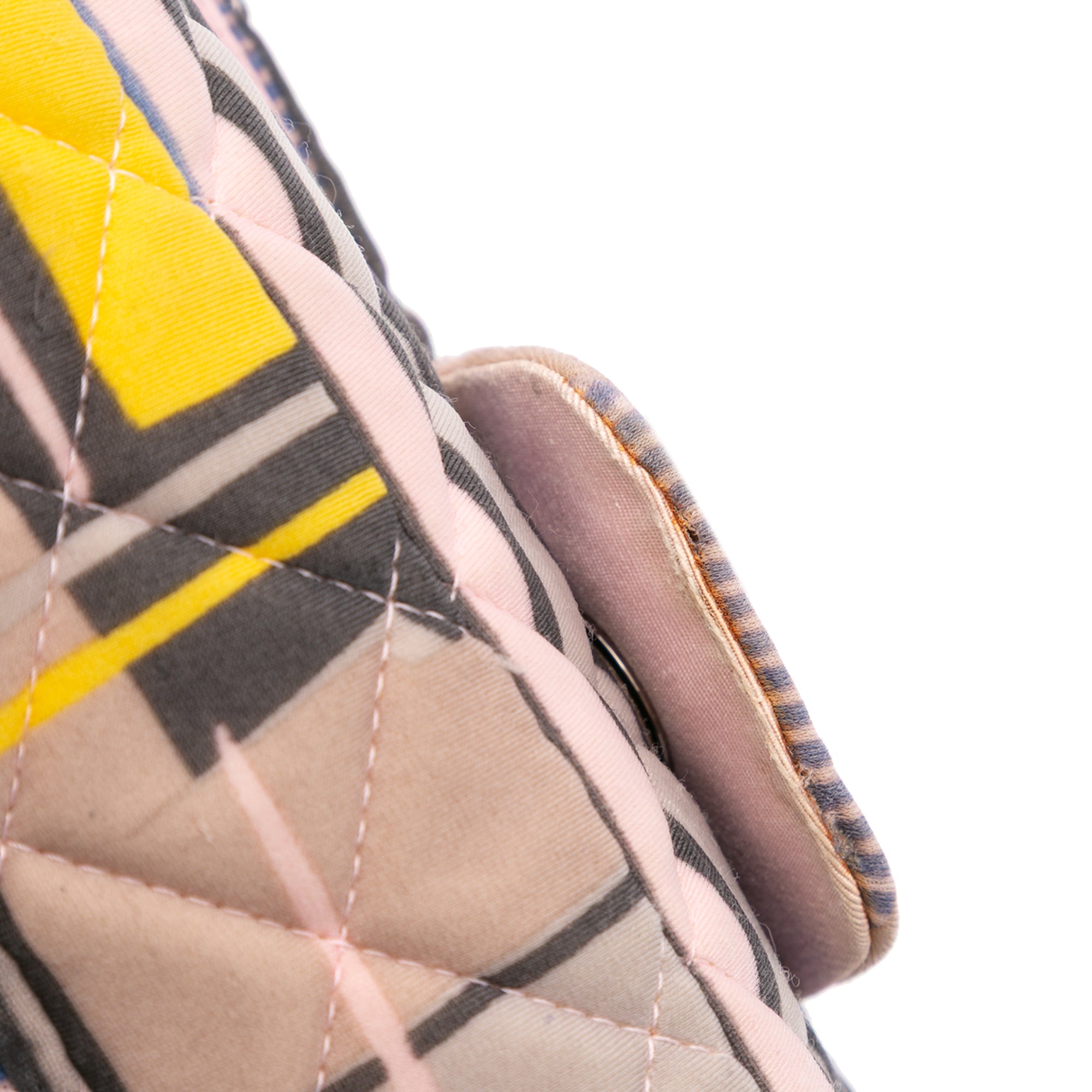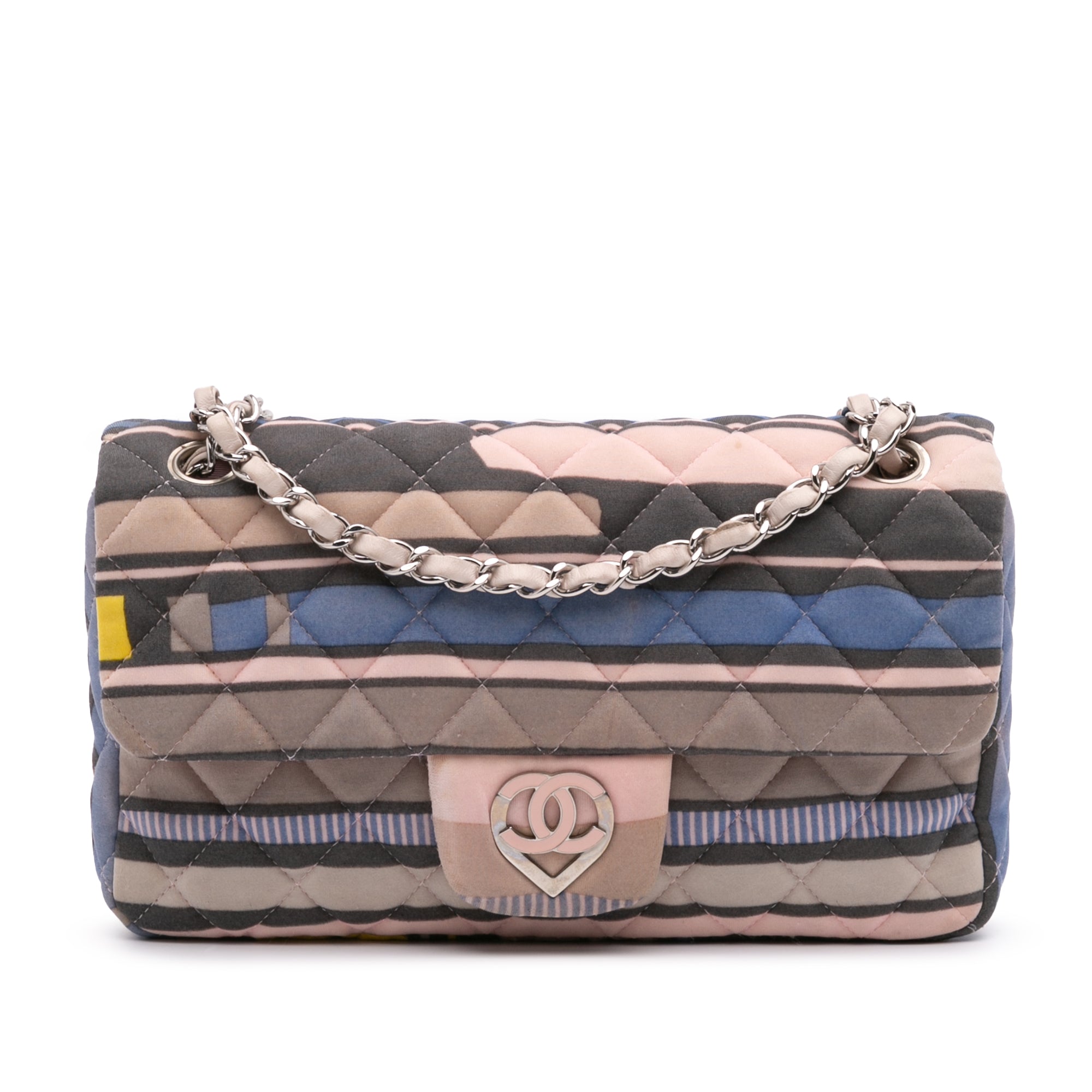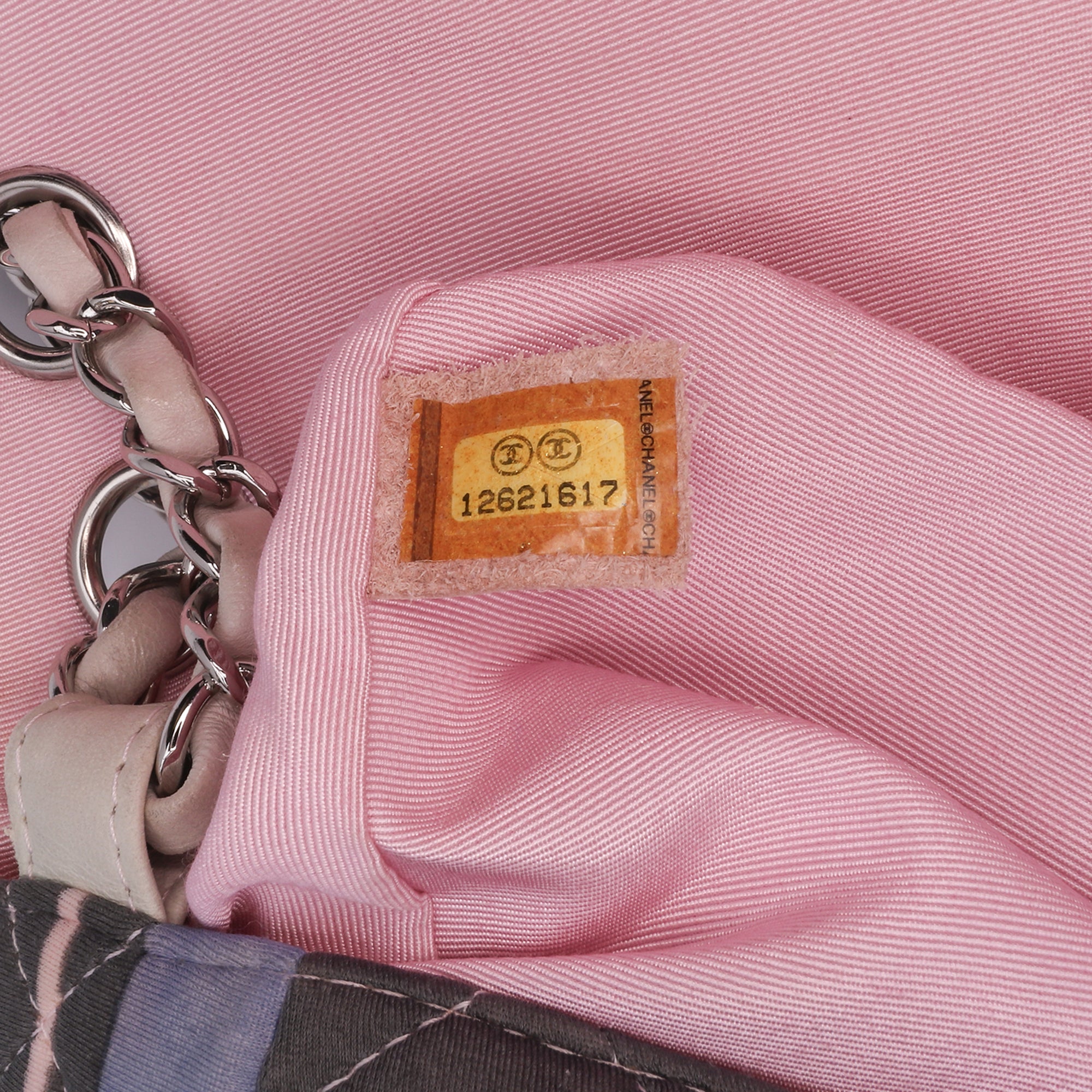 This shoulder bag features a quilted jersey body, cotton-woven chain shoulder straps, a front flap with CC turn-lock closure, an exterior back slip pocket, and interior zip and slip pockets. Inclusion: authenticity card. Retail Price: 2450.00