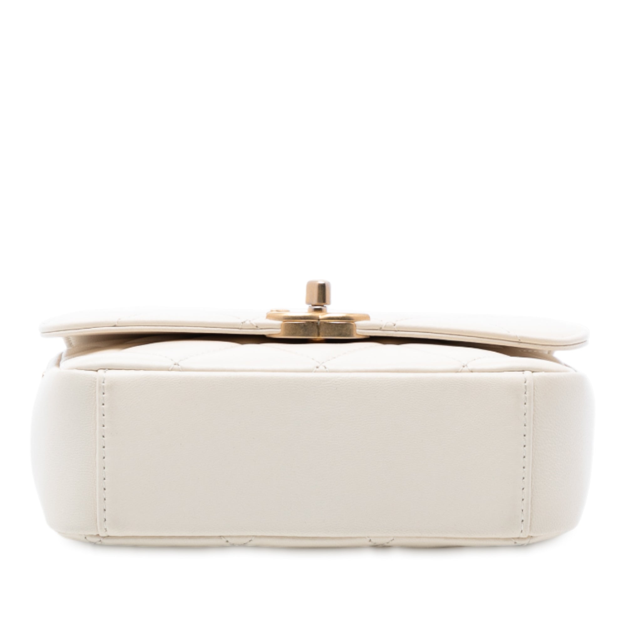 This crossbody features a quilted lambskin leather body, a gold-tone chain strap with CC coin detail, a flap with CC twist-lock closure, and an interior zip pocket. Inclusion: authenticity card. Retail Price: 5000.00