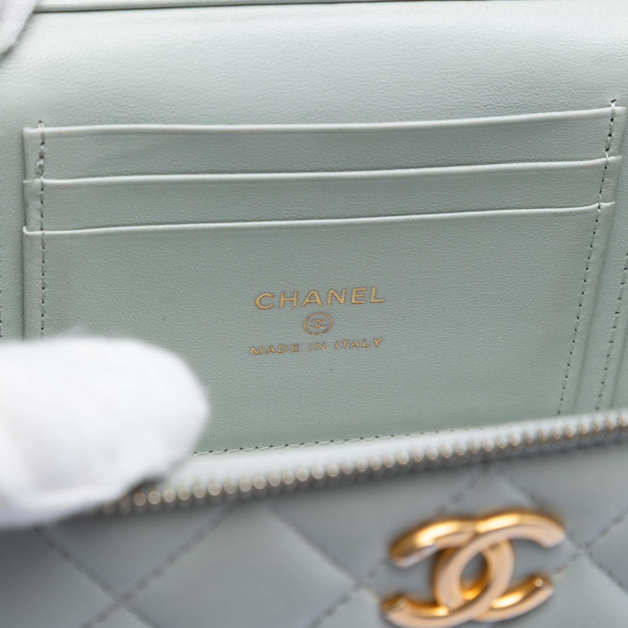 Chanel Small Quilted Lambskin Sweet Camellia Vanity Case with Chain