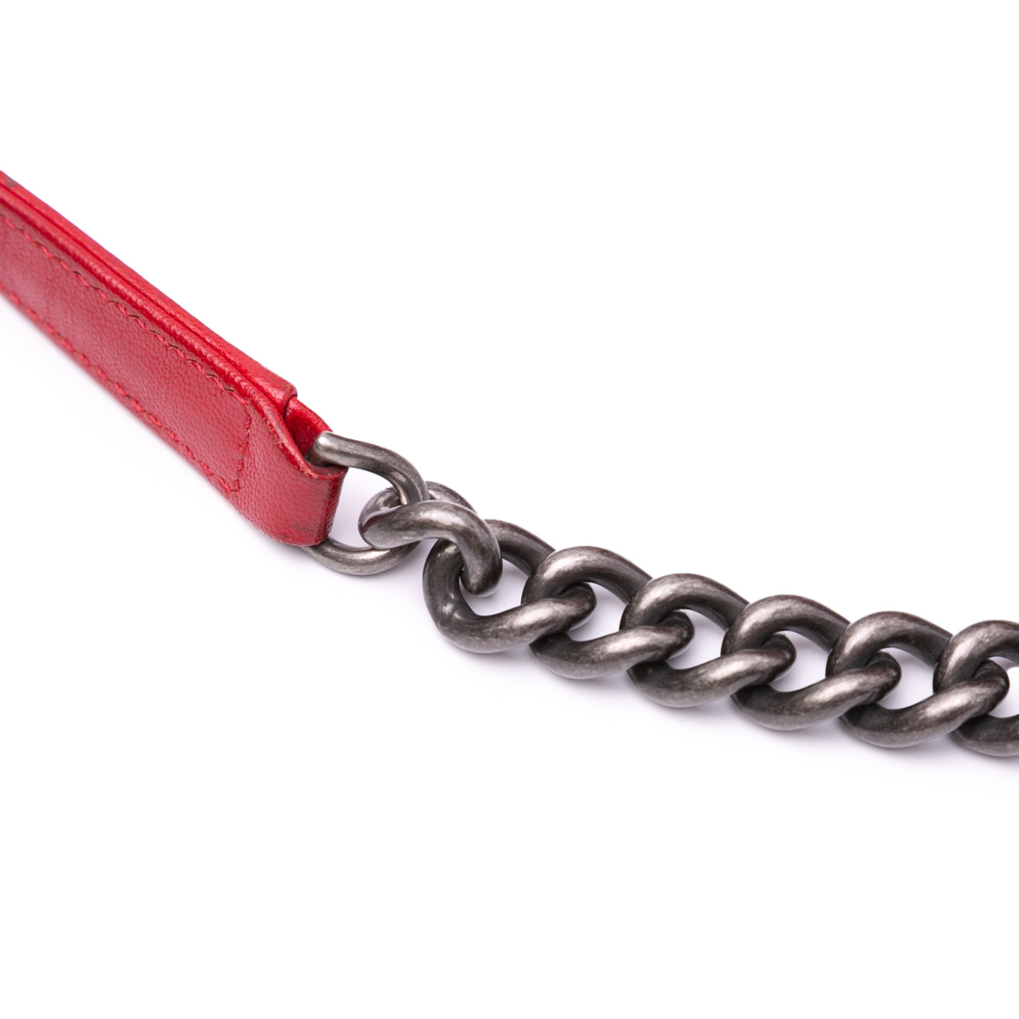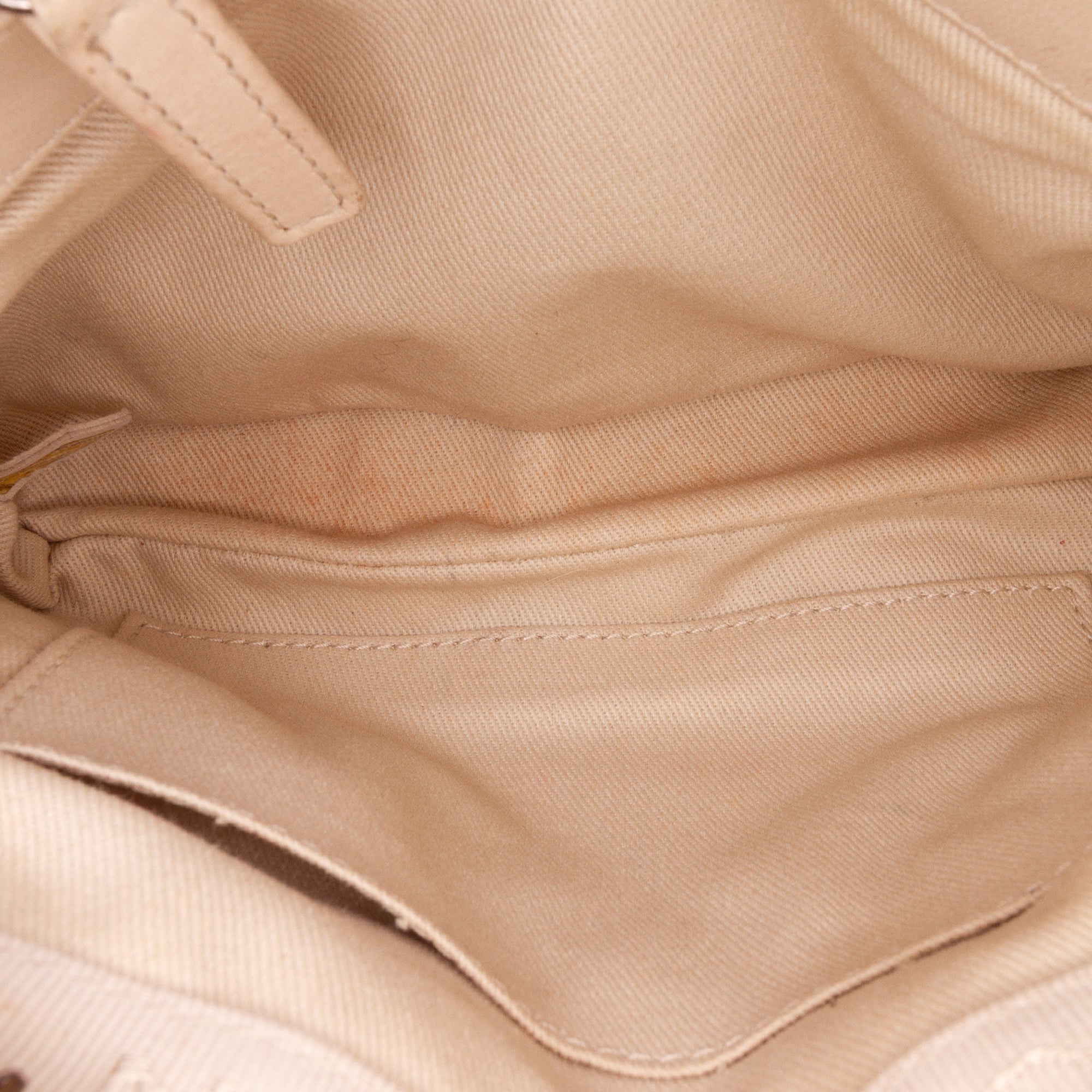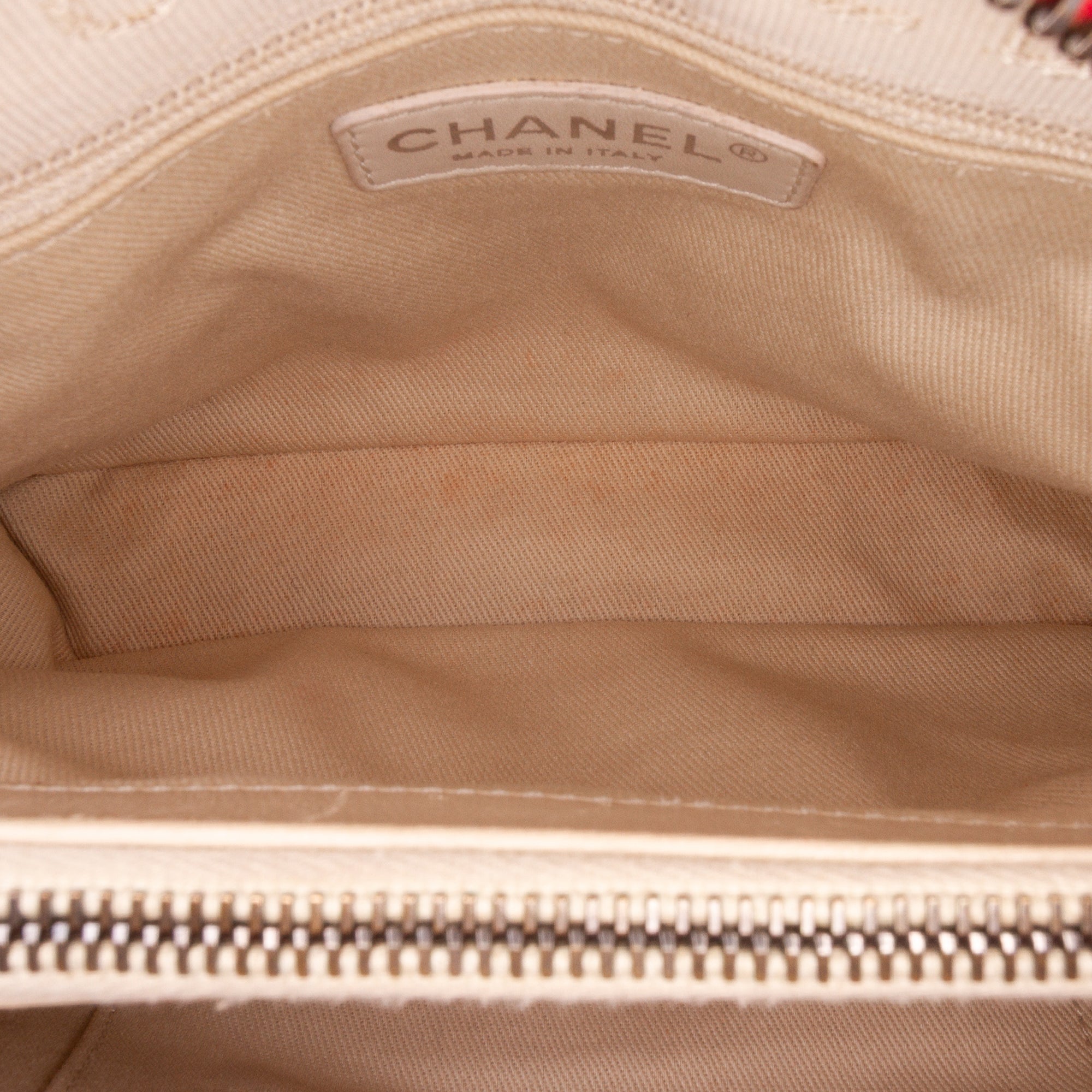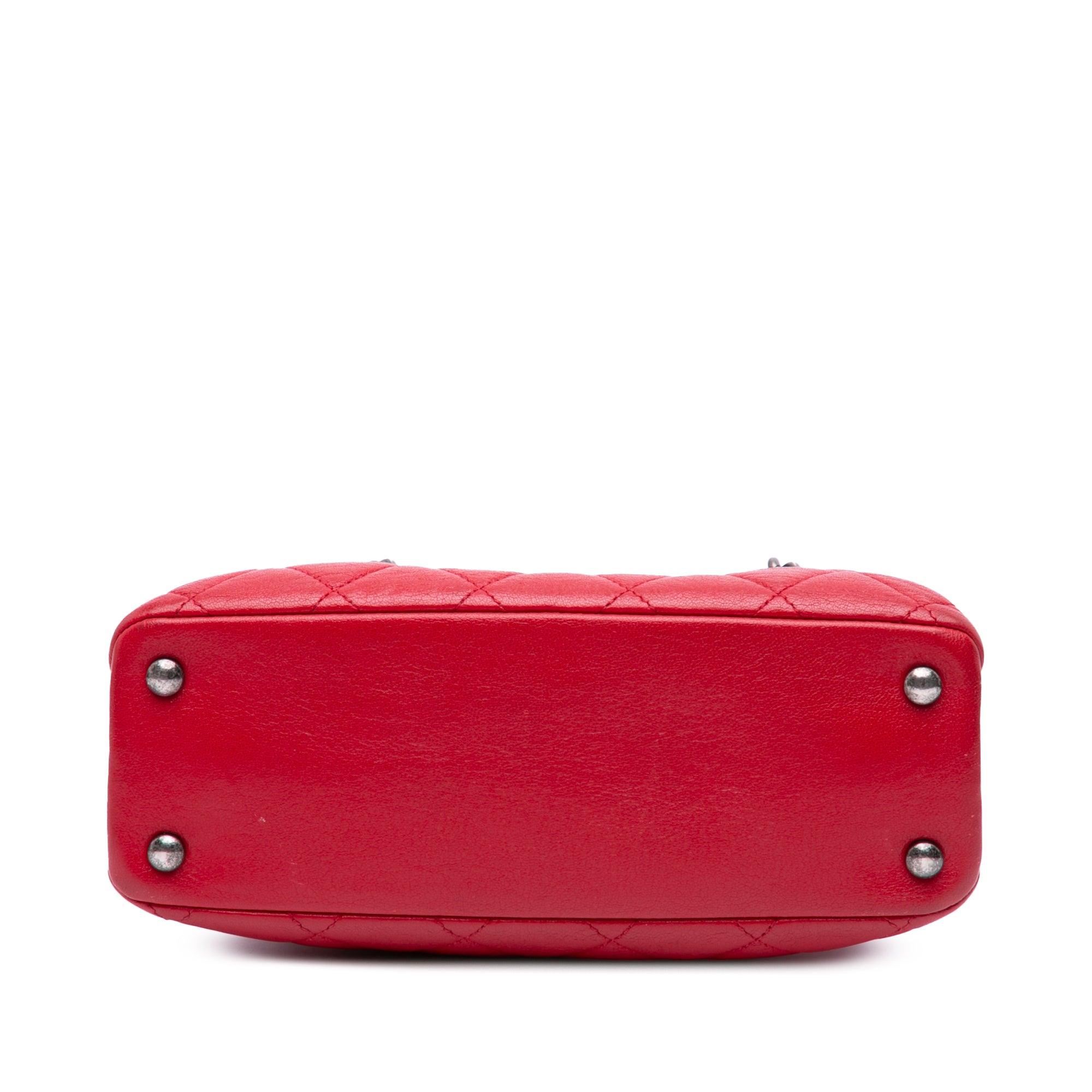 This satchel features a quilted sheepskin leather body, rolled leather top handles, chain link and leather shoulder straps, a top zip closure, an interior zip compartment, and interior zip and slip pockets. Retail Price: 3100.00