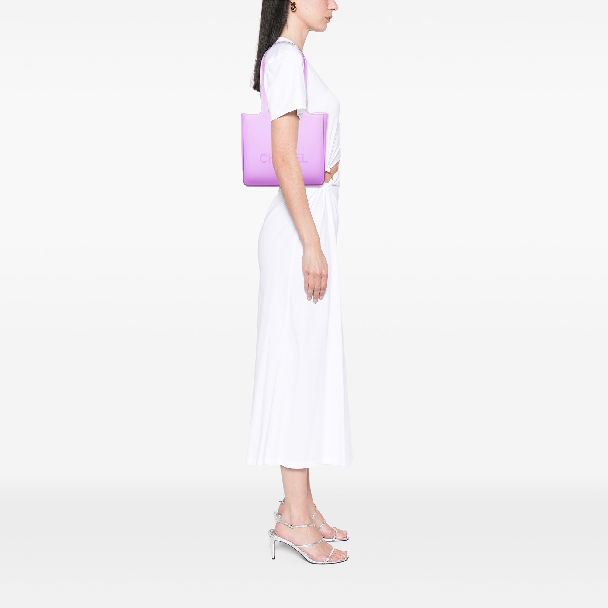 The Jelly Tote features a rubber bod, flat handles, and an open top. Retail Price: 725.00