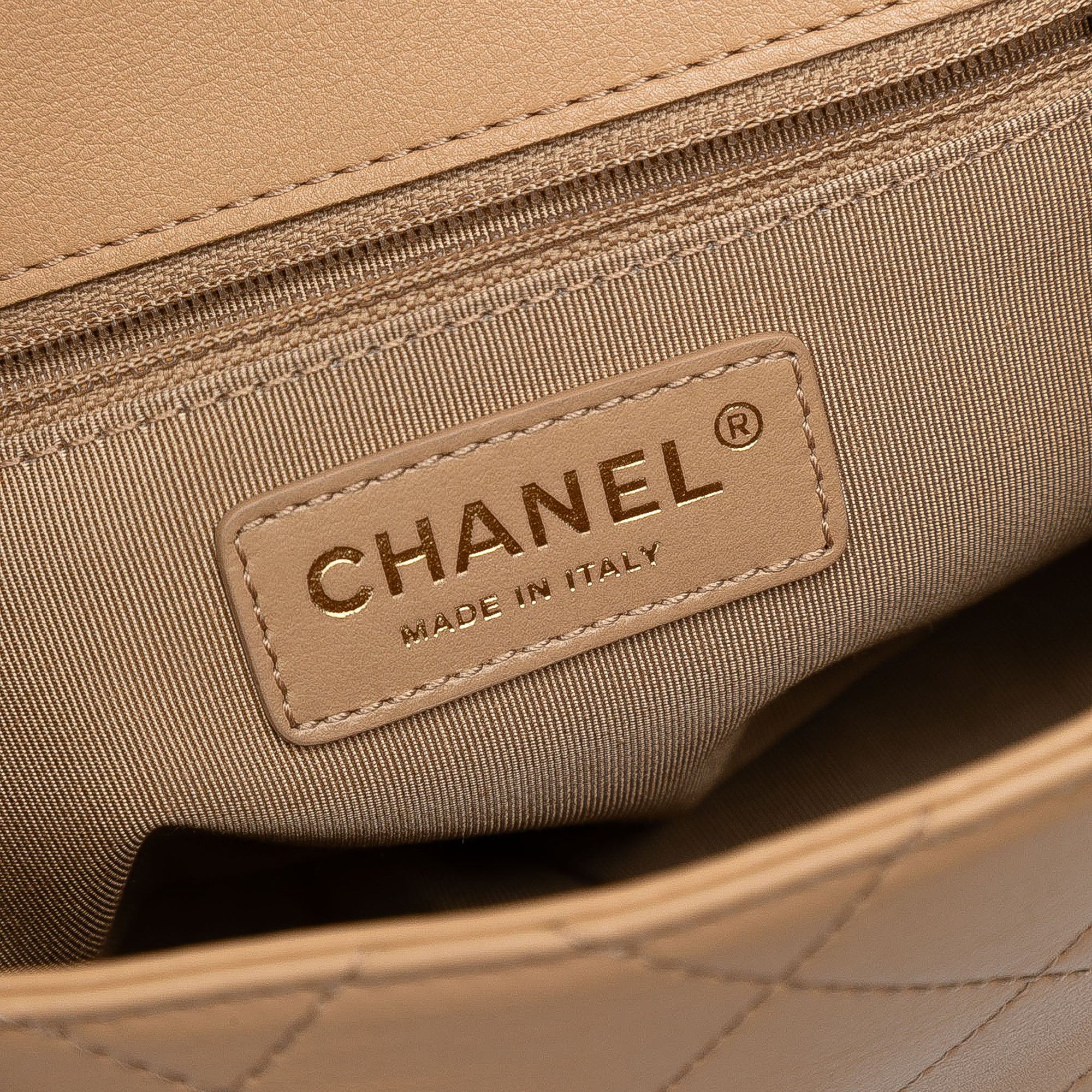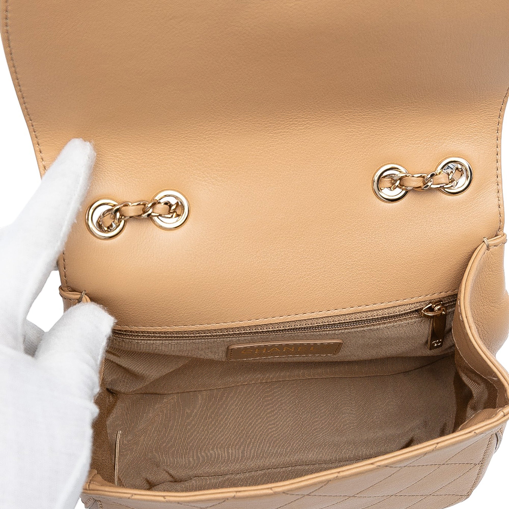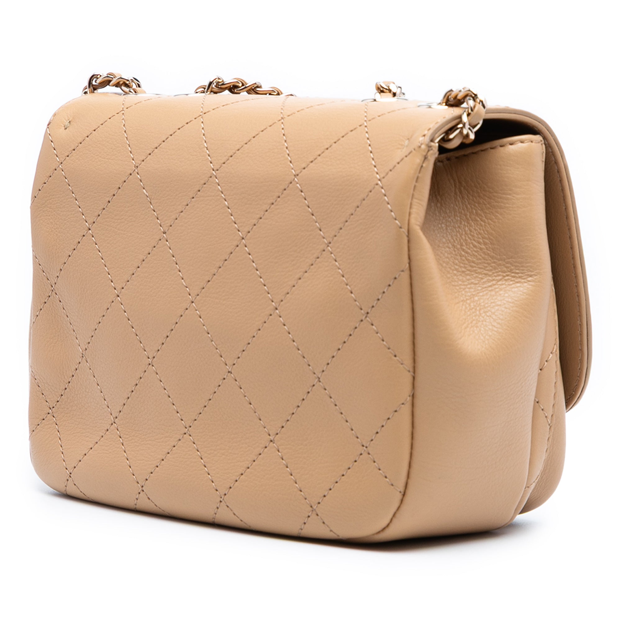 This crossbody bag features a stitched leather body, a leather woven chain strap with leather shoulder guard, a flap with CC turn lock closure, and an interior zip pocket. Inclusion: authenticity card. Retail Price: 2790.00