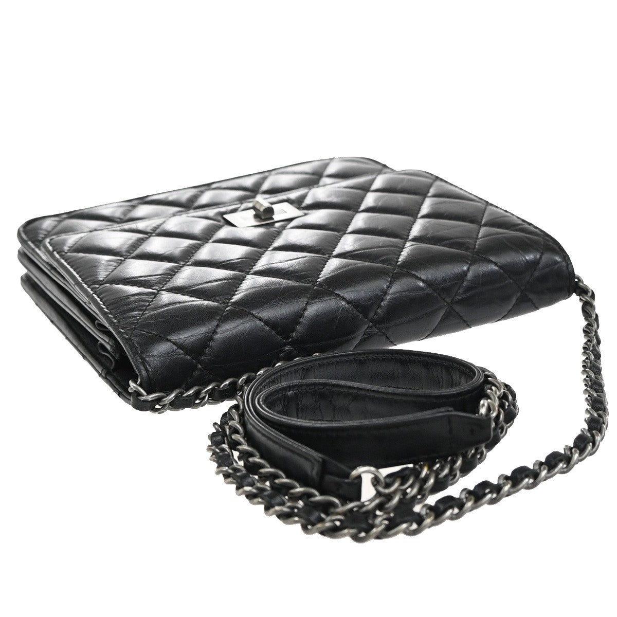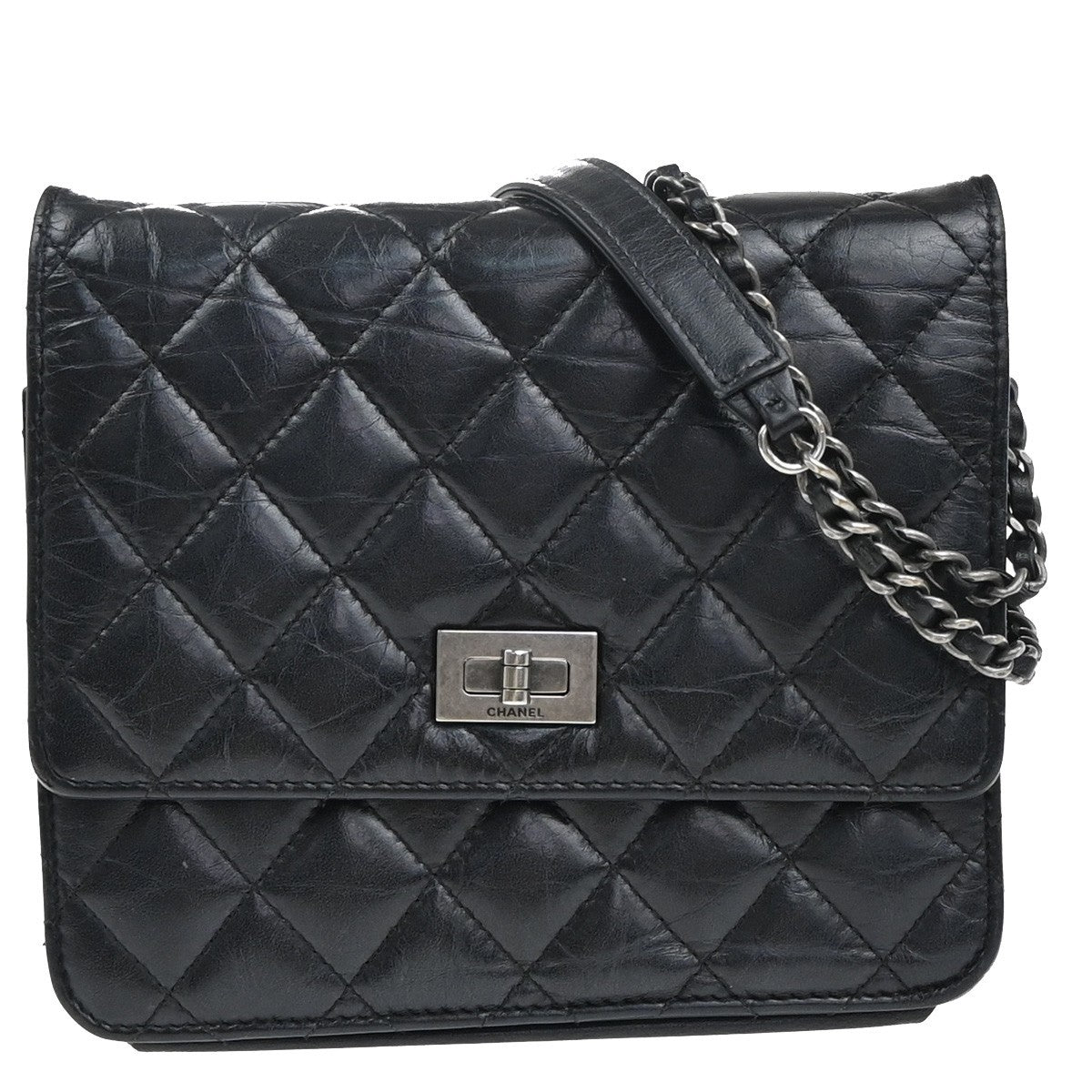Chanel So Black Reissue 2.55 Wallet on Chain Quilted Aged