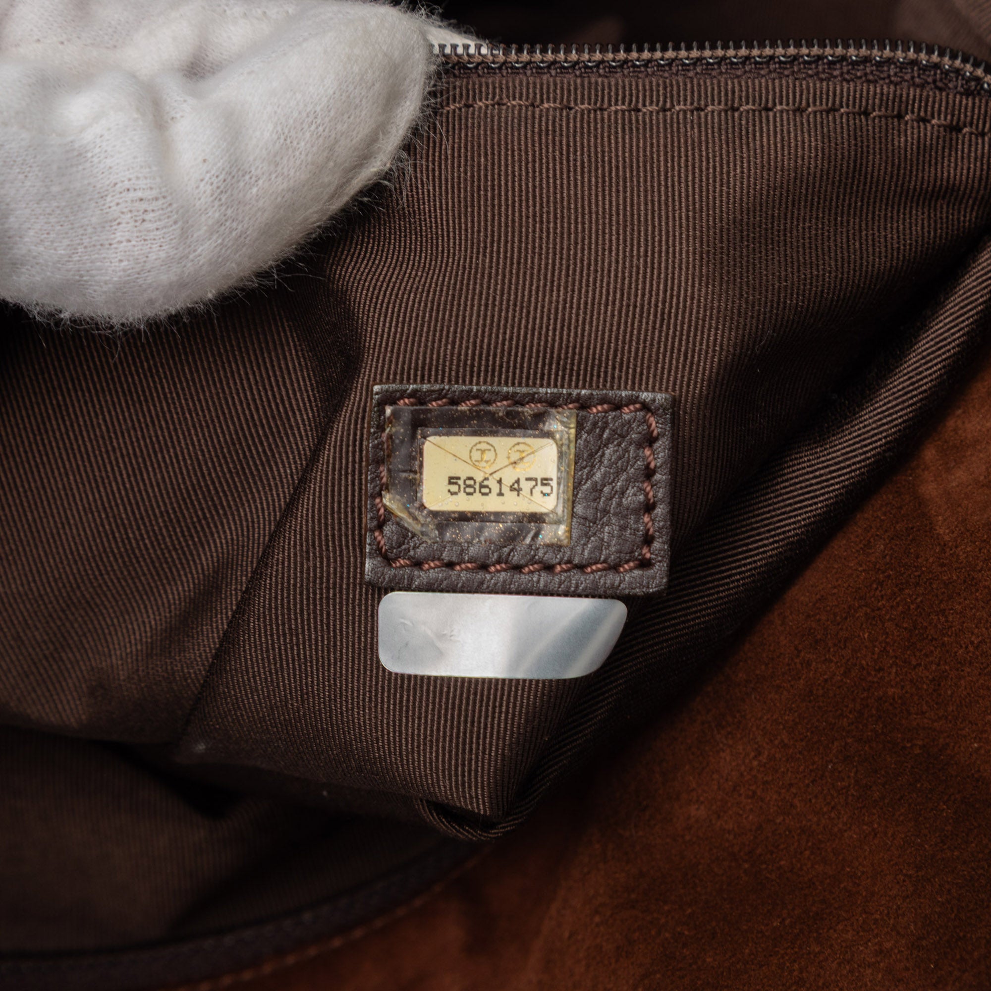 This crossbody bag features a suede leather body, a flat strap, a front flap with a magnetic closure, and an interior zip pocket. Retail Price: 1753.00
