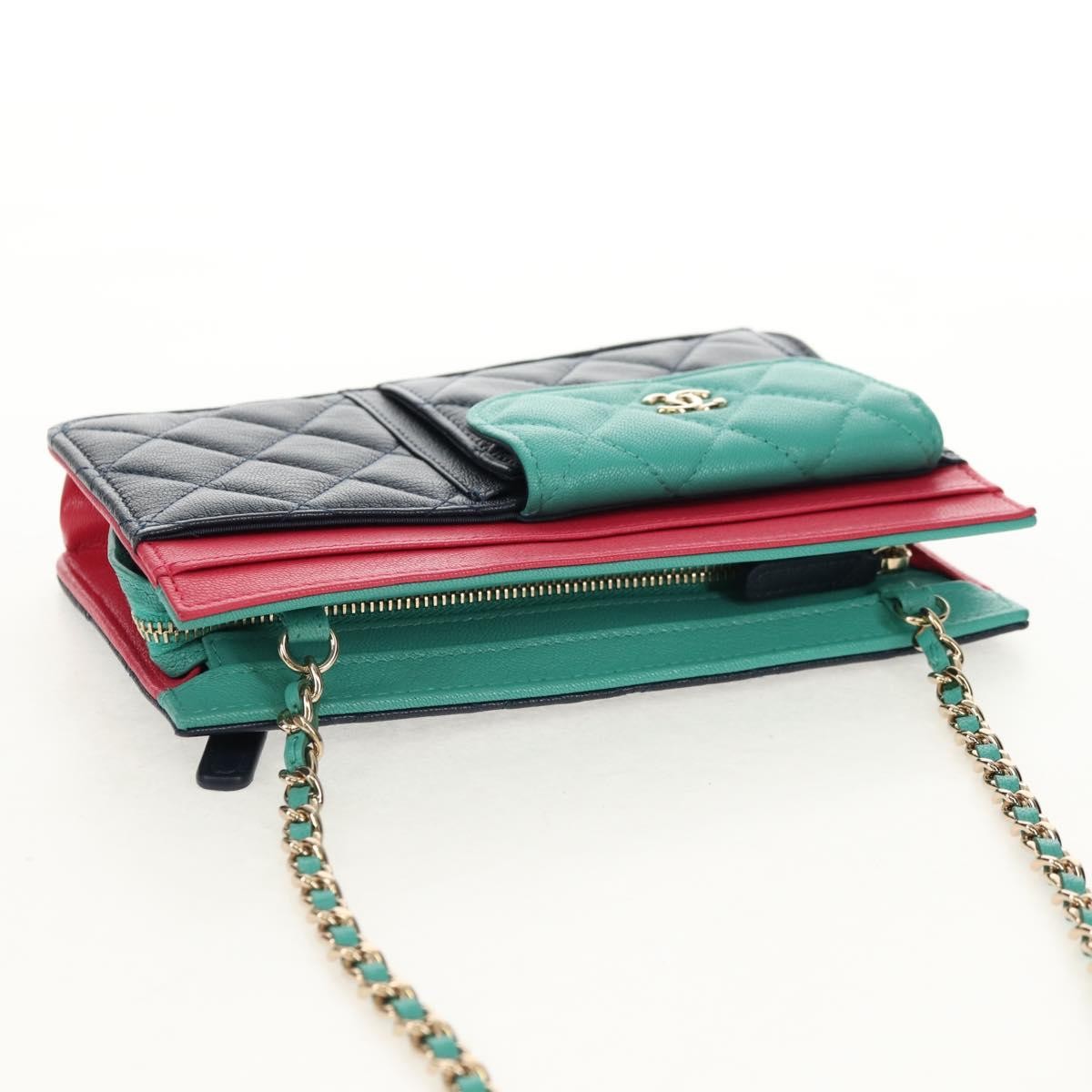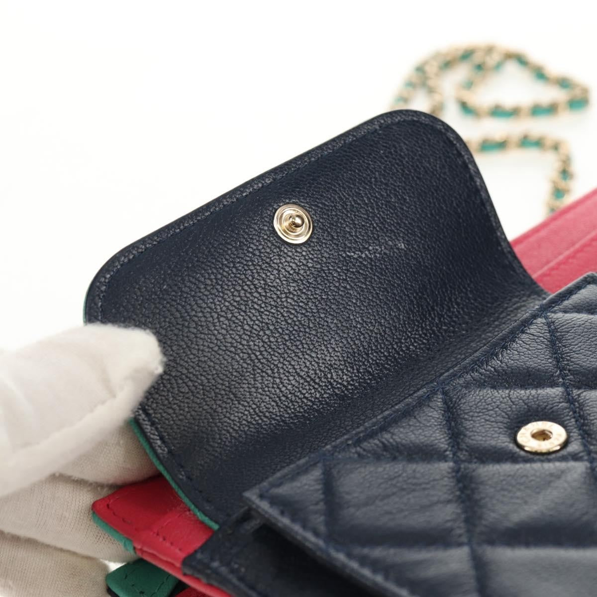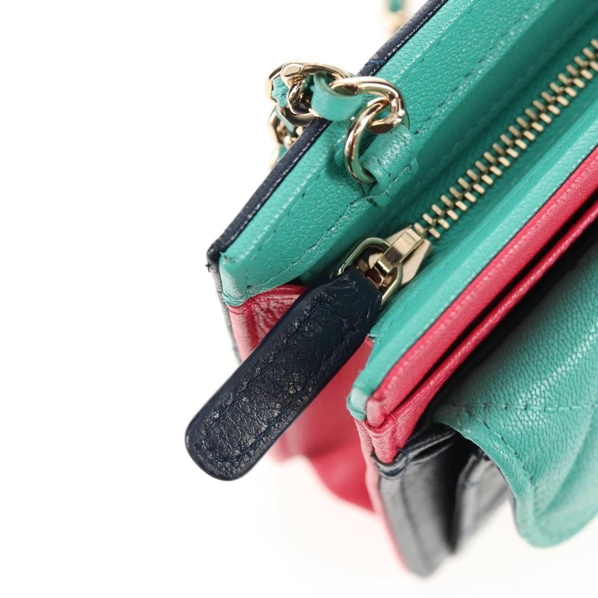 Chanel Tricolor CC Multi-Pocket Wallet on Chain Quilted Goatskin