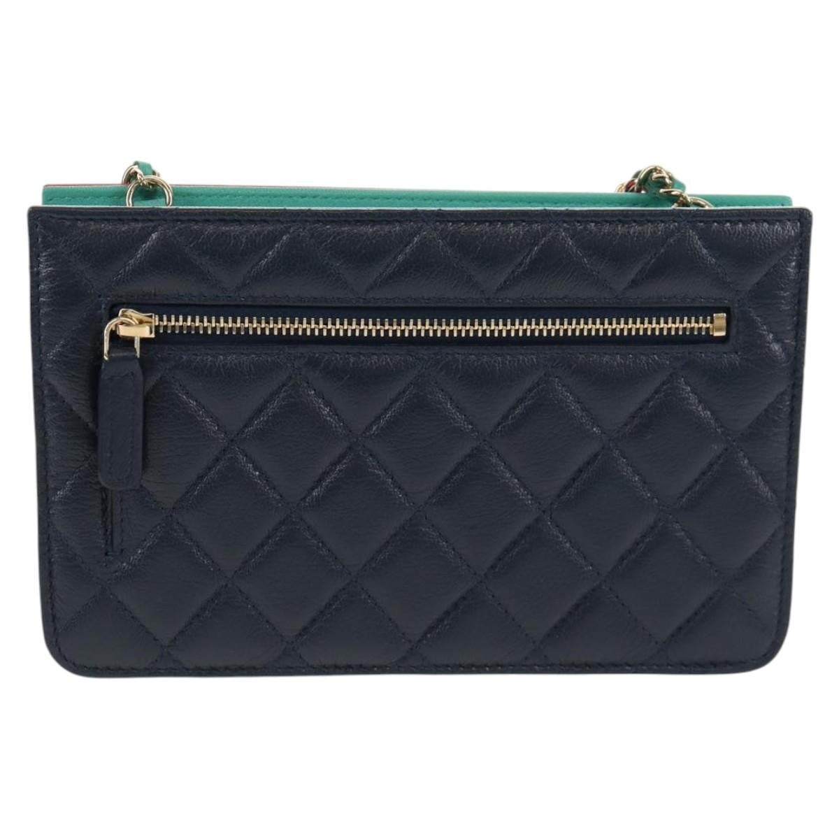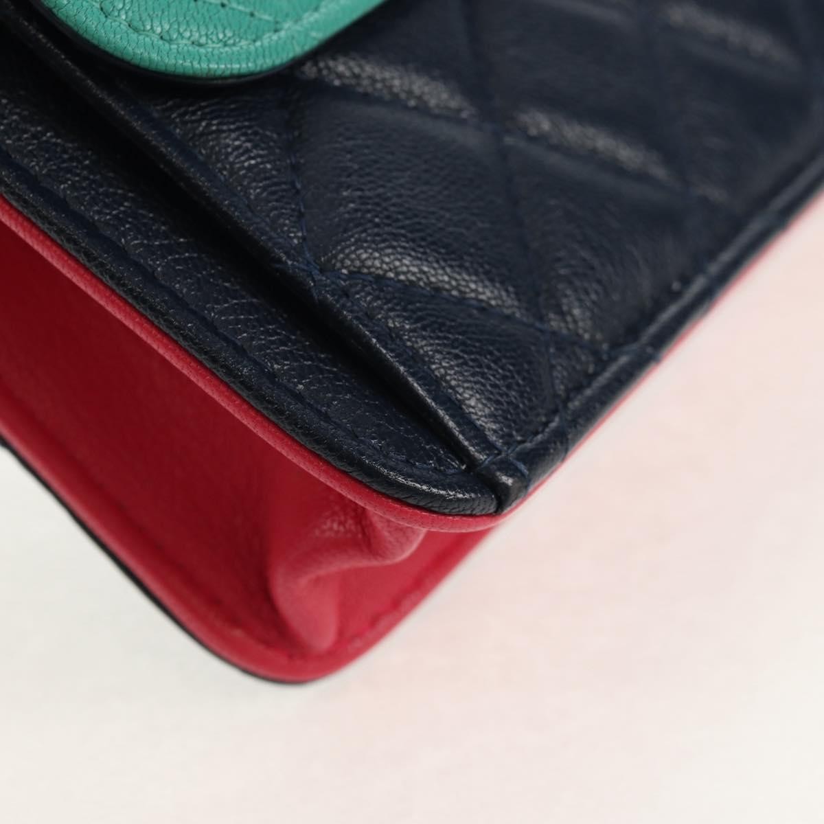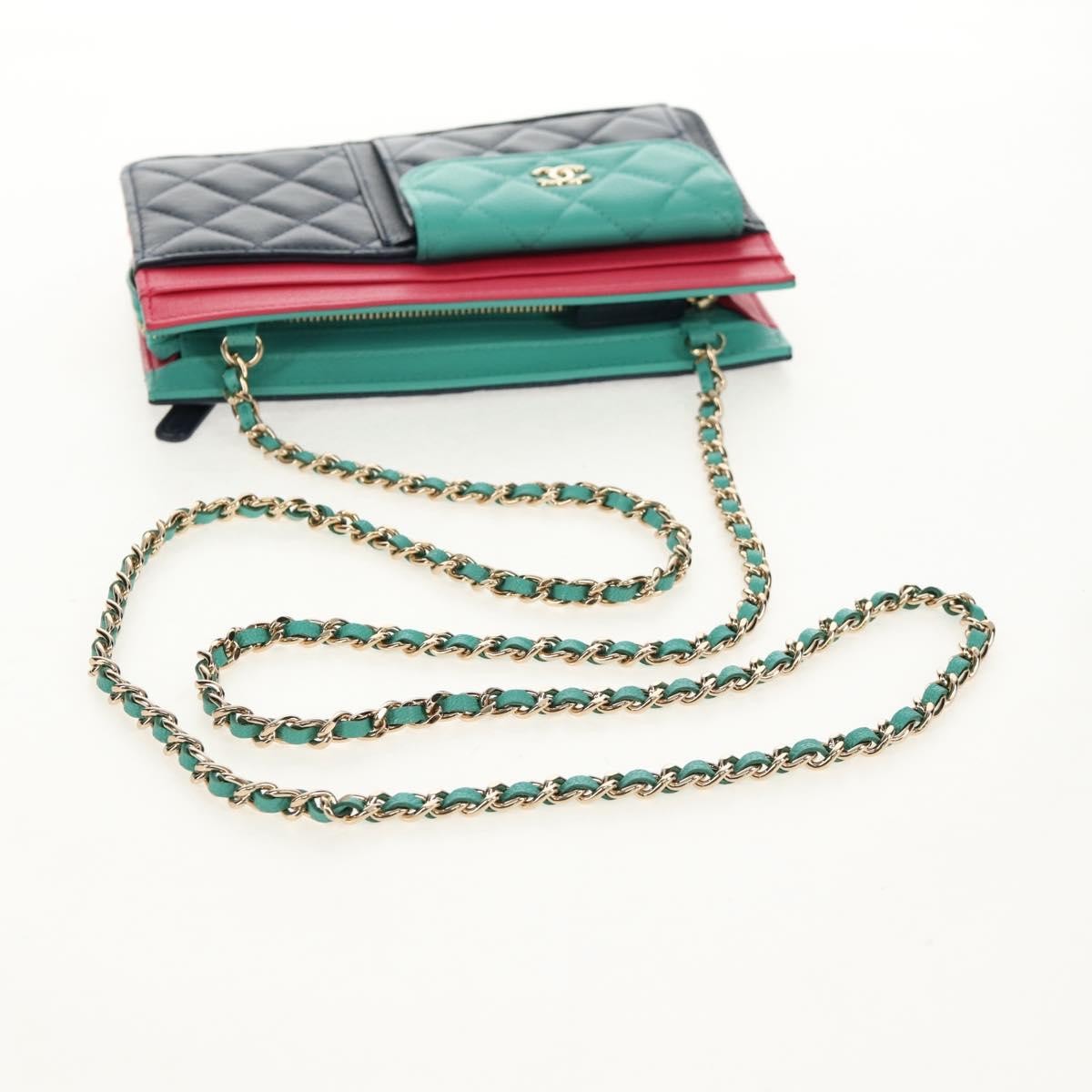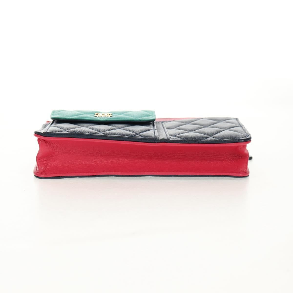 Chanel Tricolor CC Multi-Pocket Wallet on Chain Quilted Goatskin