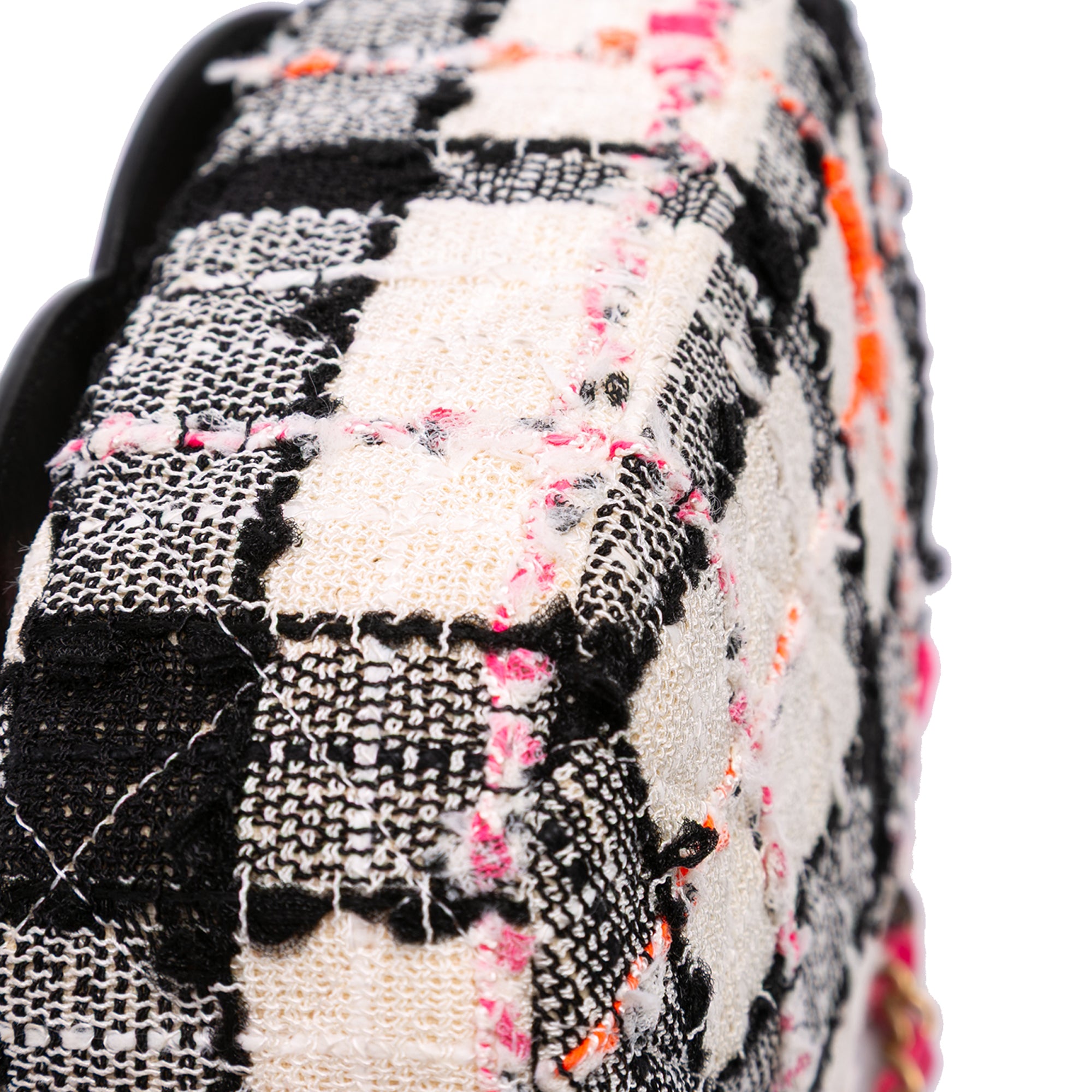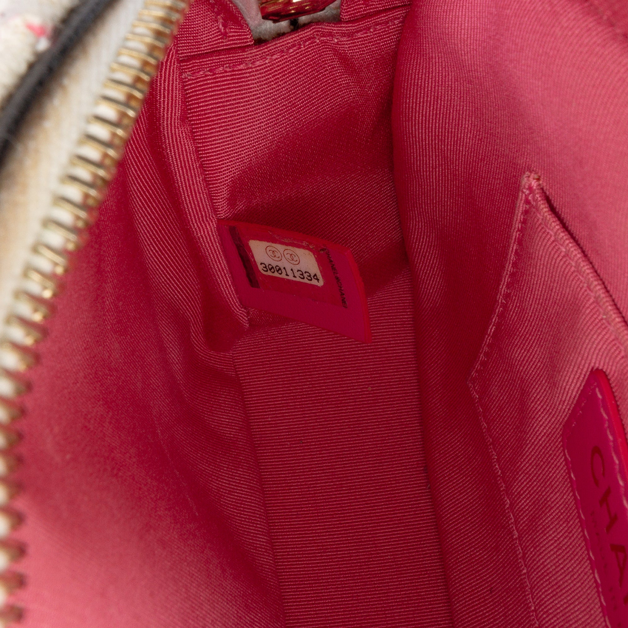 This crossbody features a tweed body with leather trim, a woven chain strap with leather guard, a top zip closure, and an interior slip pocket. Retail Price: 5800.00