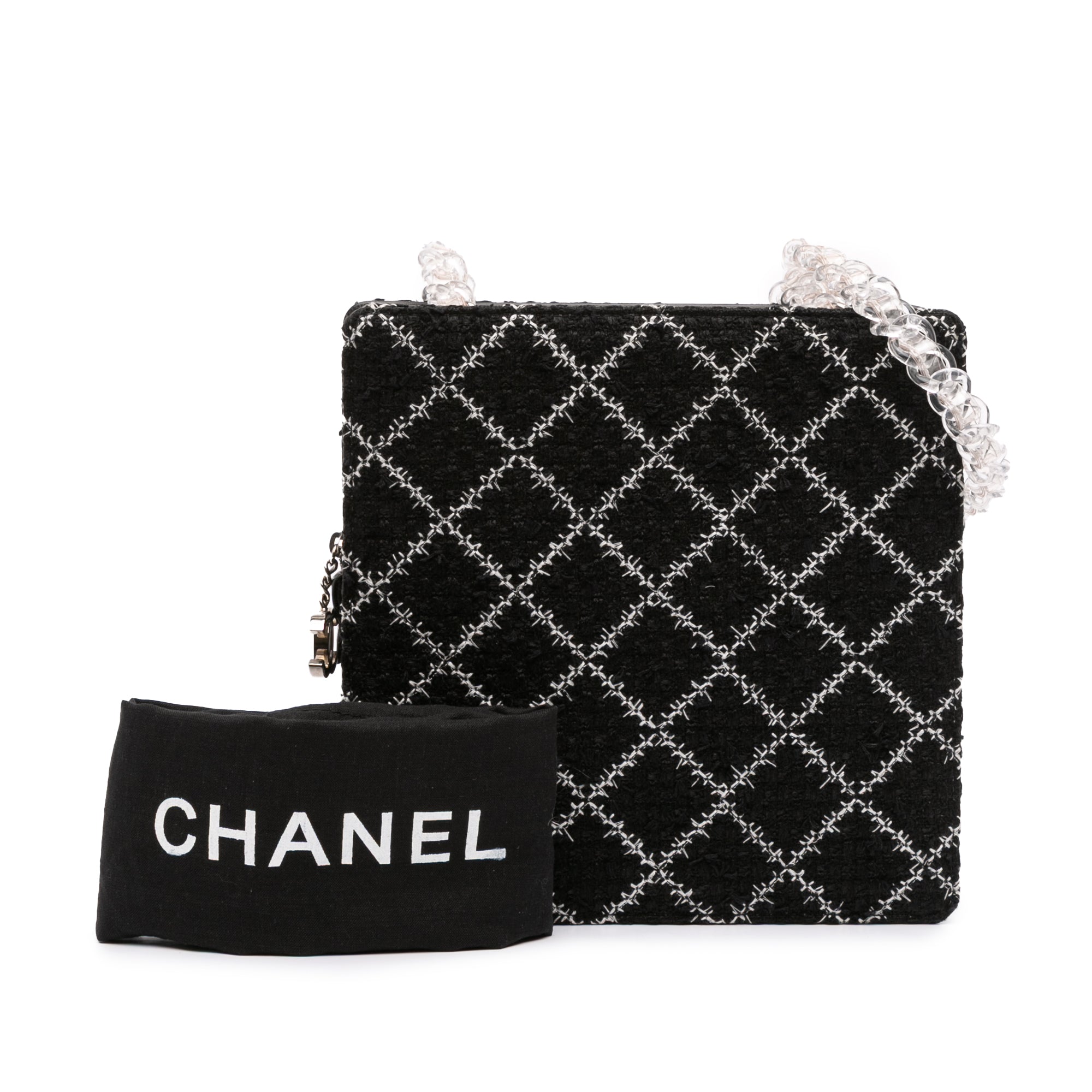 This shoulder bag features a tweed body, resin chain shoulder straps, a top zip closure and an interior zip pocket. Inclusion: Dust bag. Retail Price: 2800.00