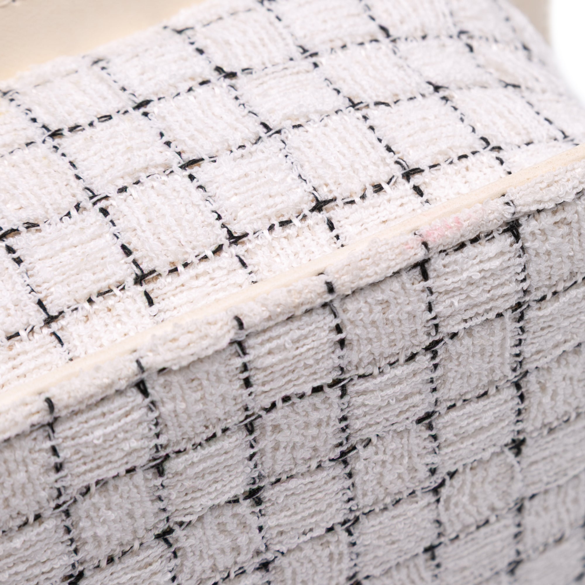 This shoulder bag features a tweed body with leather trim, resin chain straps, a top zip closure, and an interior zip pocket. Inclusion: authenticity card. Retail Price: 2800.00