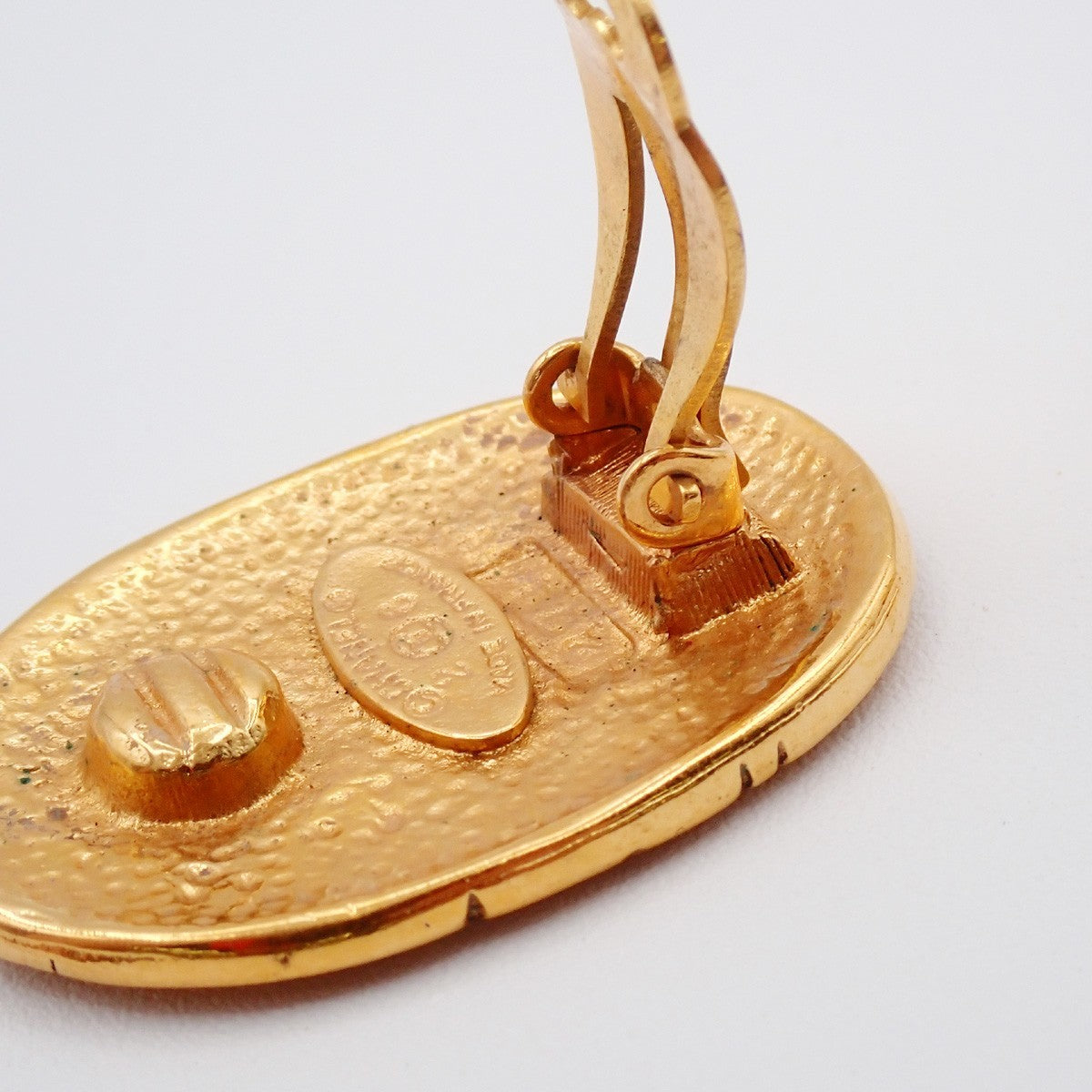 Chanel Vintage CC Crown Oval Plate Clip-On Earrings