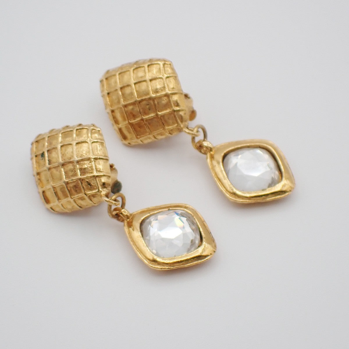 Chanel Vintage CC Diamond Drop Clip-On Earrings