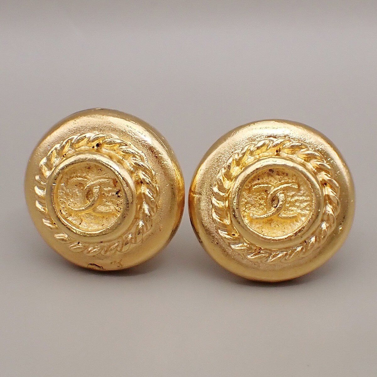Chanel Vintage CC Logo Round Clip on Earrings Textured