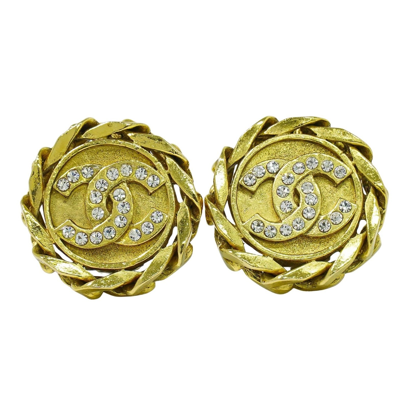 Brand : Chanel Model : Vintage CC Round Clip-On Earrings Style : Metal with Crystals Serial number : 23 Inclusions : Original Box