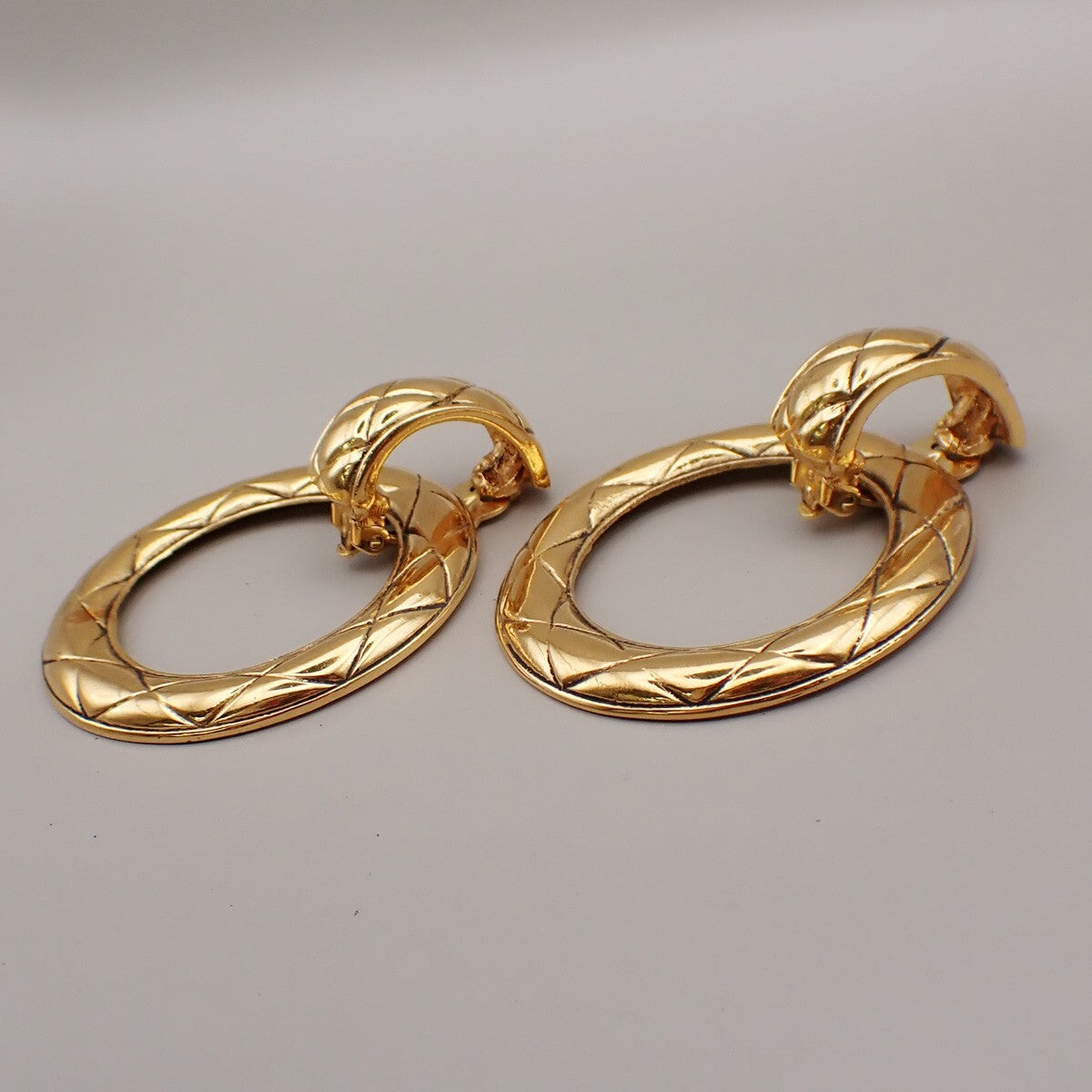 Chanel Vintage CC Round Drop Clip-On Earrings