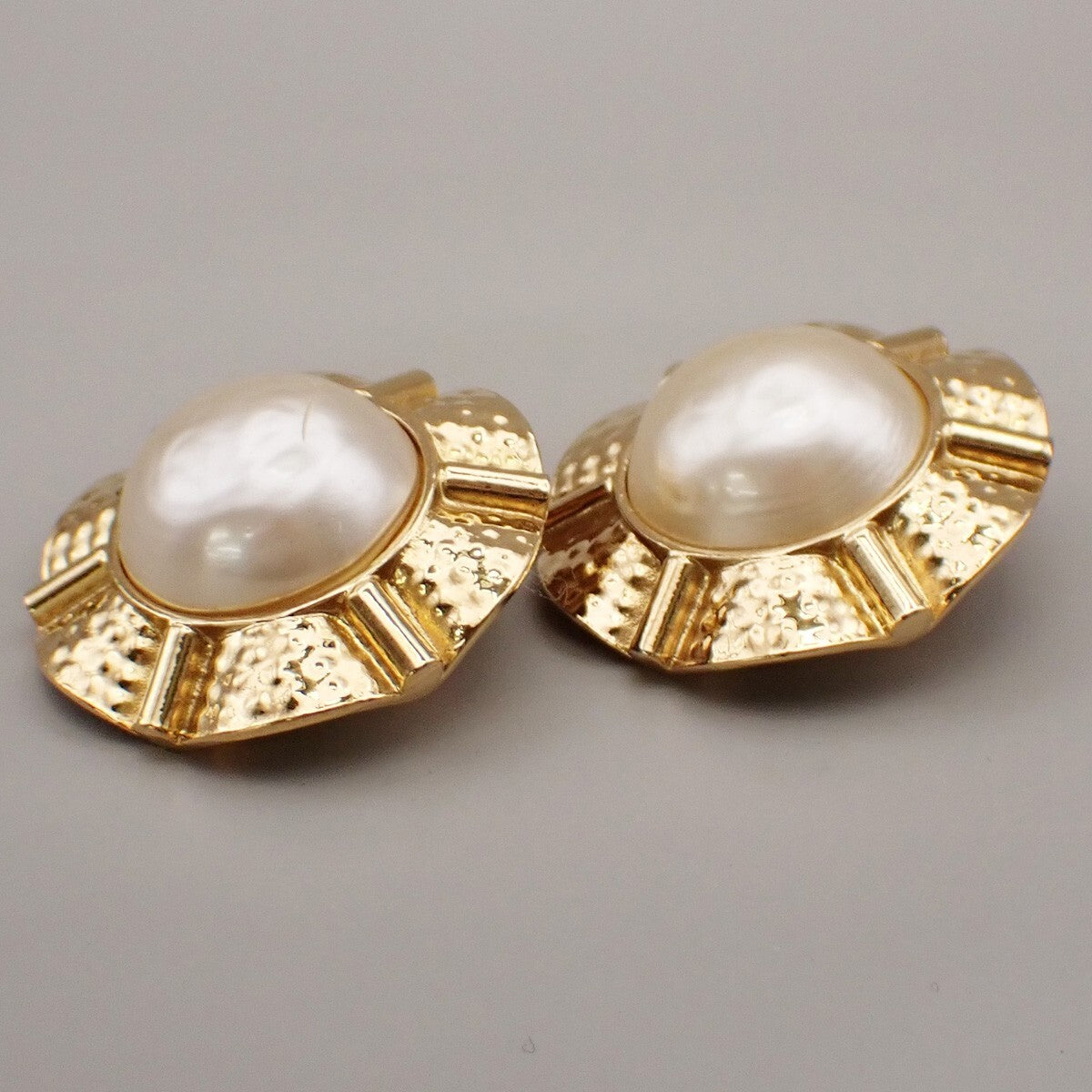Chanel Vintage Clip-On Earrings Metal with Faux