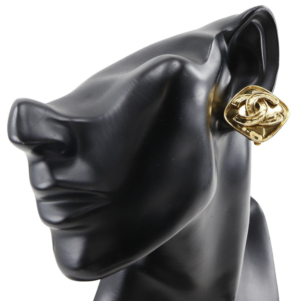 Chanel Vintage Diamond Clip-On Earrings Gold-plated