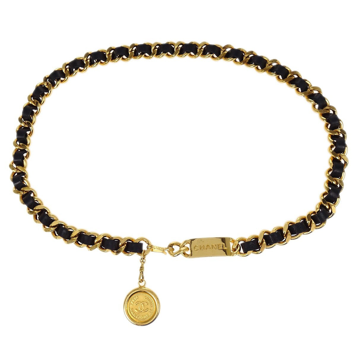 Chanel Vintage Medallion Chain Belt Metal and Leather