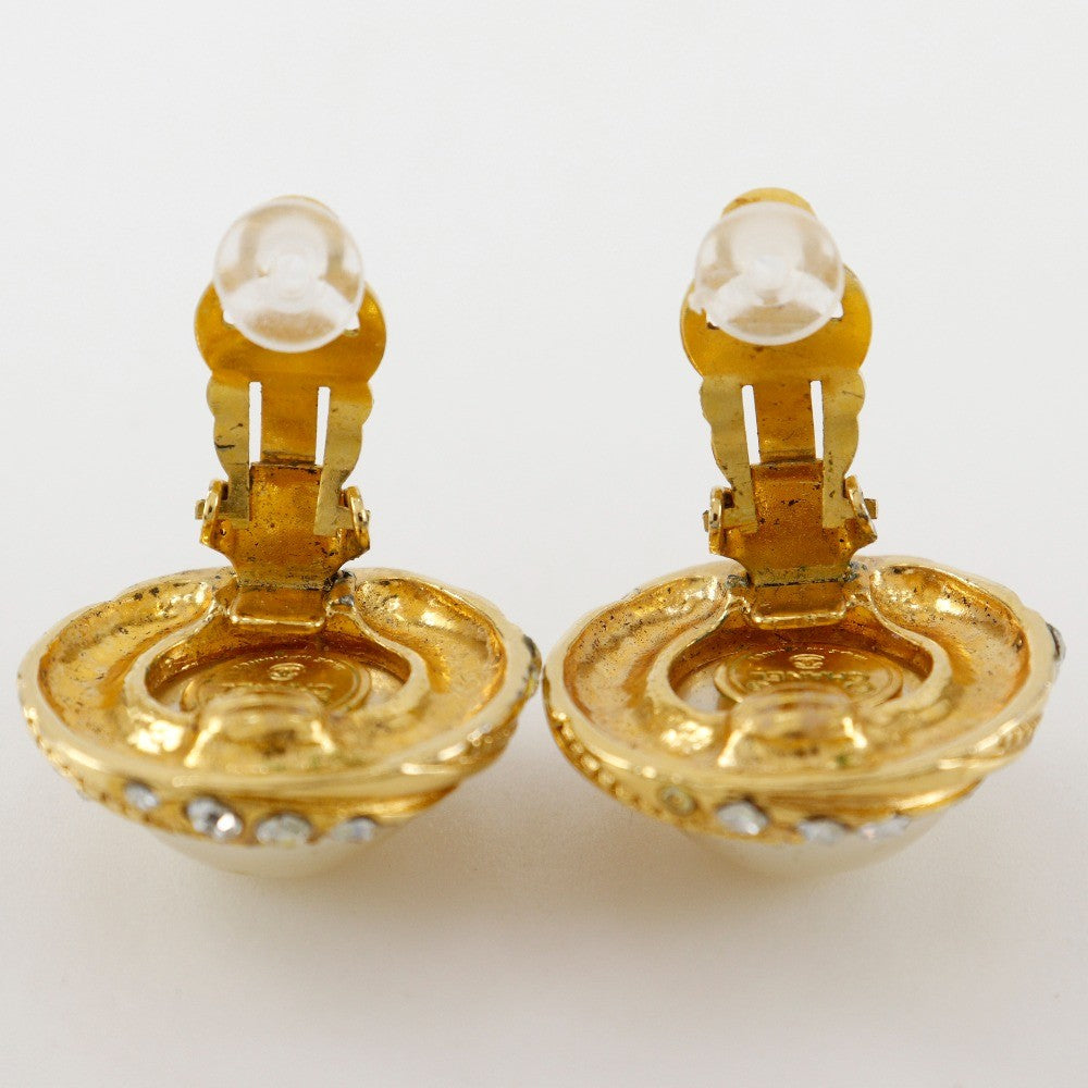 Chanel Vintage Round CC Clip-On Earrings Metal with Faux