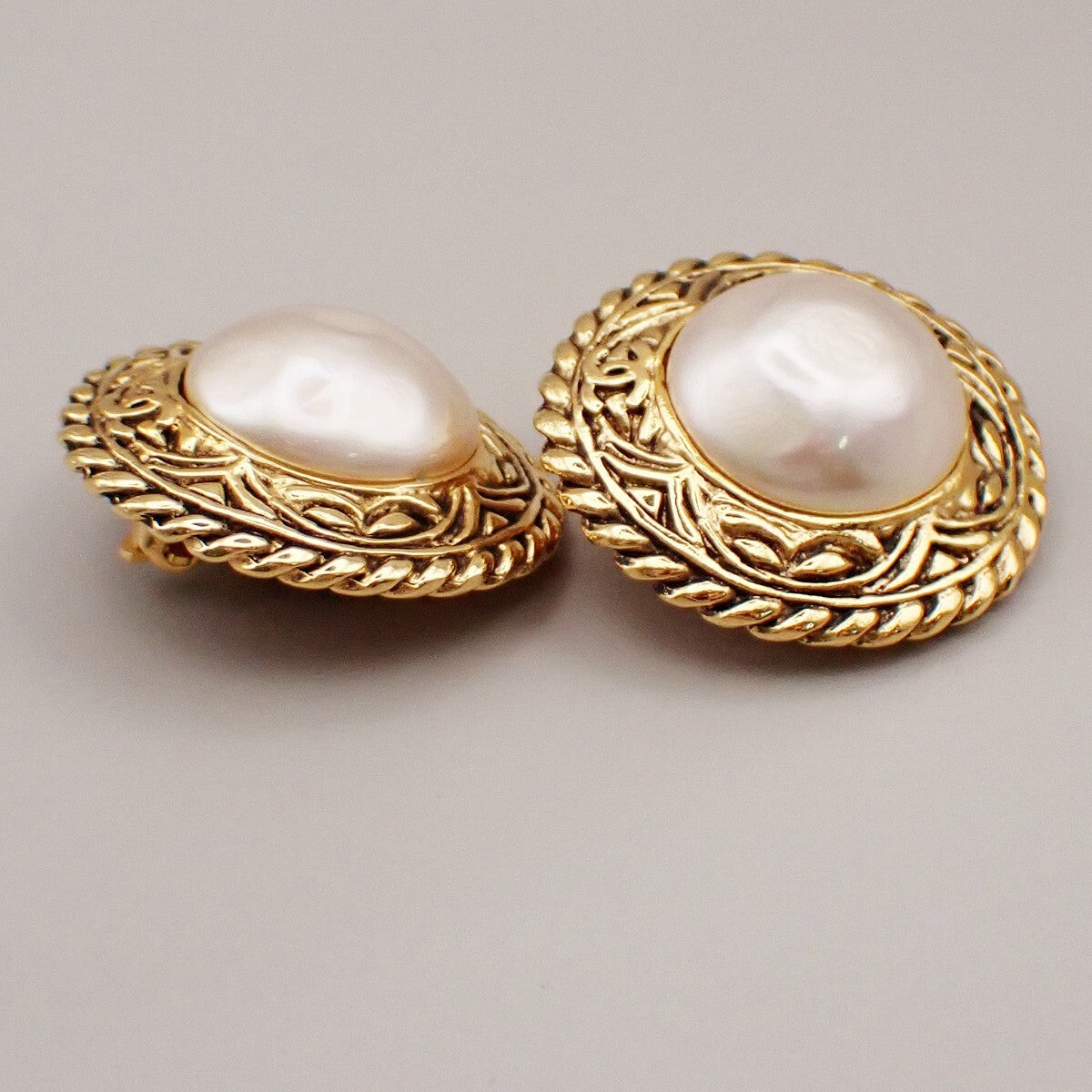 Brand : Chanel Model : Vintage round chain clip-on earrings Style : Metal with faux pearl Serial number : 36rk162