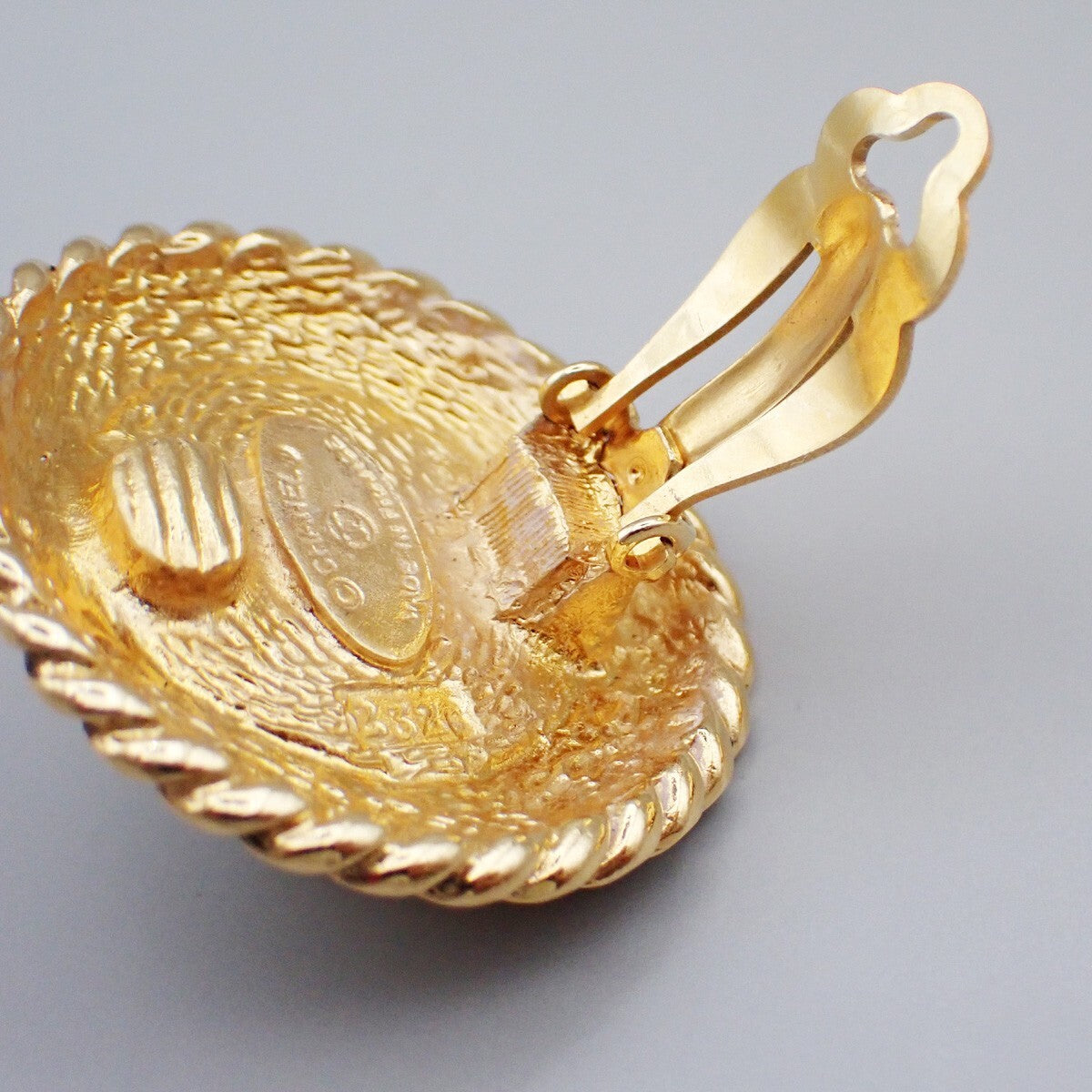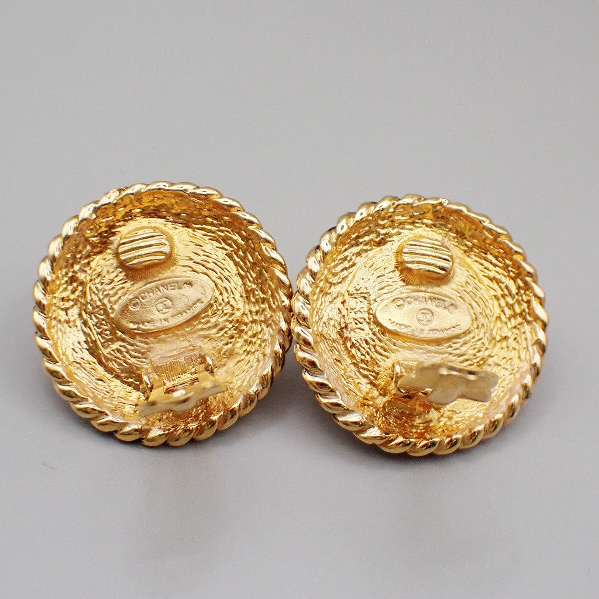 Chanel Vintage Round Chain Clip-On Earrings Metal with Faux
