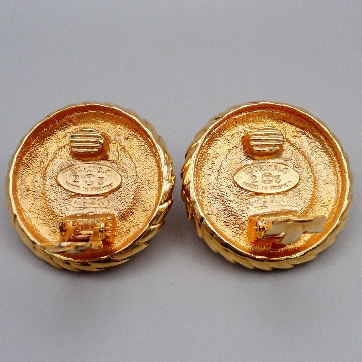 Chanel Vintage Round Clip-On Earrings Metal with Faux