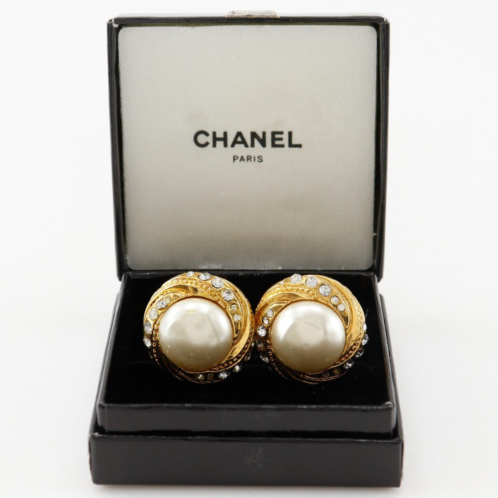 Brand : Chanel Model : Vintage Round Clip-On Earrings Style : Metal with Faux Pearl Serial number : / Inclusions : Storage box