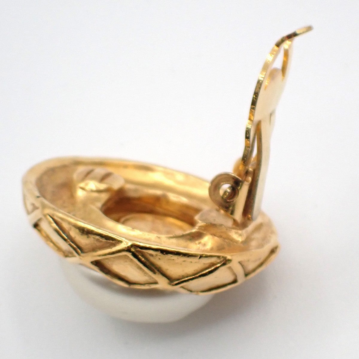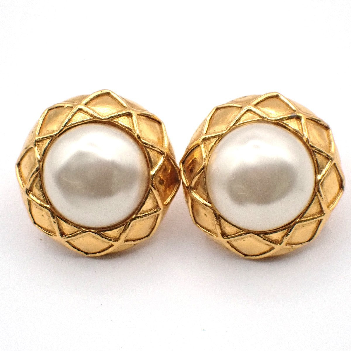 Brand : Chanel Model : Vintage round clip-on earrings Style : Metal with faux pearl Serial number : / Inclusions : /