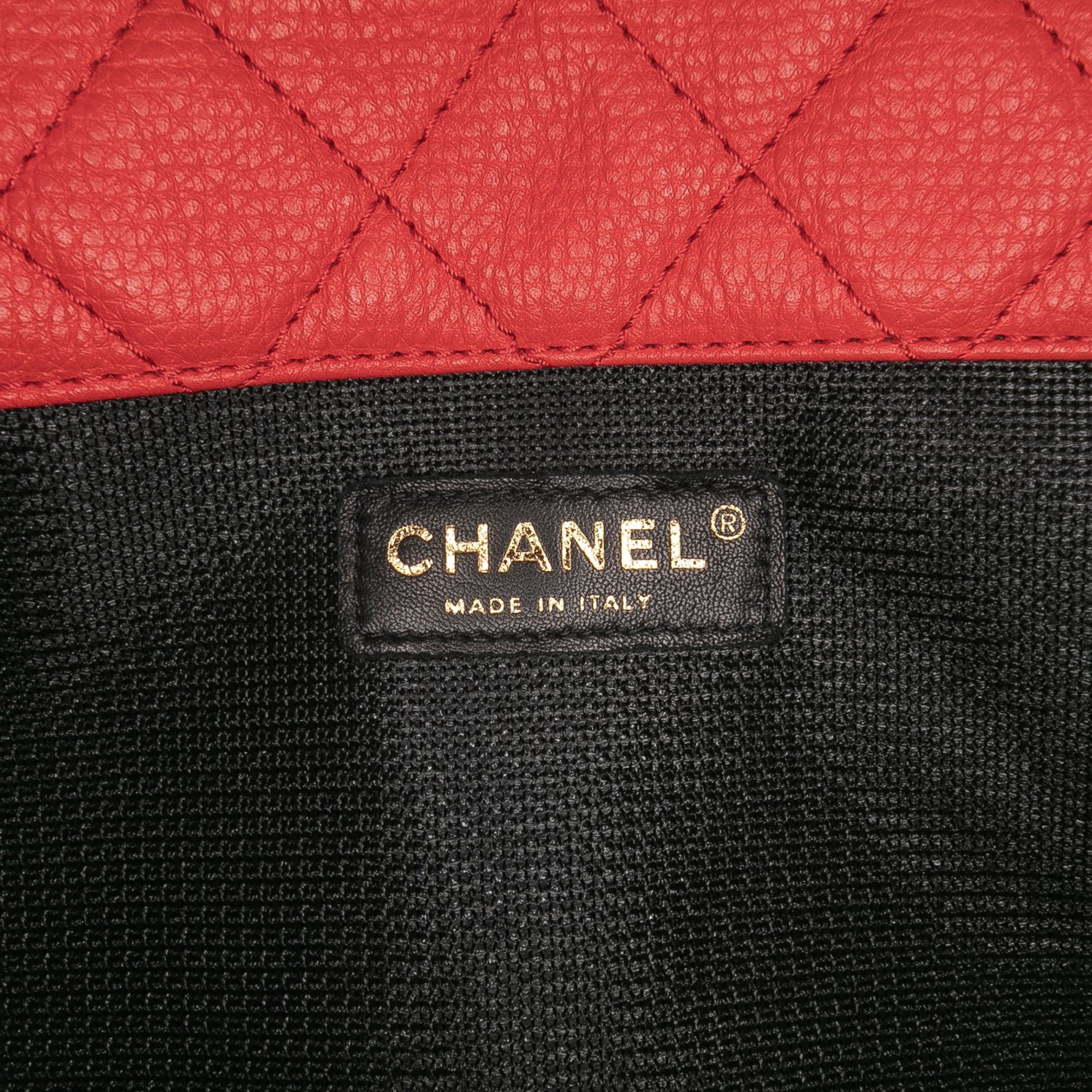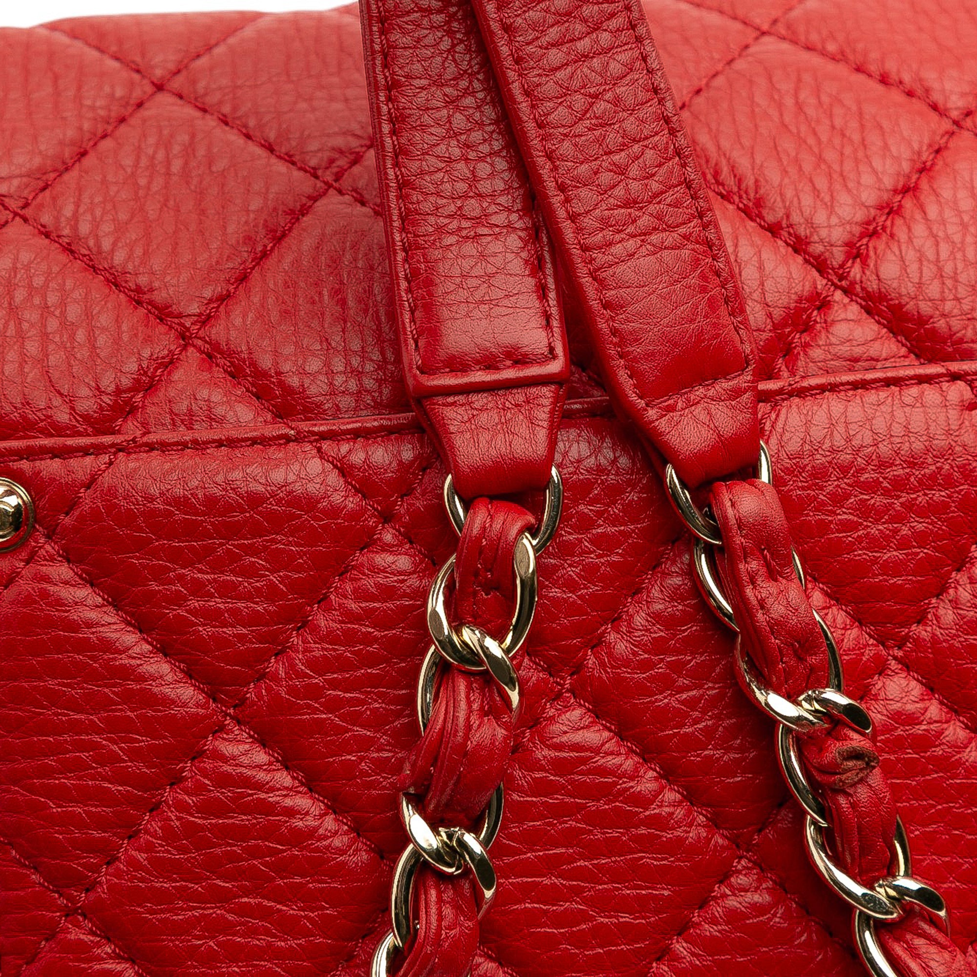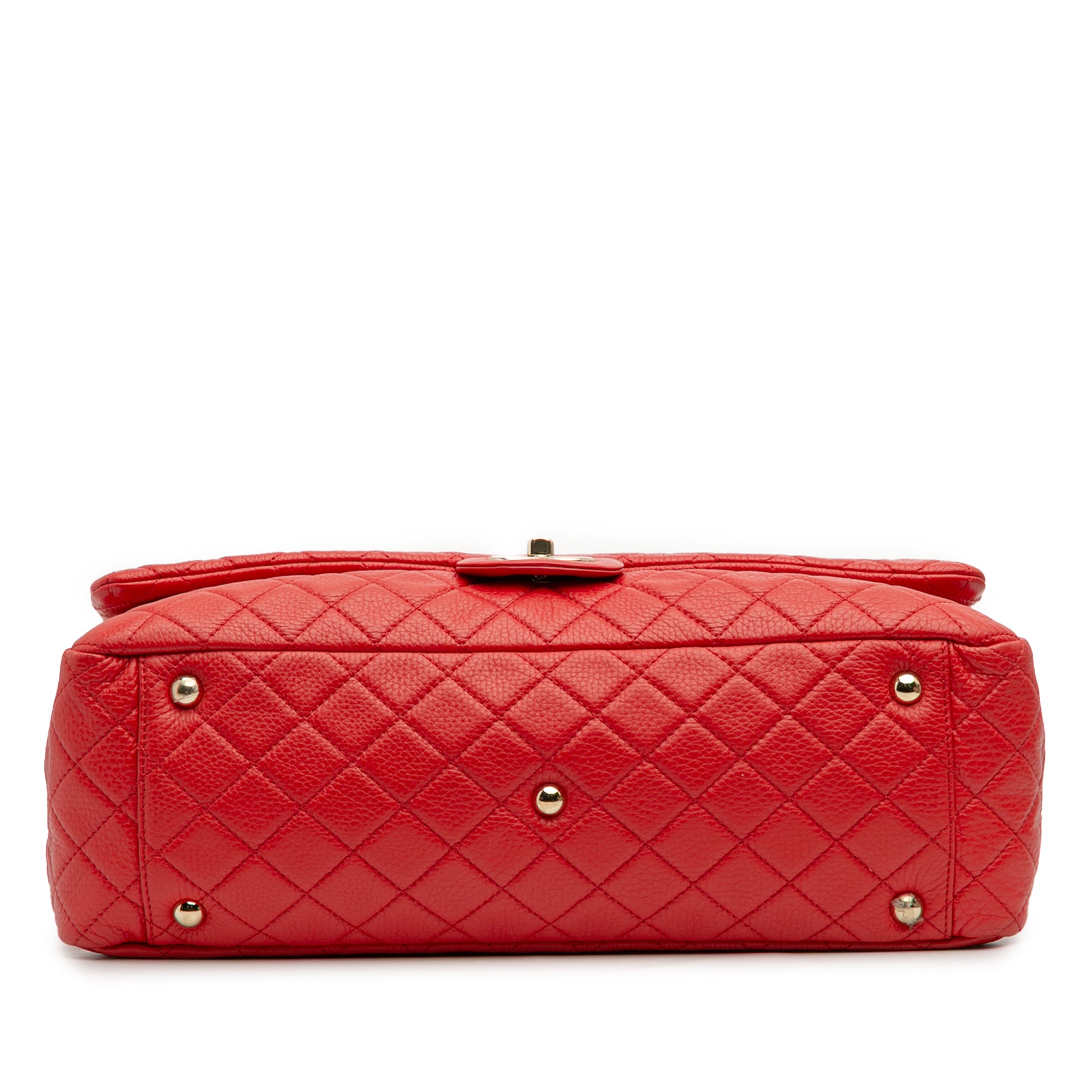 This flap features a quilted leather body, a leather woven chain link straps, a front flap with interlocking Cs and a twist lock closure, an exterior back slip pocket, and interior zip and slip pockets. Retail Price: 6100.00