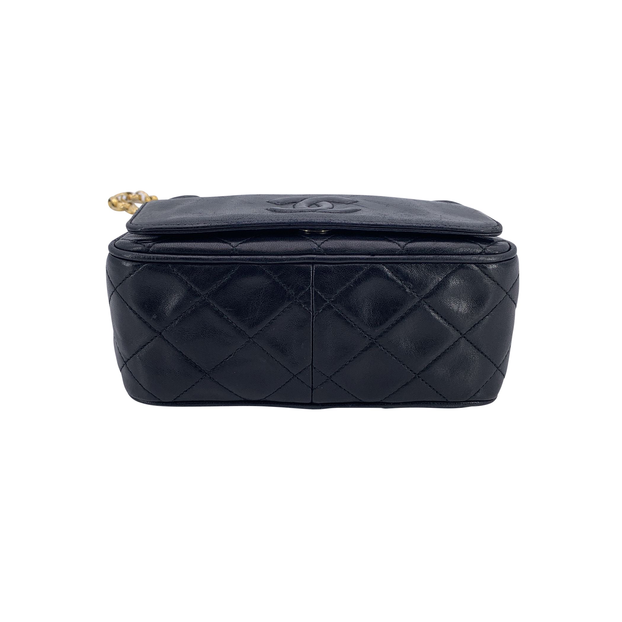 A Classic From The Golden Era Of Chanel, This Vintage Camera Bag Dates To Circa 1994-1996 And Embodies The Effortless Elegance Of The Maison. Crafted In Supple Black Lambskin Leather, Its Signature Matelassé Quilting Lends Timeless Texture, While The Gleaming Chain Shoulder Strap Adds Just The Right Touch Of Parisian Chic. The Top Zip Closure Is Finished With a Playful Tassel Detail, Opening To a Spacious Single Compartment Lined In Smooth Leather. Thoughtful Design Continues With a Front Flap Pocket And An Interior Zip Pocket, Keeping Essentials Beautifully Organized. Embellished With The Iconic Cc Logo On The Fronti, This Piece Is Both a Practical Everyday Companion And a Collectible Emblem Of Chanel's Enduring Style. 'Chanel' And 'Made In Italy' Embossed Inside