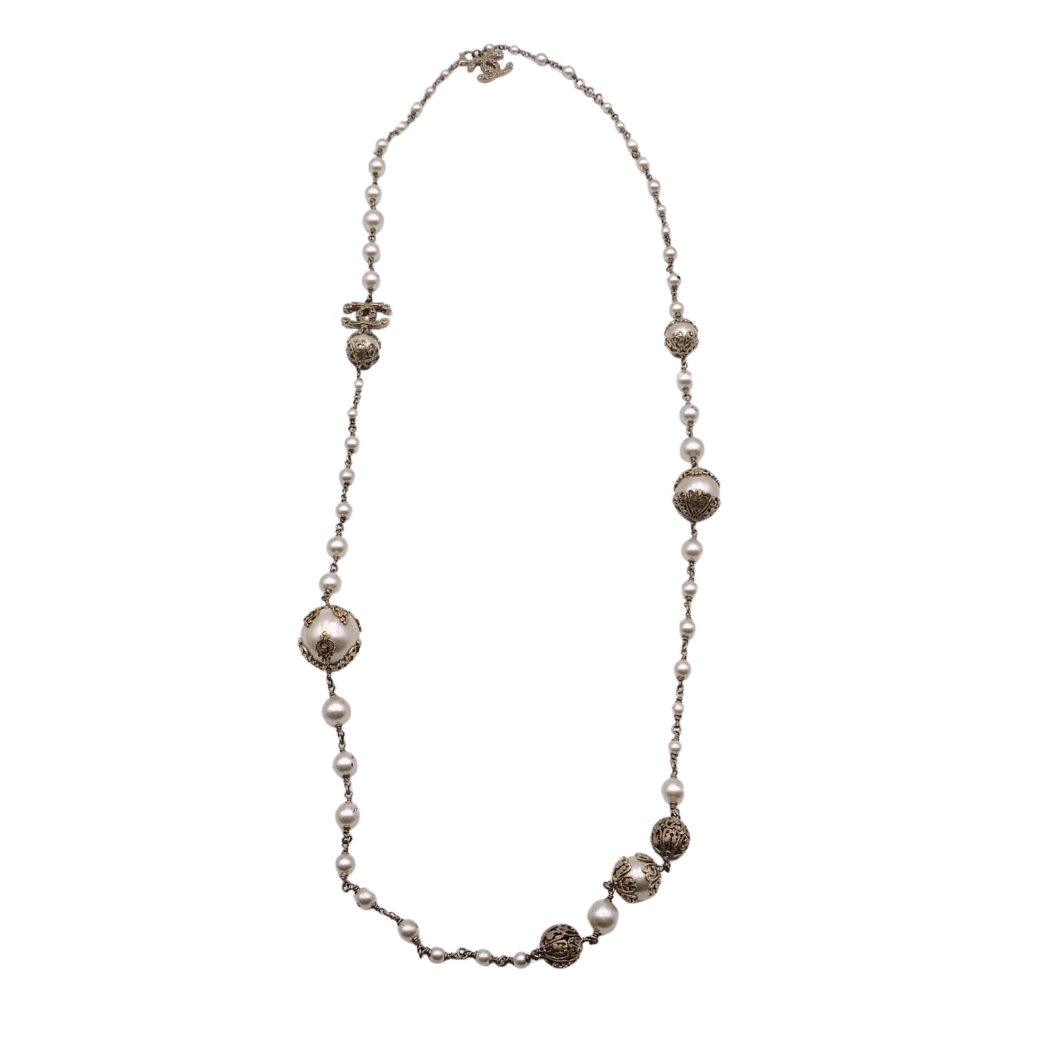 A Stunning Example Of Chanel's Timeless Elegance, This Chanel Multi-chain Faux Pearl Necklace Or Belt From The 2006 Collection Is a Truly Versatile Statement Piece. Crafted In Light Aged Gold-tone Metal And Adorned With Faux Pearls, It Exudes The Refined Glamour That Defines The Maison's Jewelry Design. Its Multi-chain Construction Gives It Texture And Movement, Allowing It To Be Styled In Multiple Ways-worn Long, Doubled As a Layered Necklace, Or Cinched At The Waist As a Belt. The Piece Secures With a Classic Lobster Clasp Closure For Ease And Comfort. Measuring a Total Of 50 Inches (127 Cm) In Length, It's Finished With The Signature 'Chanel 06 Cc P - Made In Italy' Oval Hallmark Tag On The Reverse Of The Main Piece. Sophisticated Yet Playful, This Chanel Creation Is a Collectible Accessory That Adds An Unmistakable Touch Of Parisian Allure To Any Look.