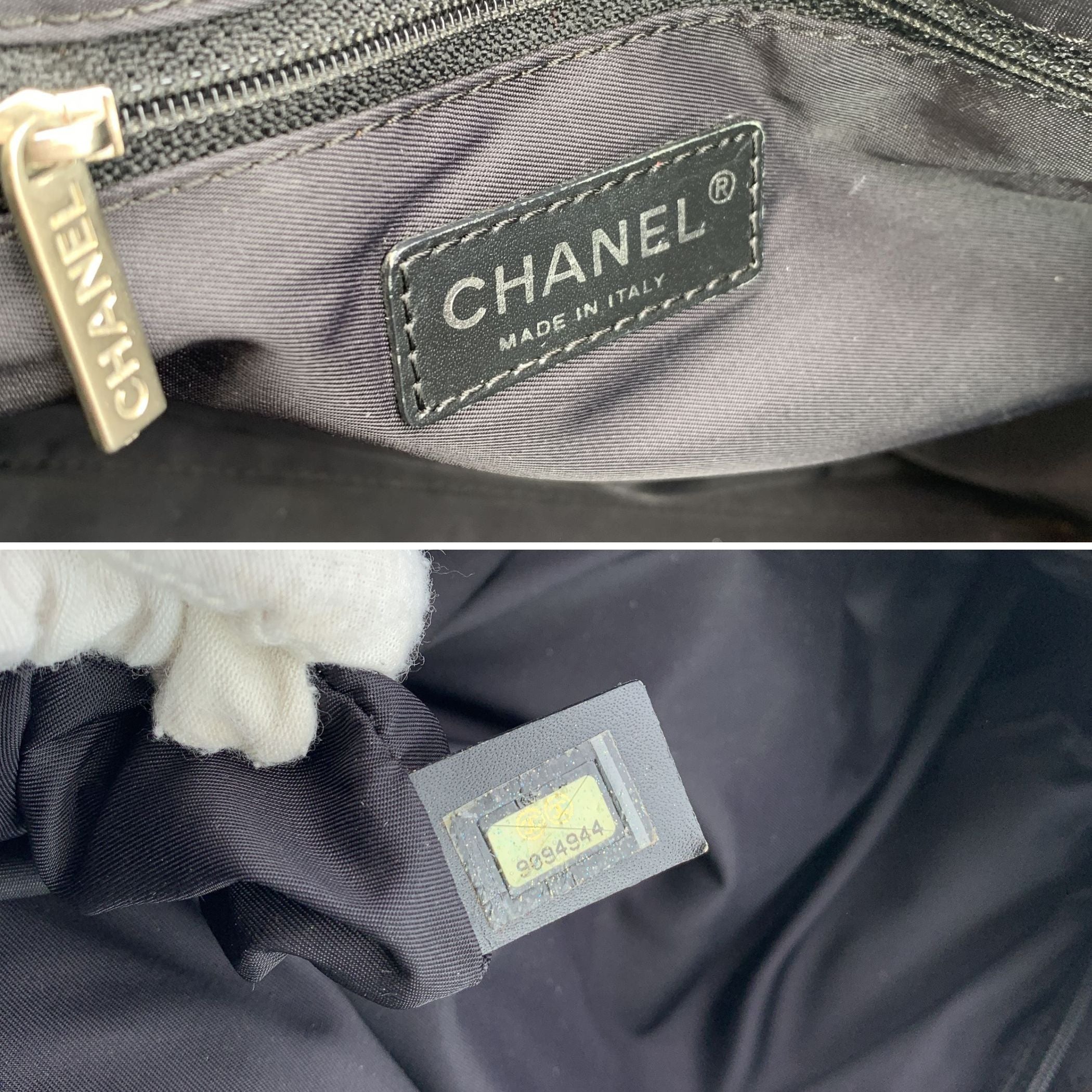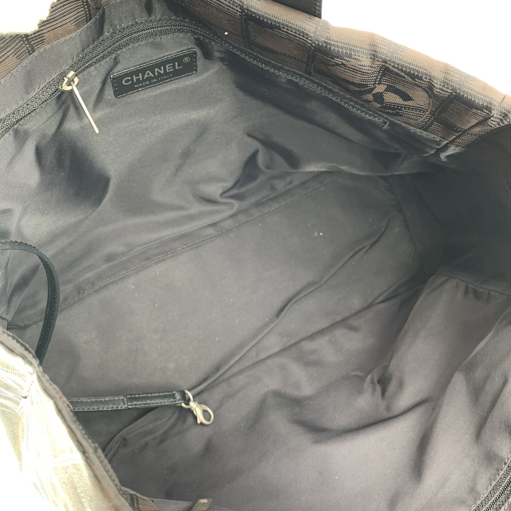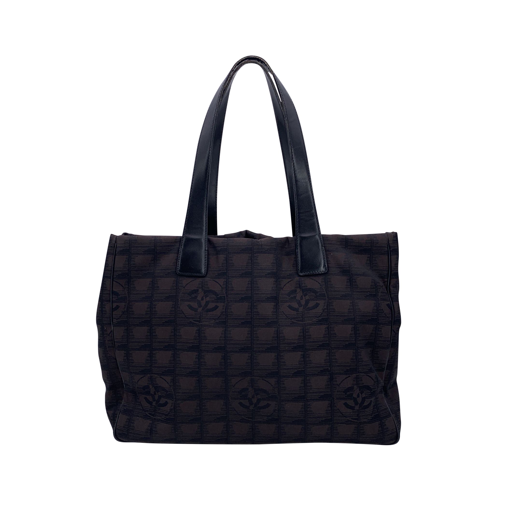 Chanel Travel Line Tote (2003-2004) - Understated Elegance In Motion Timeless, Functional, And Distinctly Chanel - This Black Jacquard Nylon Tote From The House's Travel Line Collection Is a Minimalist Masterpiece From The 2003-2004 Era, Designed With The Modern Voyager In Mind. Crafted From Sleek Black Jacquard Nylon, The Bag Features The Iconic Chanel Motif Subtly Woven Into The Fabric - a Quiet Nod To The Maison's Storied Heritage. The Silhouette Is Elevated By a Black Leather Shoulder Straps/handles, Offering Both Comfort And Sophistication For Life On The Move. Inside, The Nylon Lining Holds Two Side Zip Pockets, Perfect For Keeping Essentials Within Reach While Maintaining The Tote's Clean Lines. True To Chanel's Legacy Of Craftsmanship, The Interior Bears The 'Chanel - Made In Italy' Tag And a Discreet Authenticity Hologram, Grounding This Vintage Gem In Authenticity And History. Effortlessly Chic And Endlessly Versatile, This Chanel Travel Line Tote Is a Sophisticated Companion - Ideal For Everyday Elegance, City Strolls, Or Quiet Getaways. A Rare Find For Collectors And Lovers Of Early-2000s Chanel.