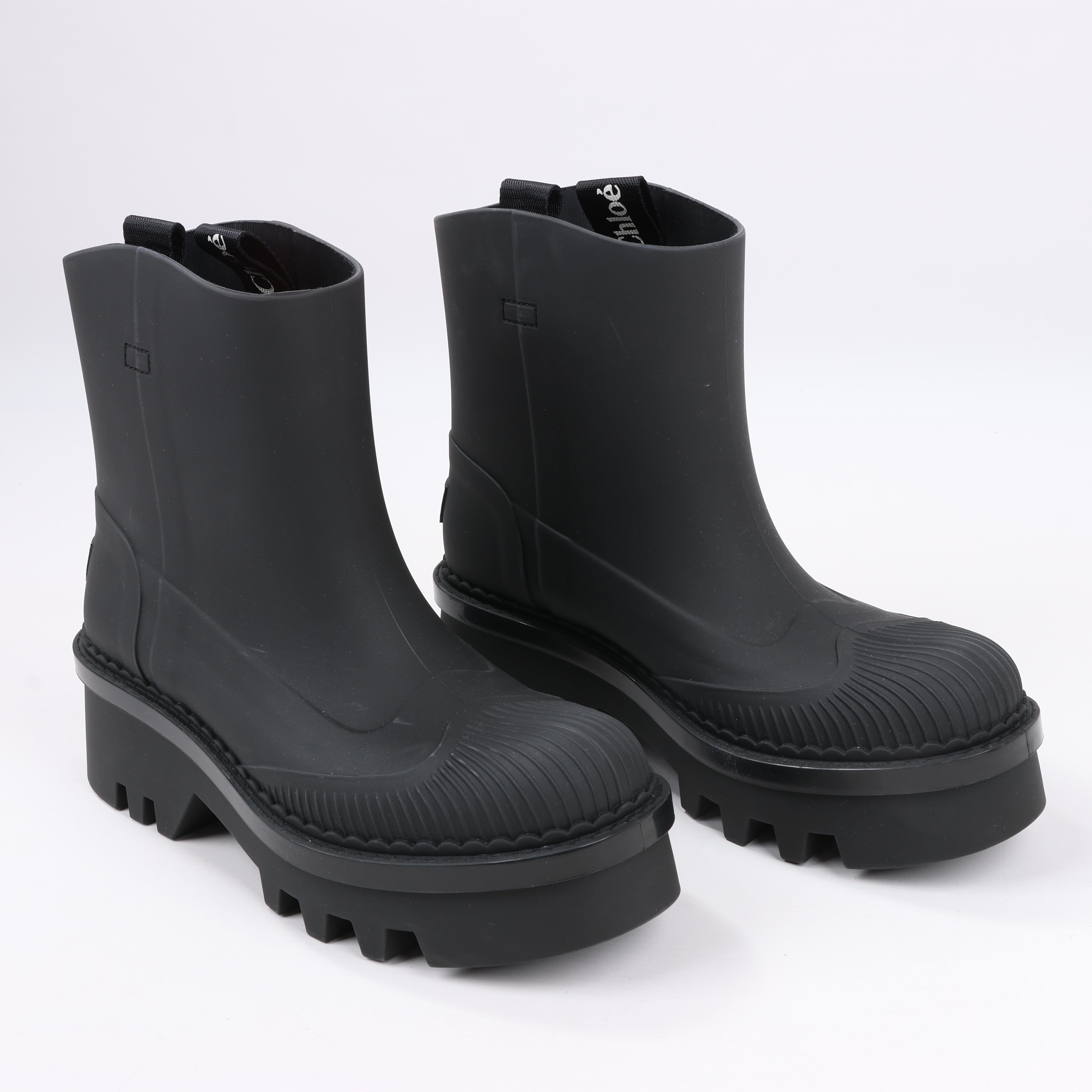 Chloe Chloe Rubber Rain Ankle Boots in Black 032324, Size 39 EU