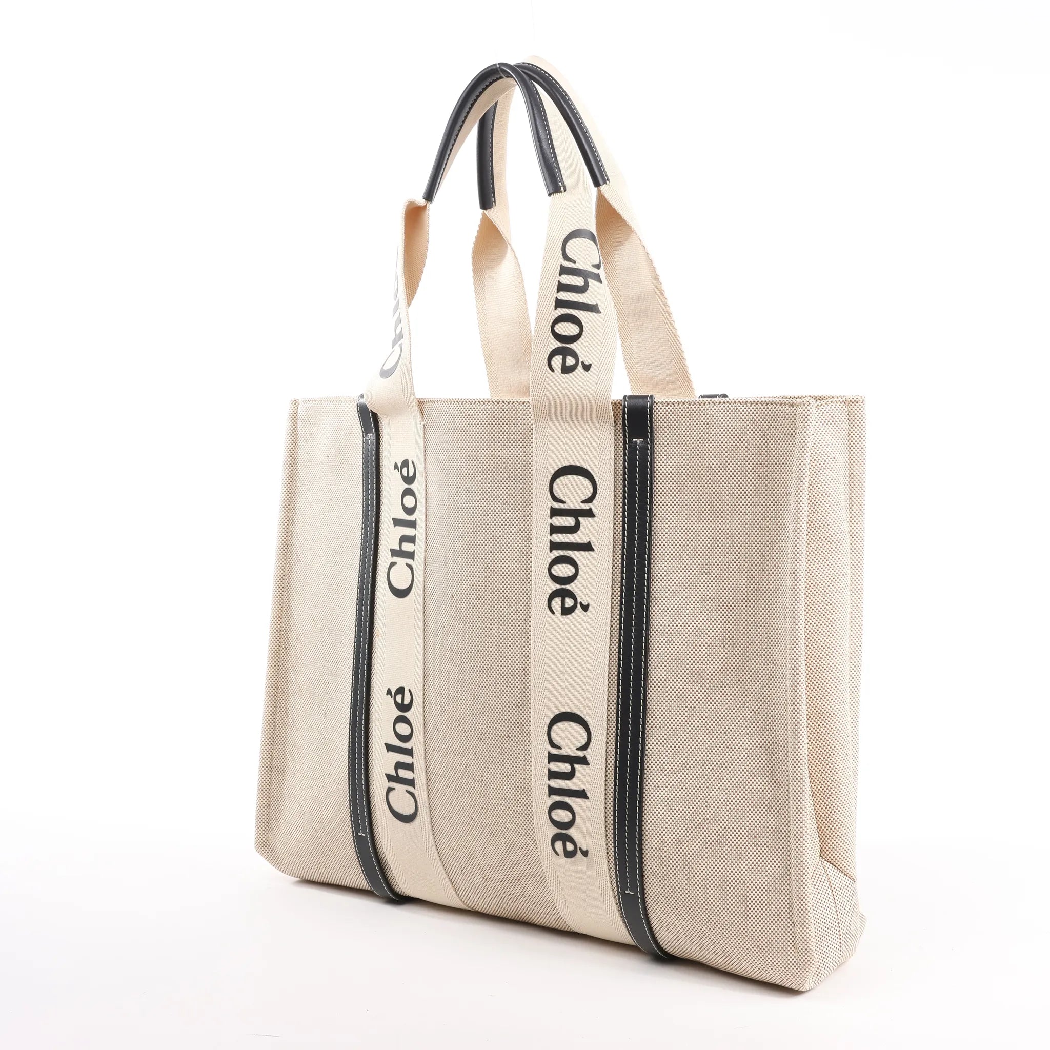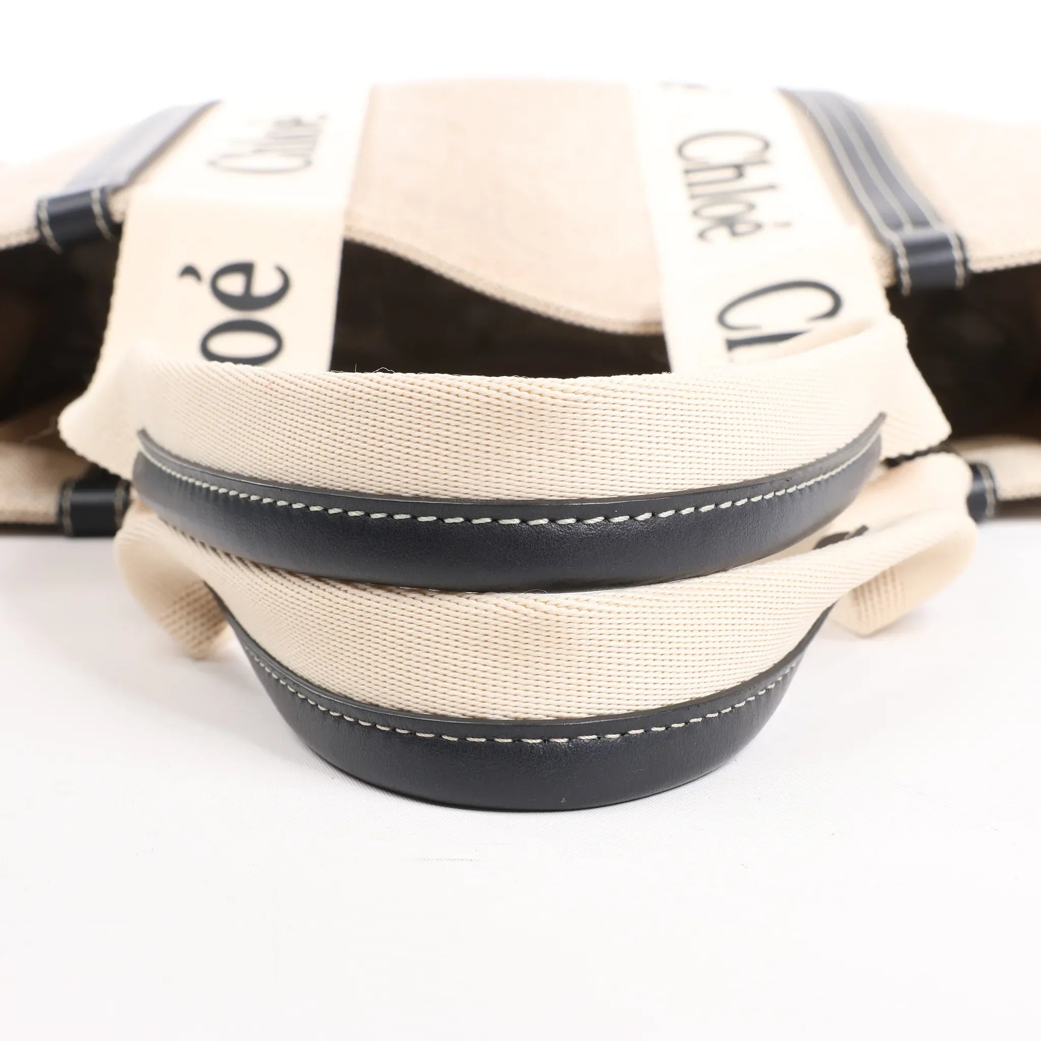 Chloe CHLOE Woody Large Canvas & Leather Tote Shoulder bag in Black x Beige
