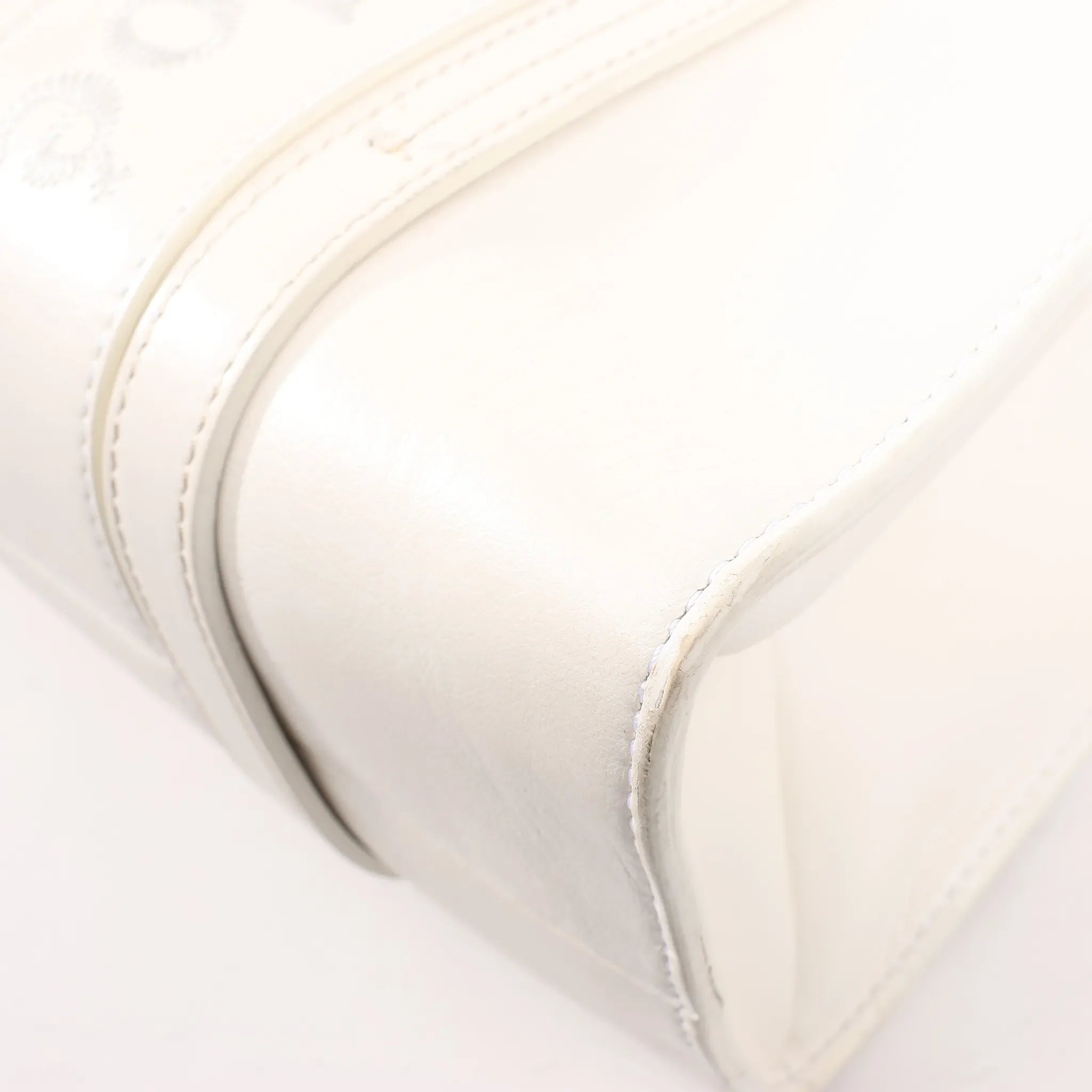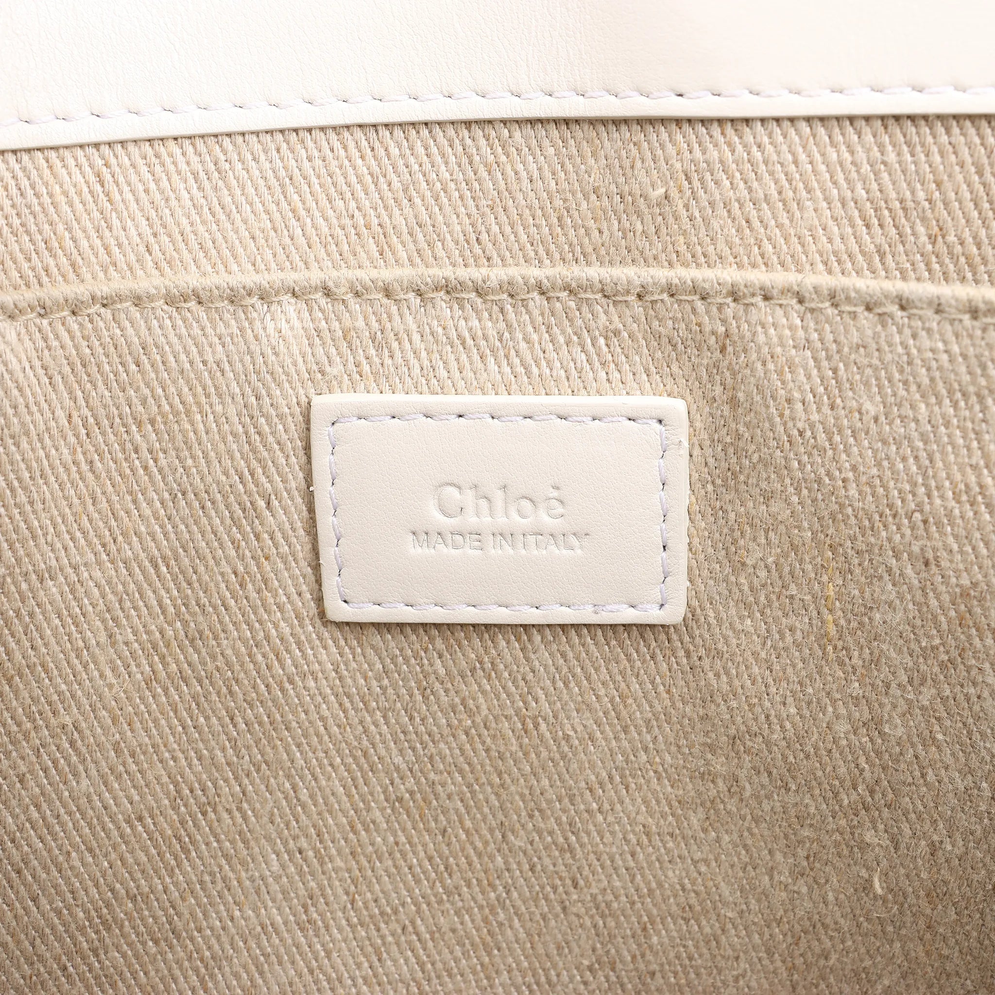 Brand: ChloéModel: WoodySize: Medium Width: 33.5 cm Height: 27 cmExterior Condition: ExcellentInterior Condition: ExcellentCondition Details: The exterior canvas is in excellent condition, but has small rubbings at the edges. The handles are firm and in great condition. The interior is in great condition.Colour: WhiteInterior Colour: BeigeHardware Colour: -Material: LeatherComes With: -