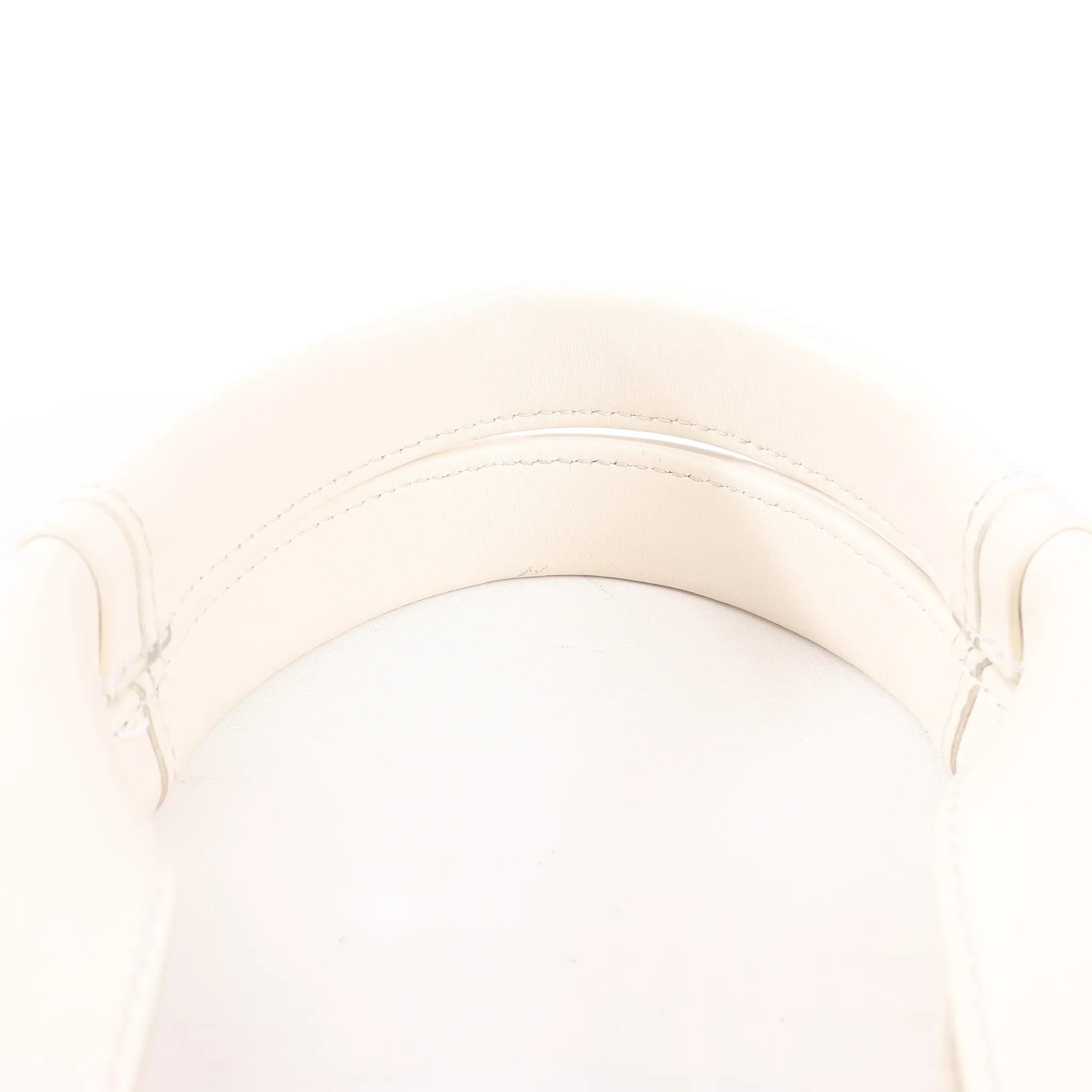 The Chloé Woody Medium handbag in white leather blends minimalist elegance with signature logo webbing straps—perfect for polished, everyday sophistication.