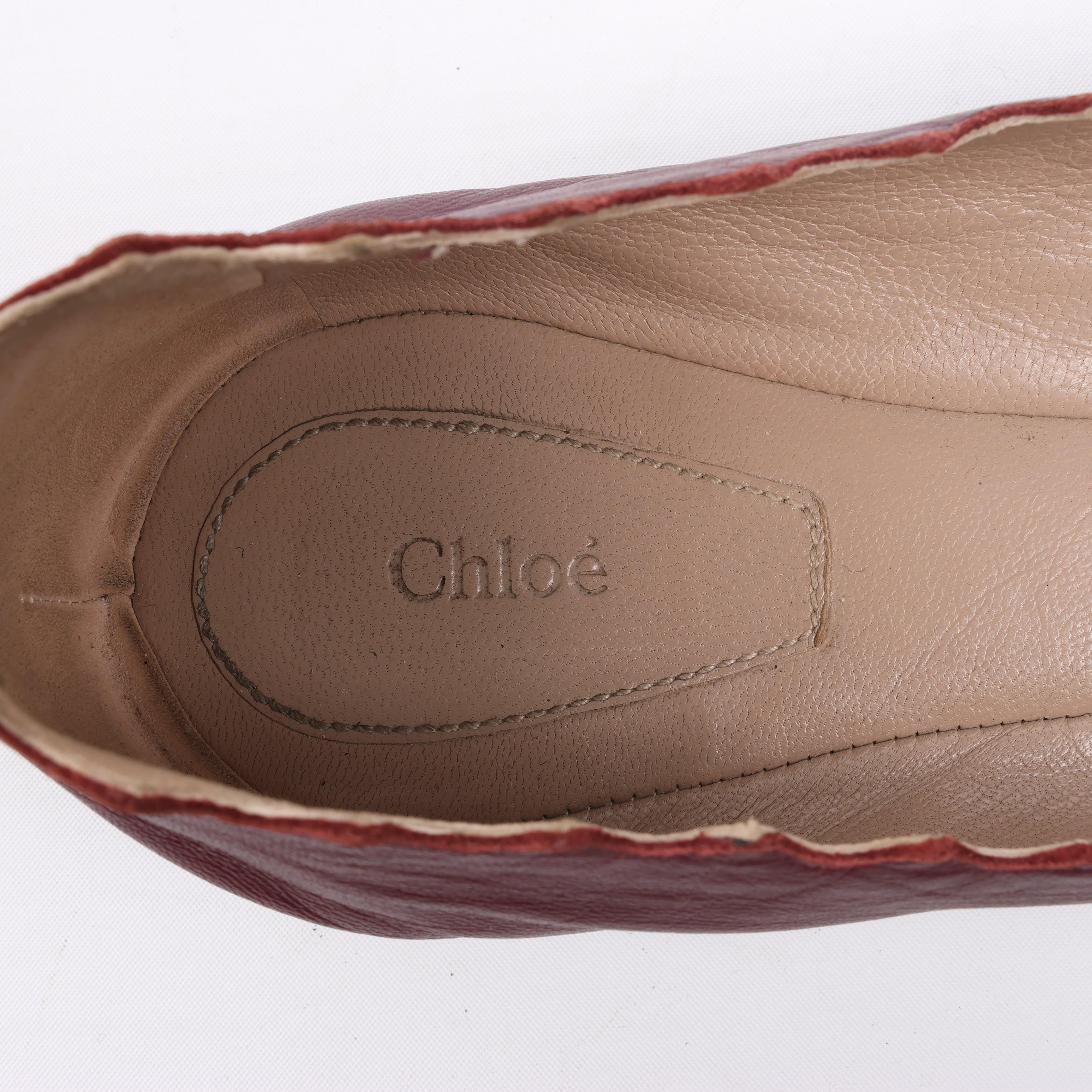 Brand: ChloeSize: 38 EUCondition: ExcellentCondition Details: Pre-loved ballerinas in good condition with light signs of usageMain Colour: BurgundyColours: BeigeMain material: LeatherMaterials: -Product Code: -Manufactured In: ItalyComes With: -