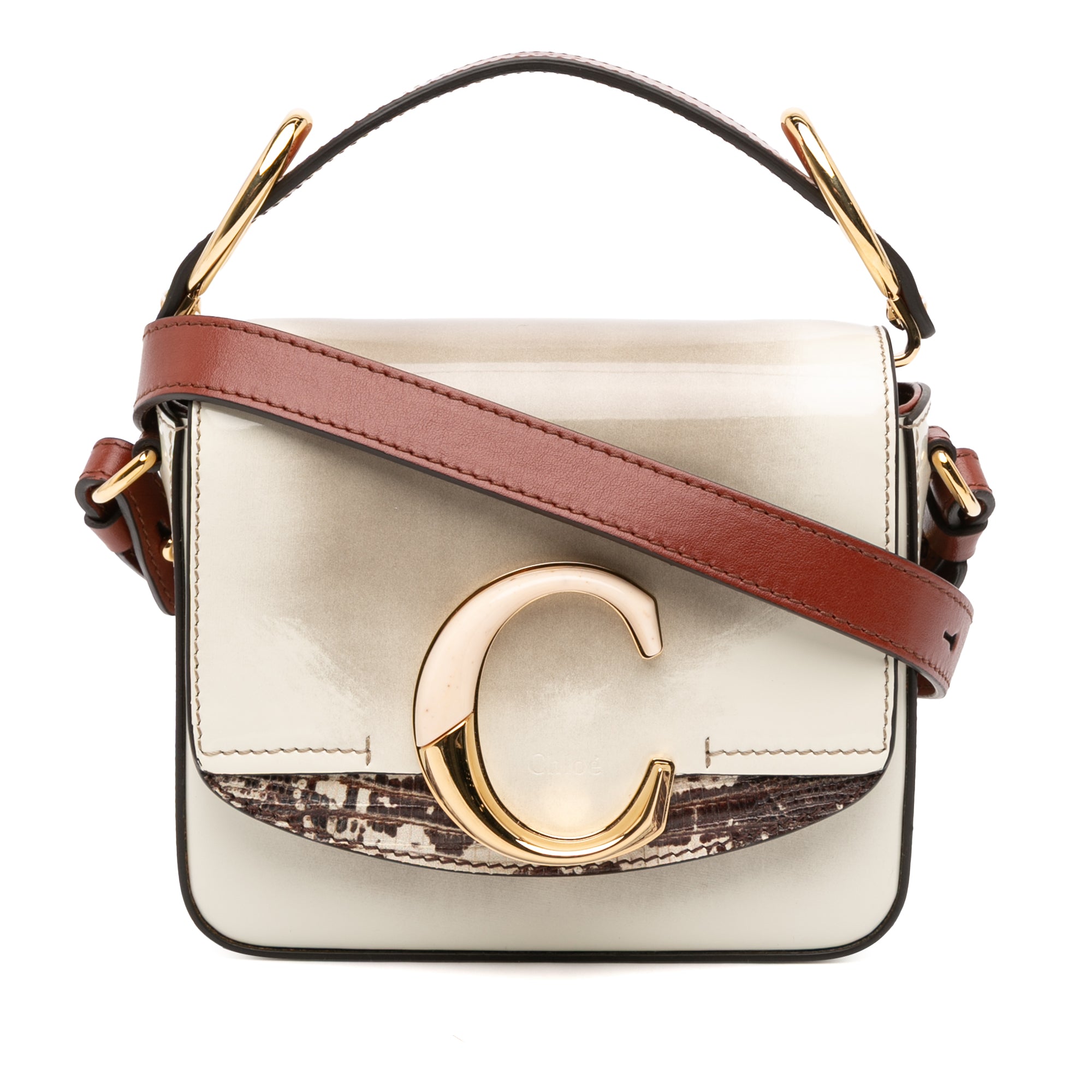 Chloé Mini Shaded Glossy Calfskin Lizard Embossed Trim C Satchel