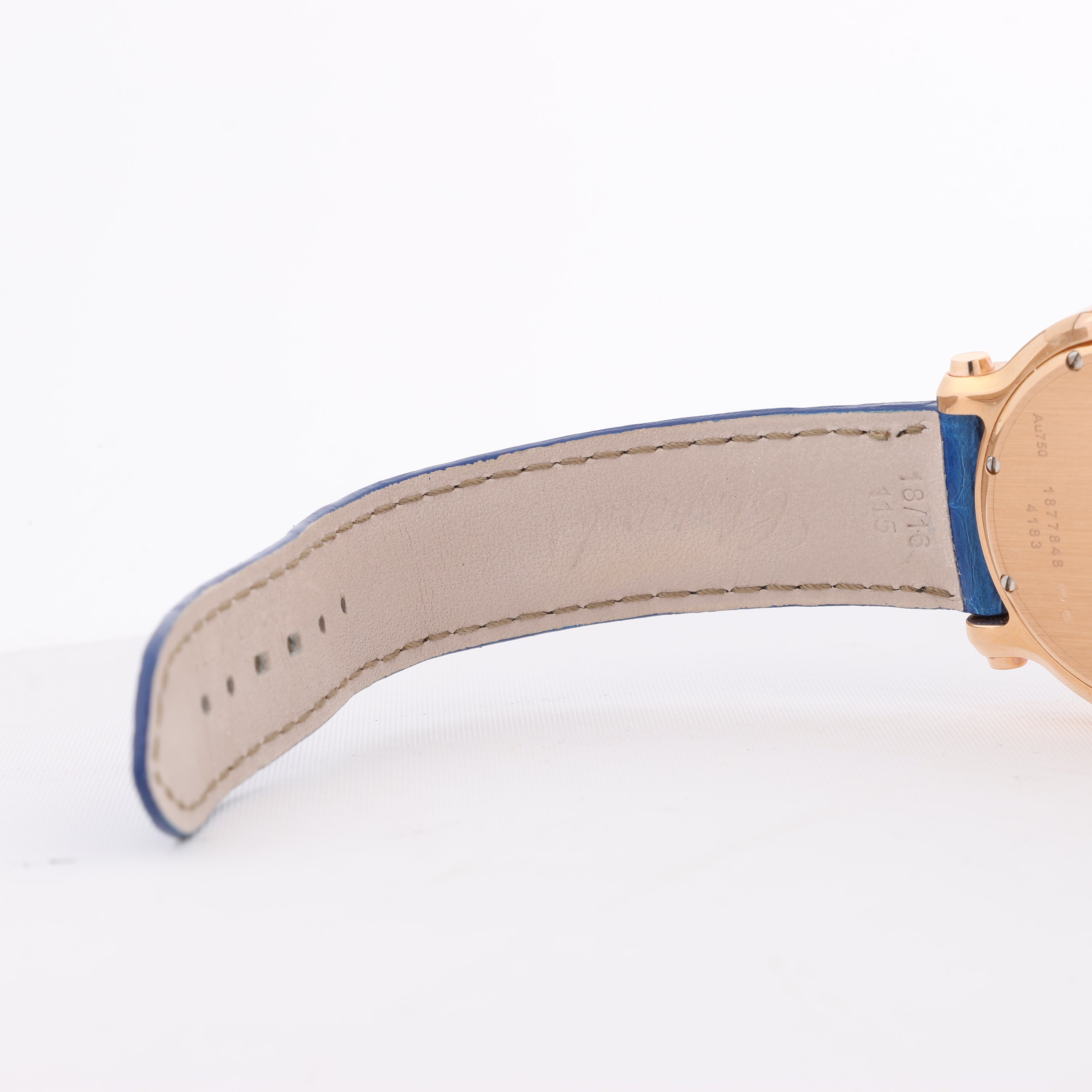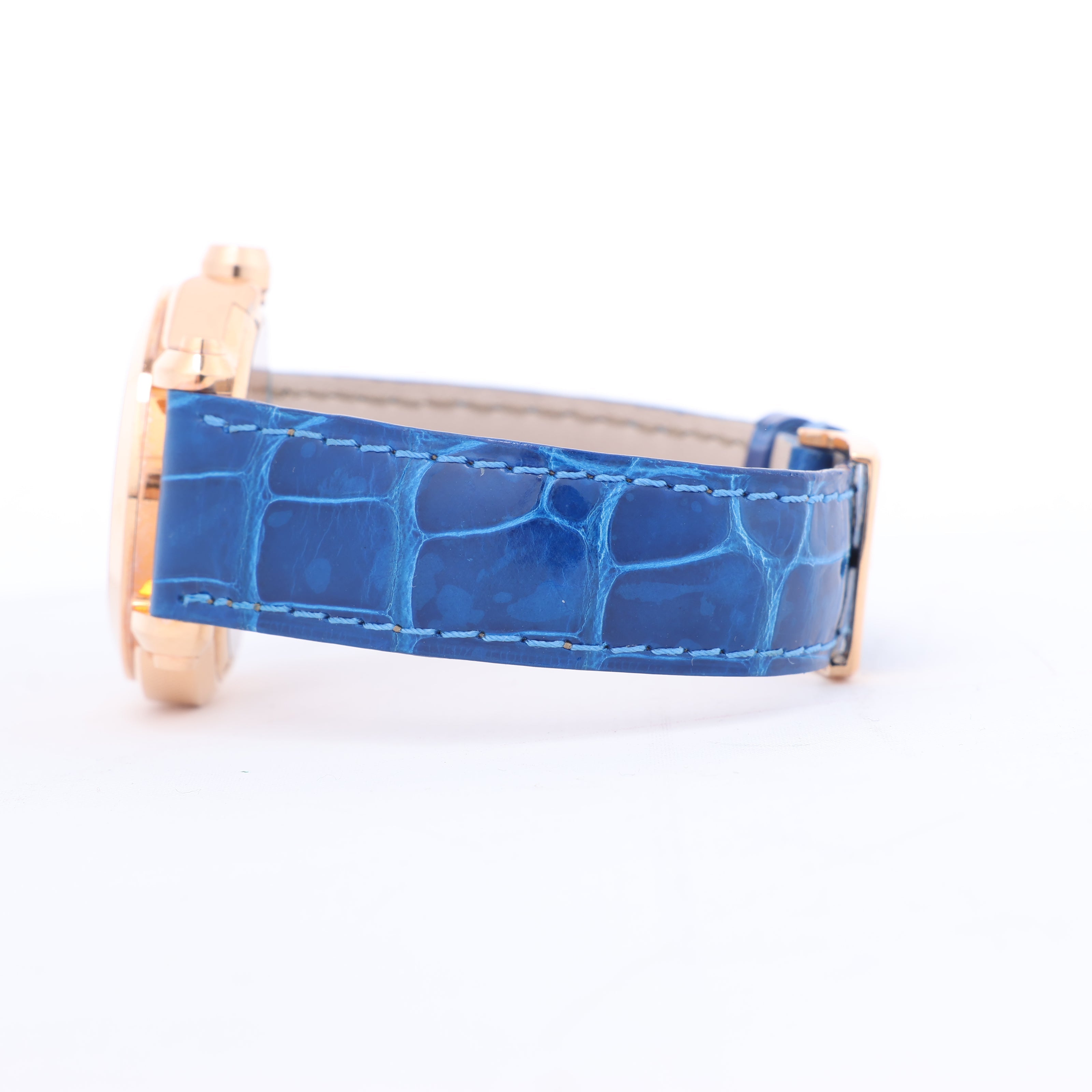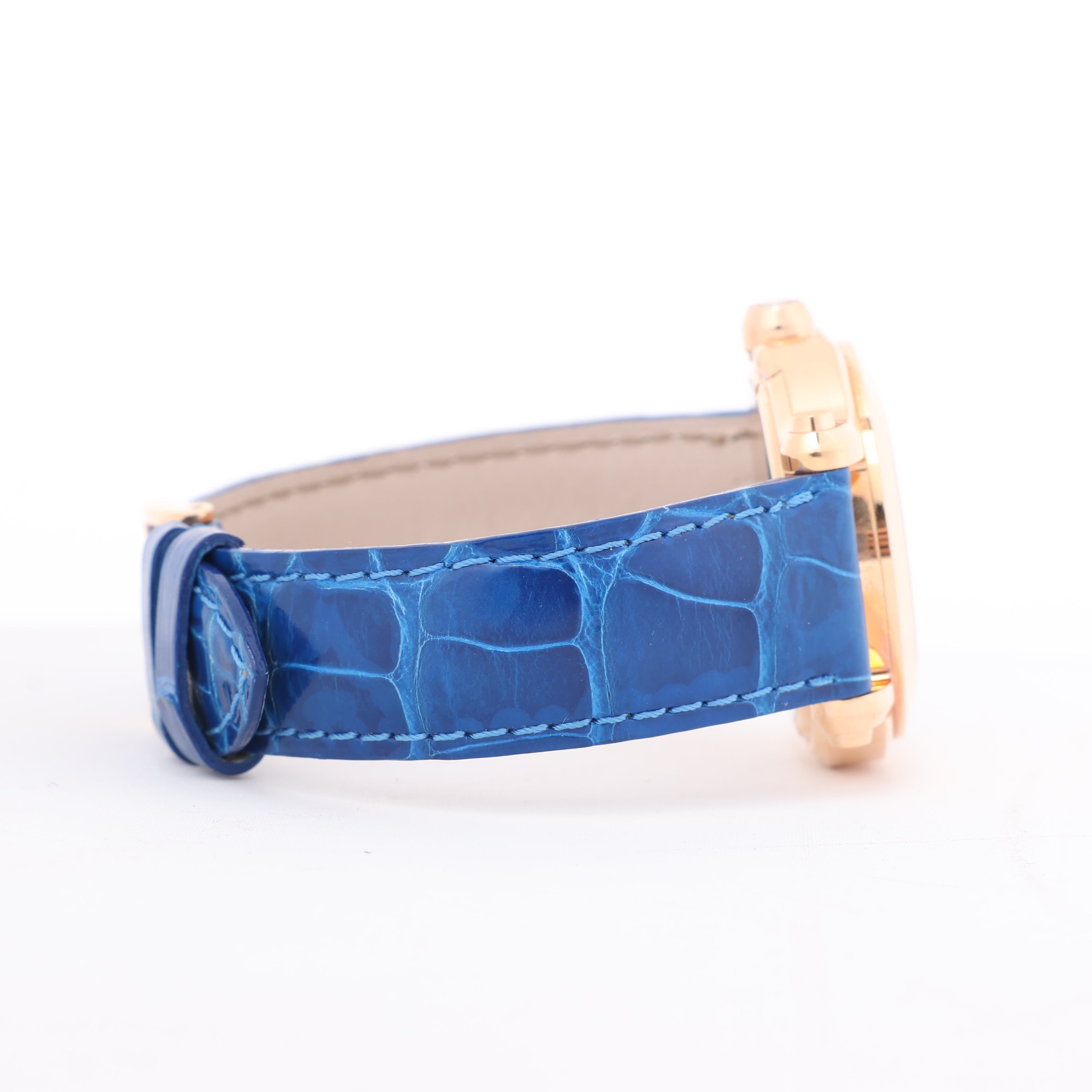 Brand: Chopard Model: Happy SportReference: 277471-5001Condition: ExcellentCondition Details: Excellent overall condition with almost no visible signs of use. Barely noticeable hairline marks may be present, but they are not visible to the naked eye. Please see photos for details. Dial Colour: WhiteCase Material: Rose GoldStarp Colour: BlueStrap material: LeatherMovement: QuartzFace Diameter: 35 mm Approx. max circumference: 19.5 cmComes With: Box